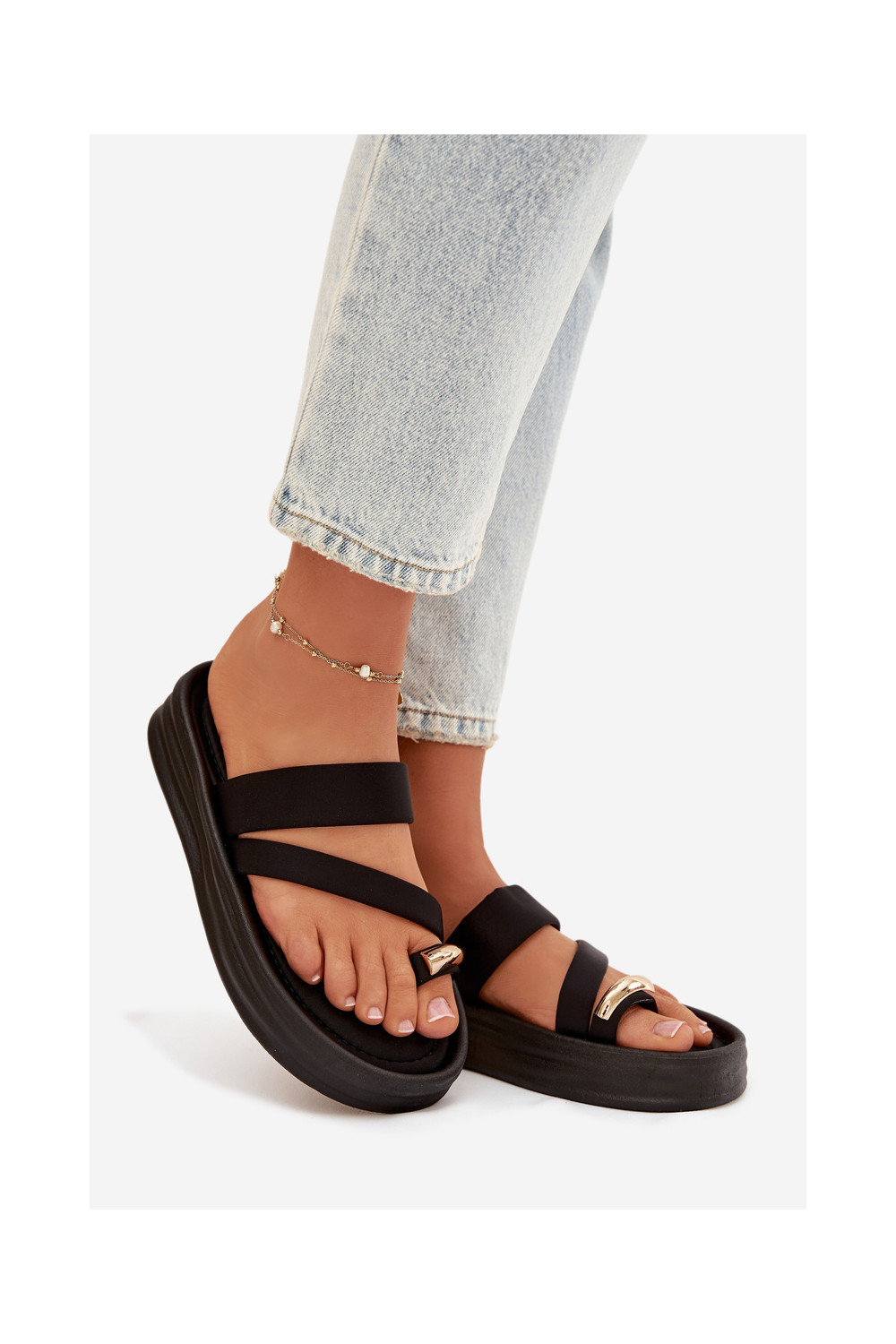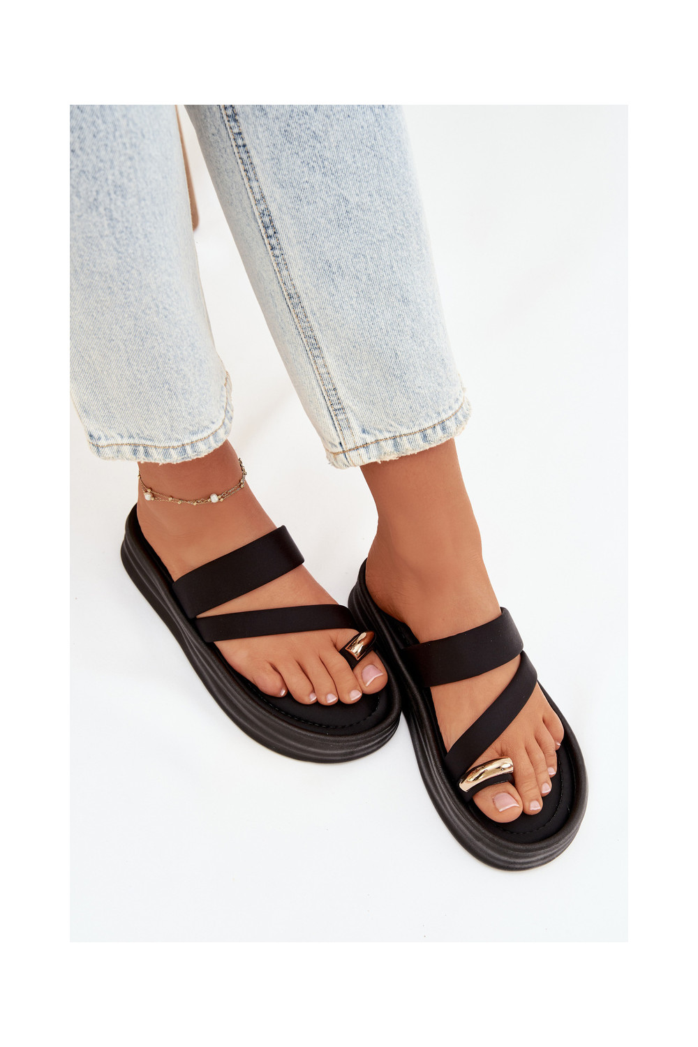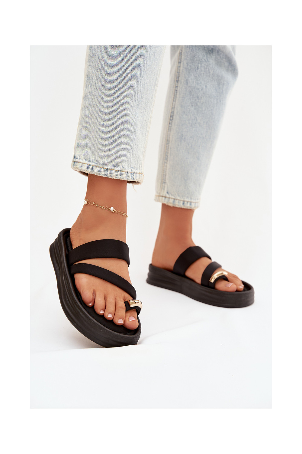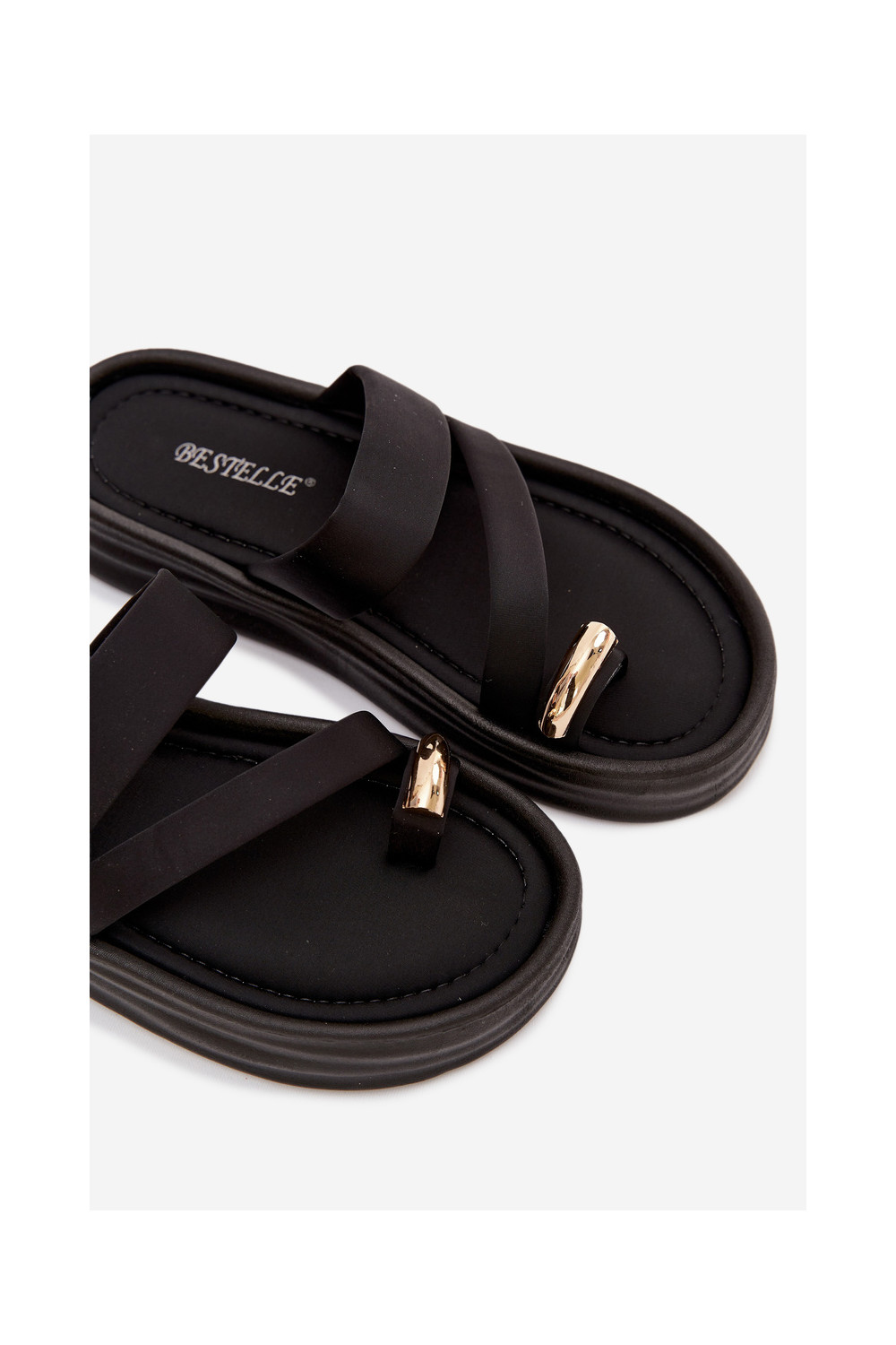 Moteriškos šlepetės su juostelėmis I aukso spalvosm Detalem Juodos spalvos Farielle