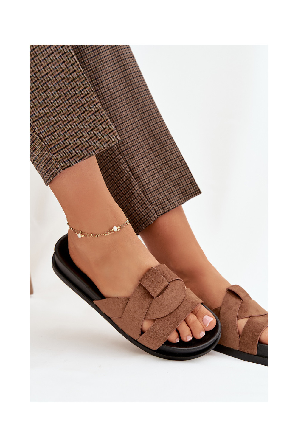 Moteriškos šlepetės iš eko zomšosowe su juostelėmis rudos spalvos Marivessa
