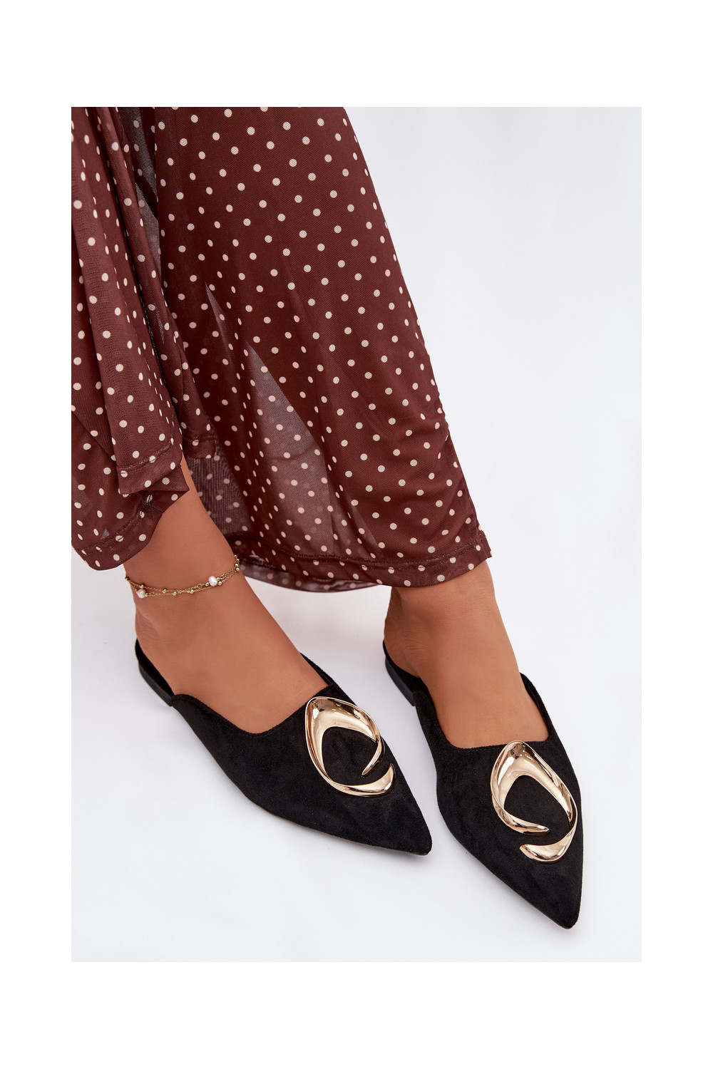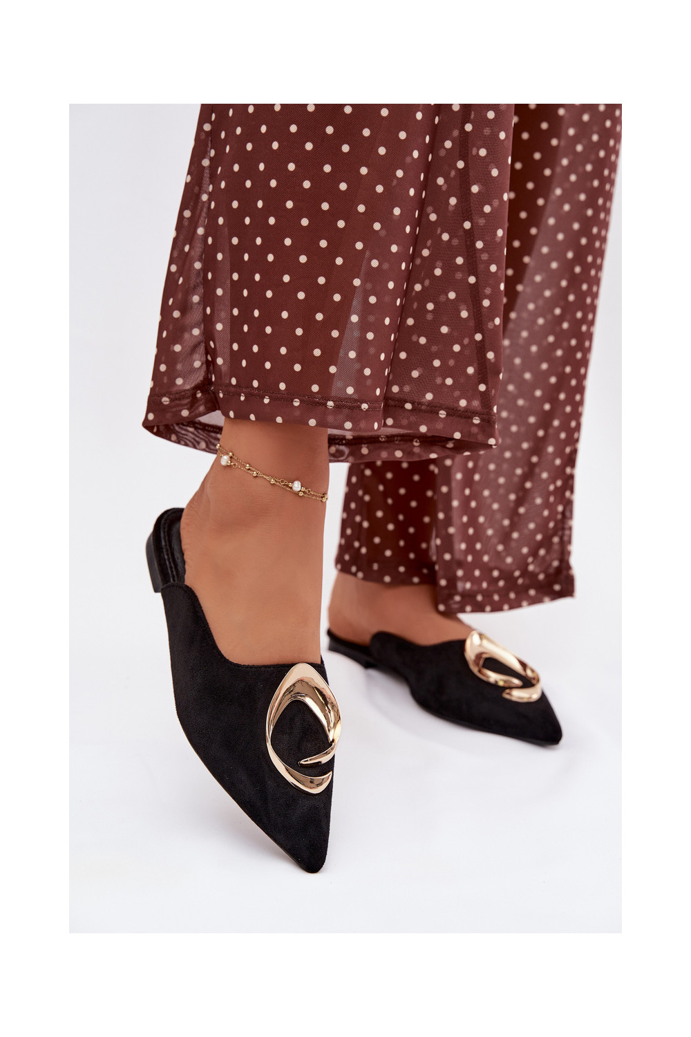 Moteriškos šlepetės Mule aukso spalvosm Detalem Juodos spalvos Galvella