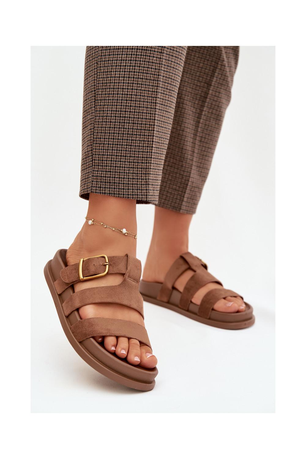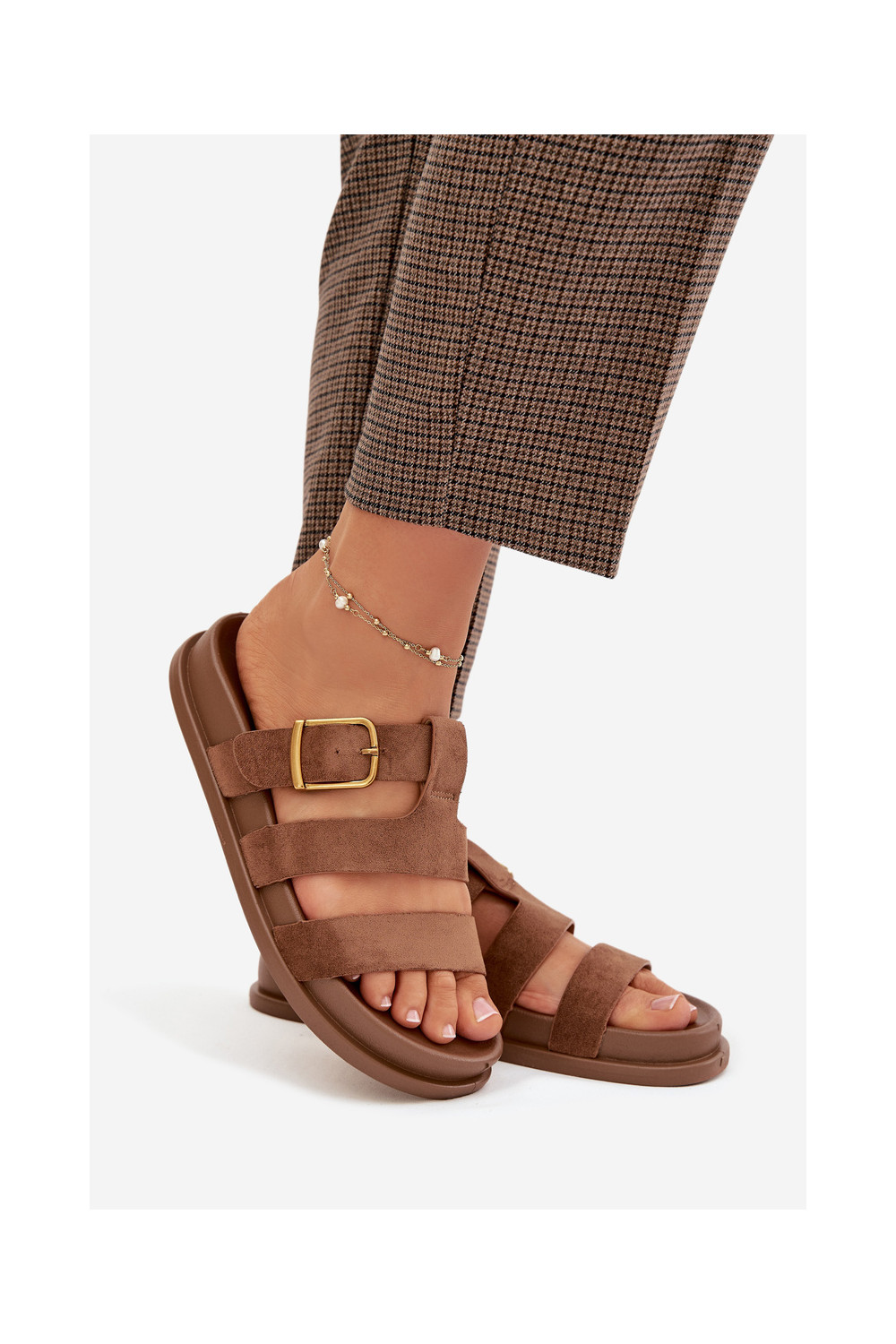 Moteriškos šlepetės su juostelėmis I Złotą su sagtimis rudos spalvos Ulirissa
