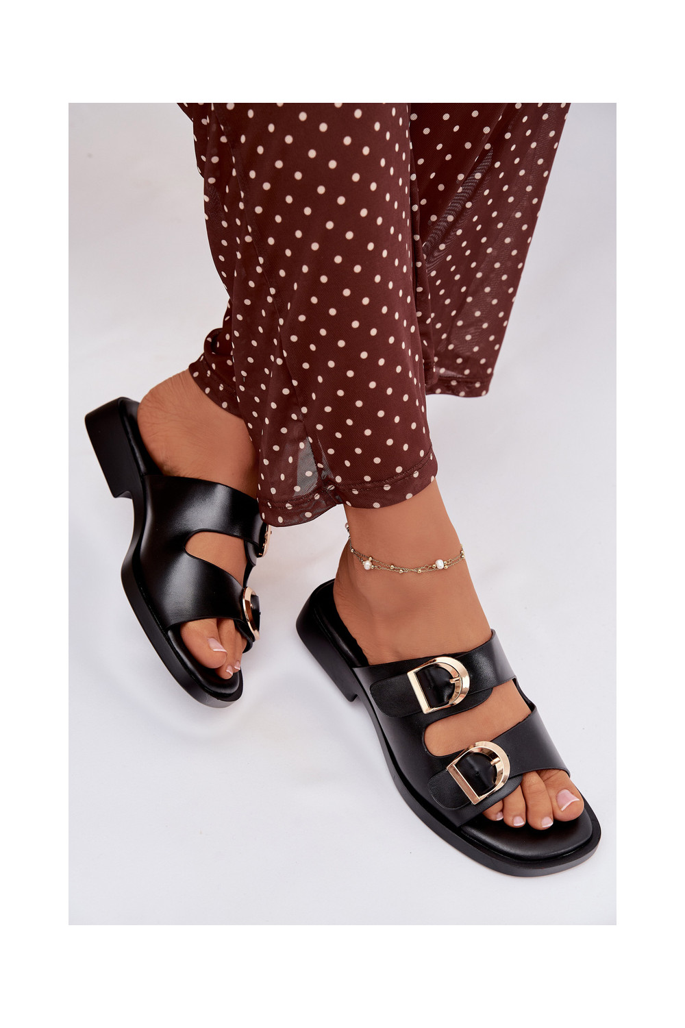 Moteriškos šlepetės Ze aukso spalvosmi su sagtimismi Juodos spalvos Danelle