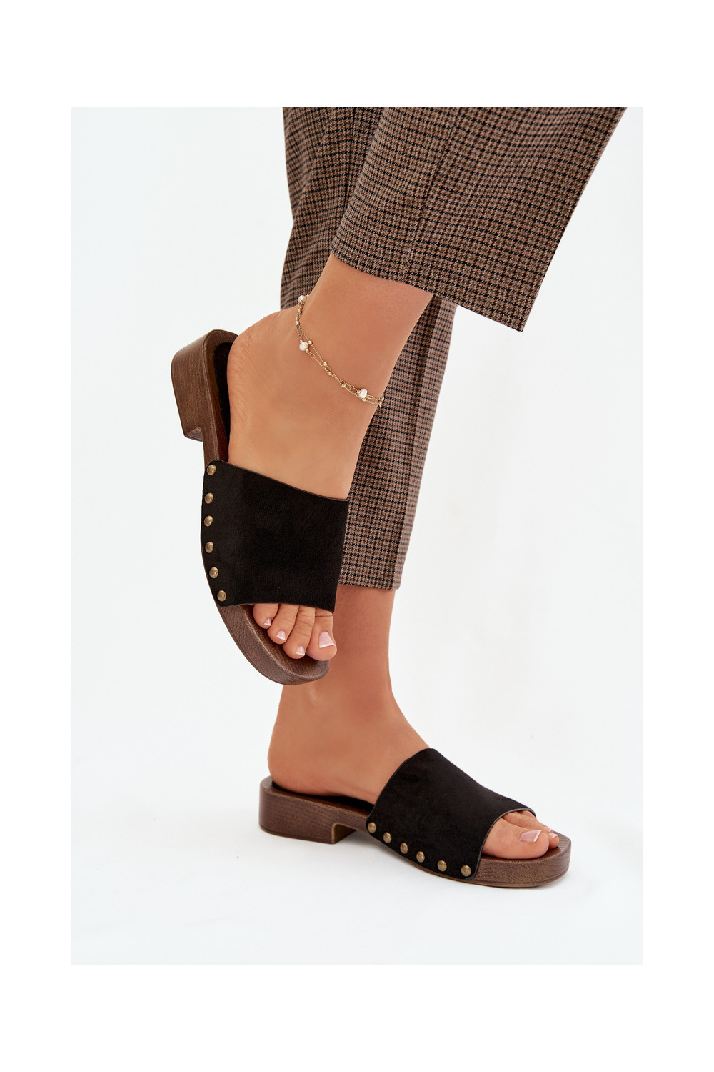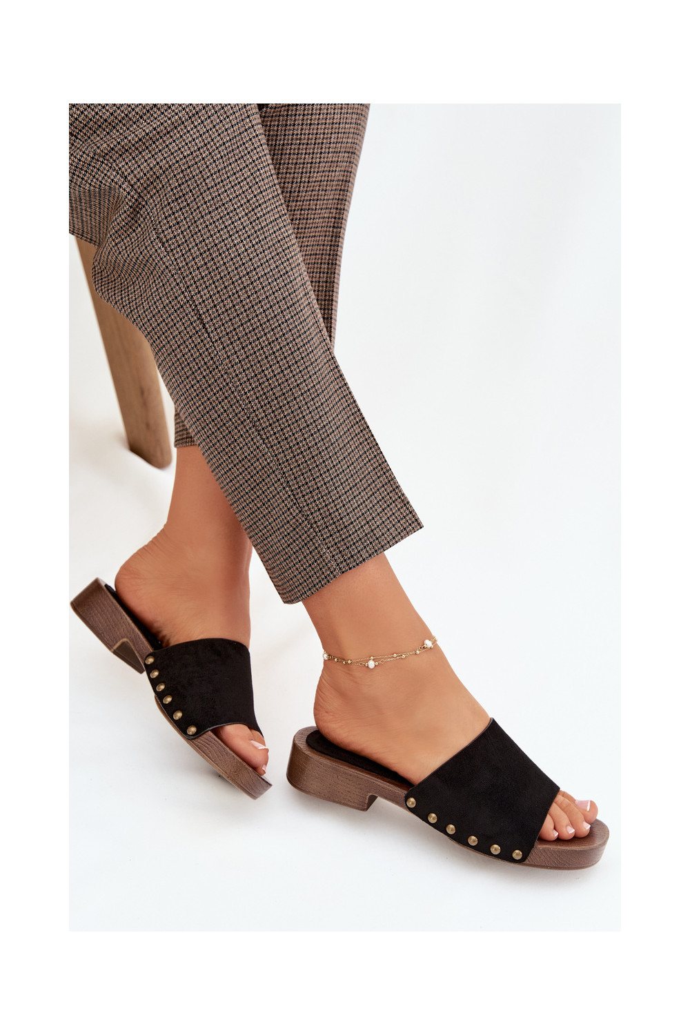 Moteriškos šlepetės su plačiais kulniukais Ze aukso spalvosmi Juodos spalvos Girella