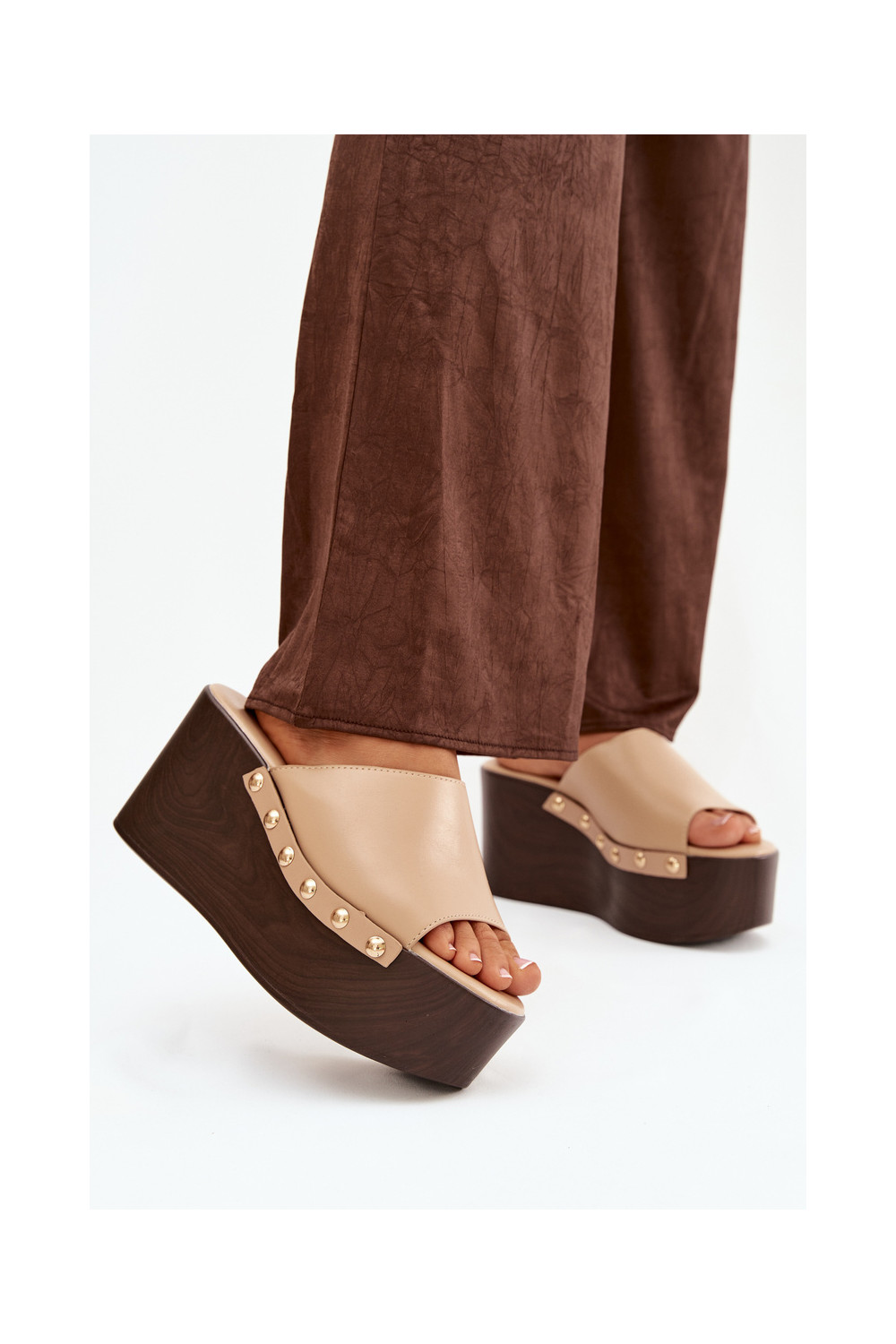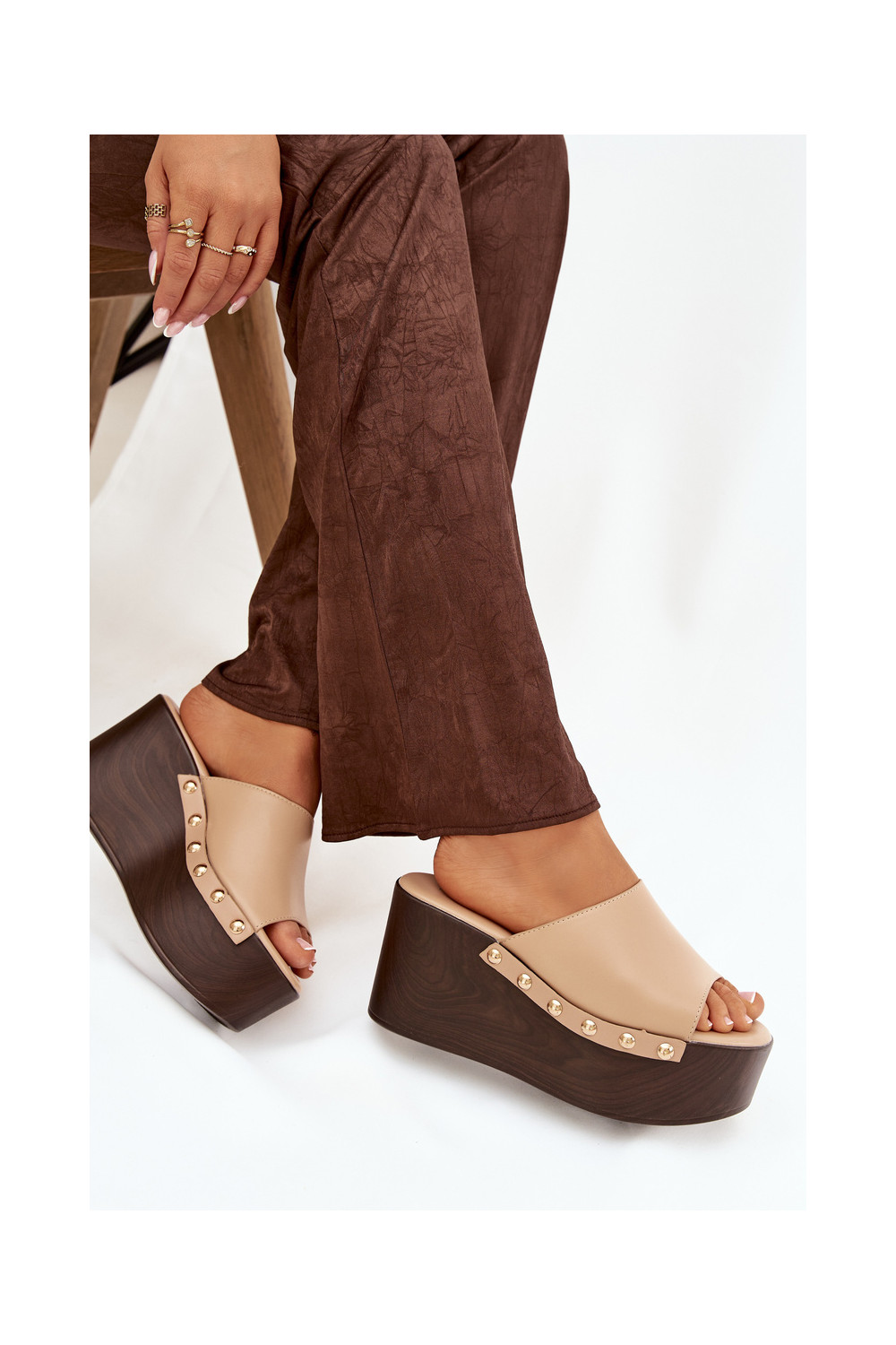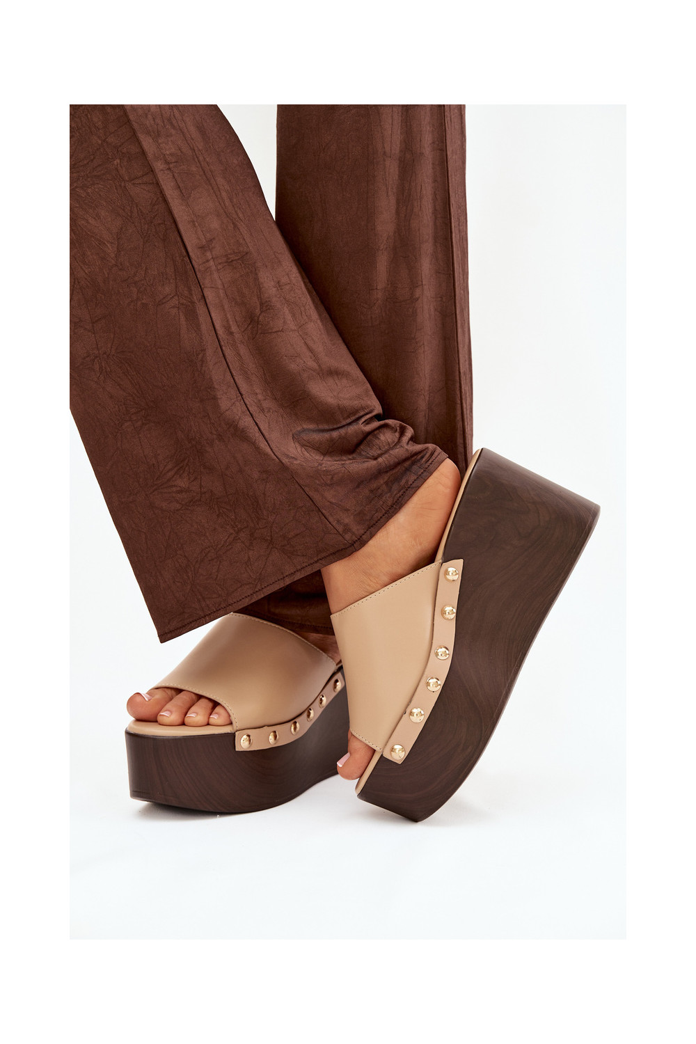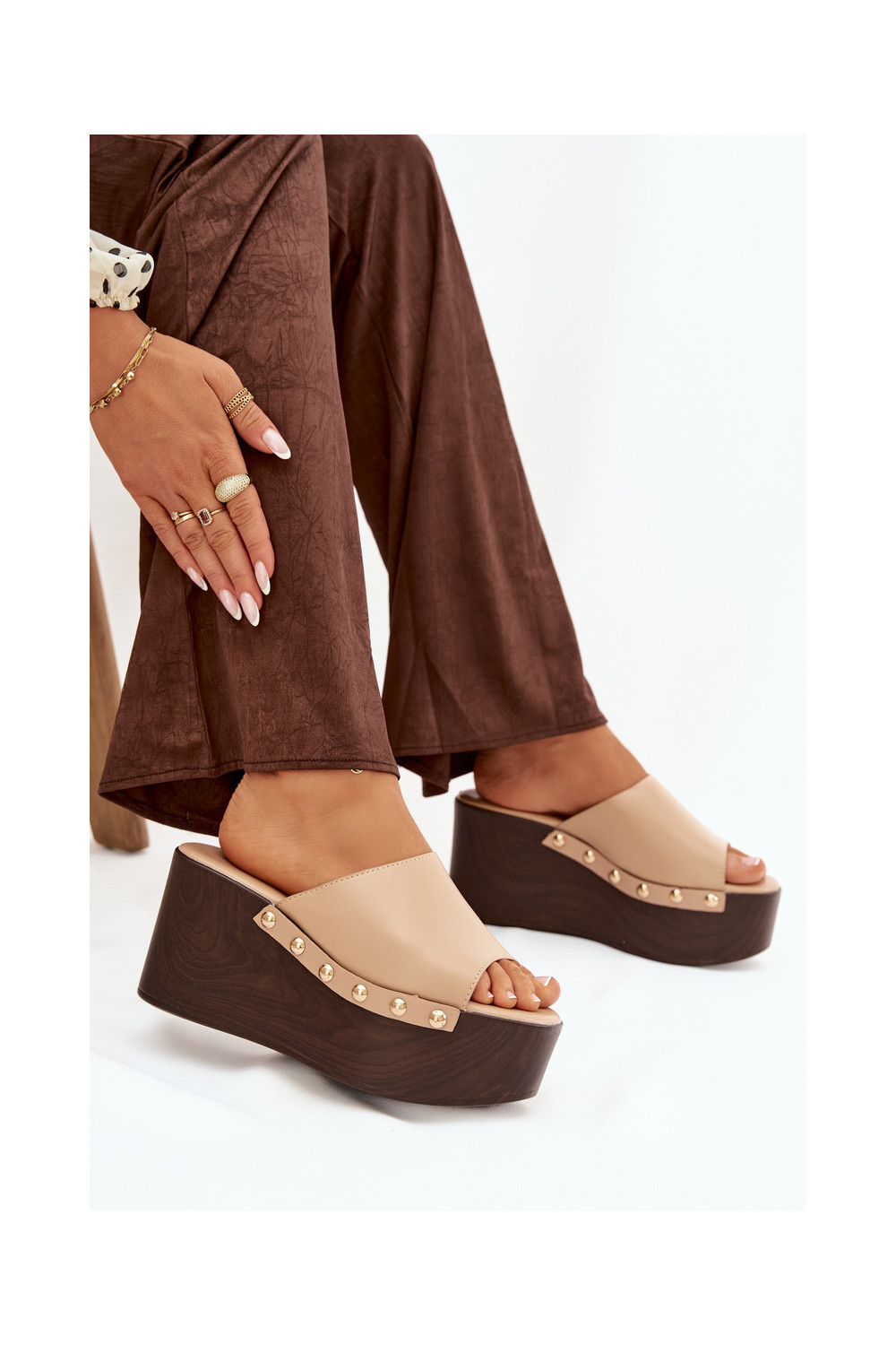Moteriškos šlepetės Ant platformos su kniedėmis smėlio spalvos Tai turireline
