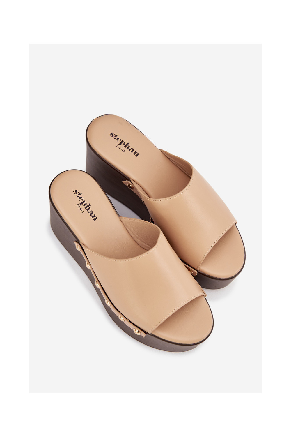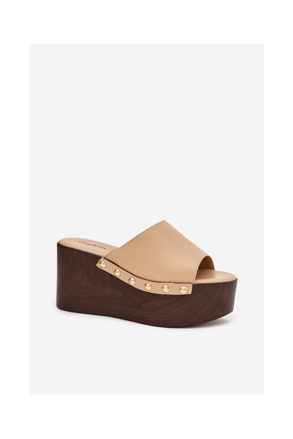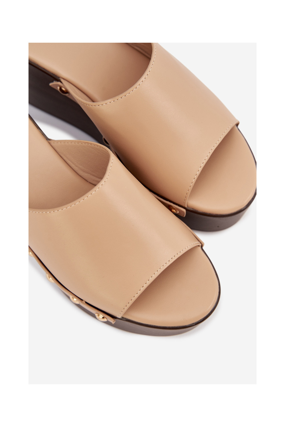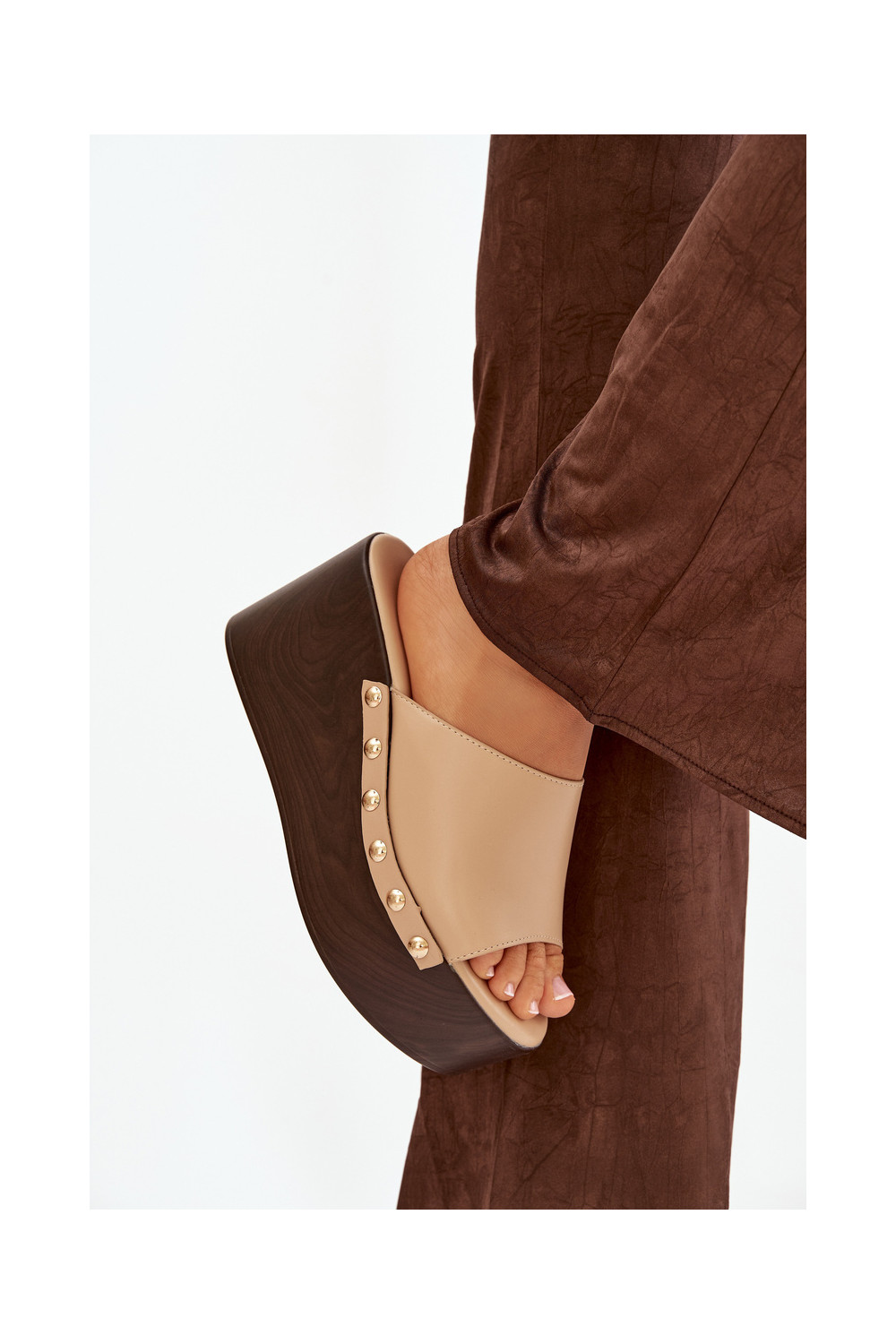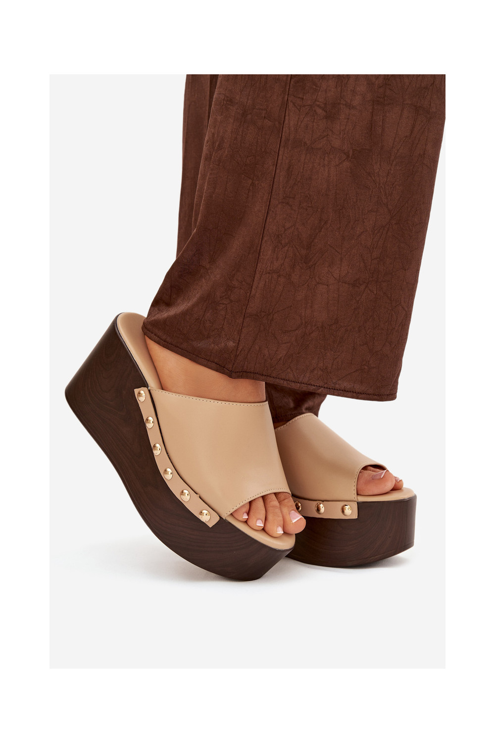 Moteriškos šlepetės Ant platformos su kniedėmis smėlio spalvos Tai turireline
