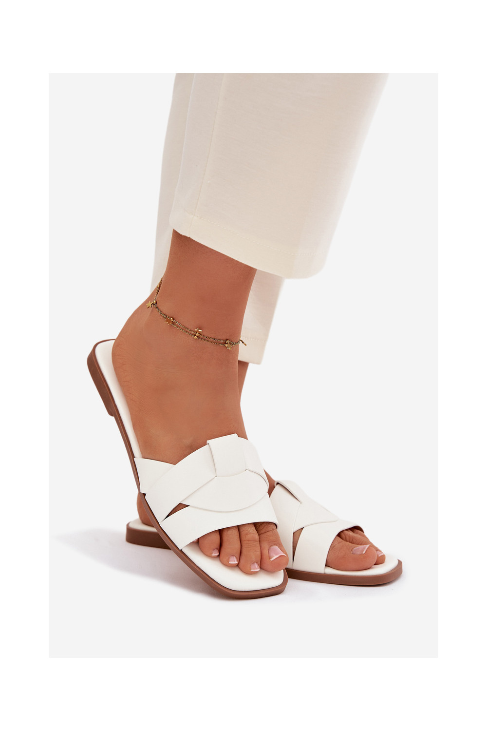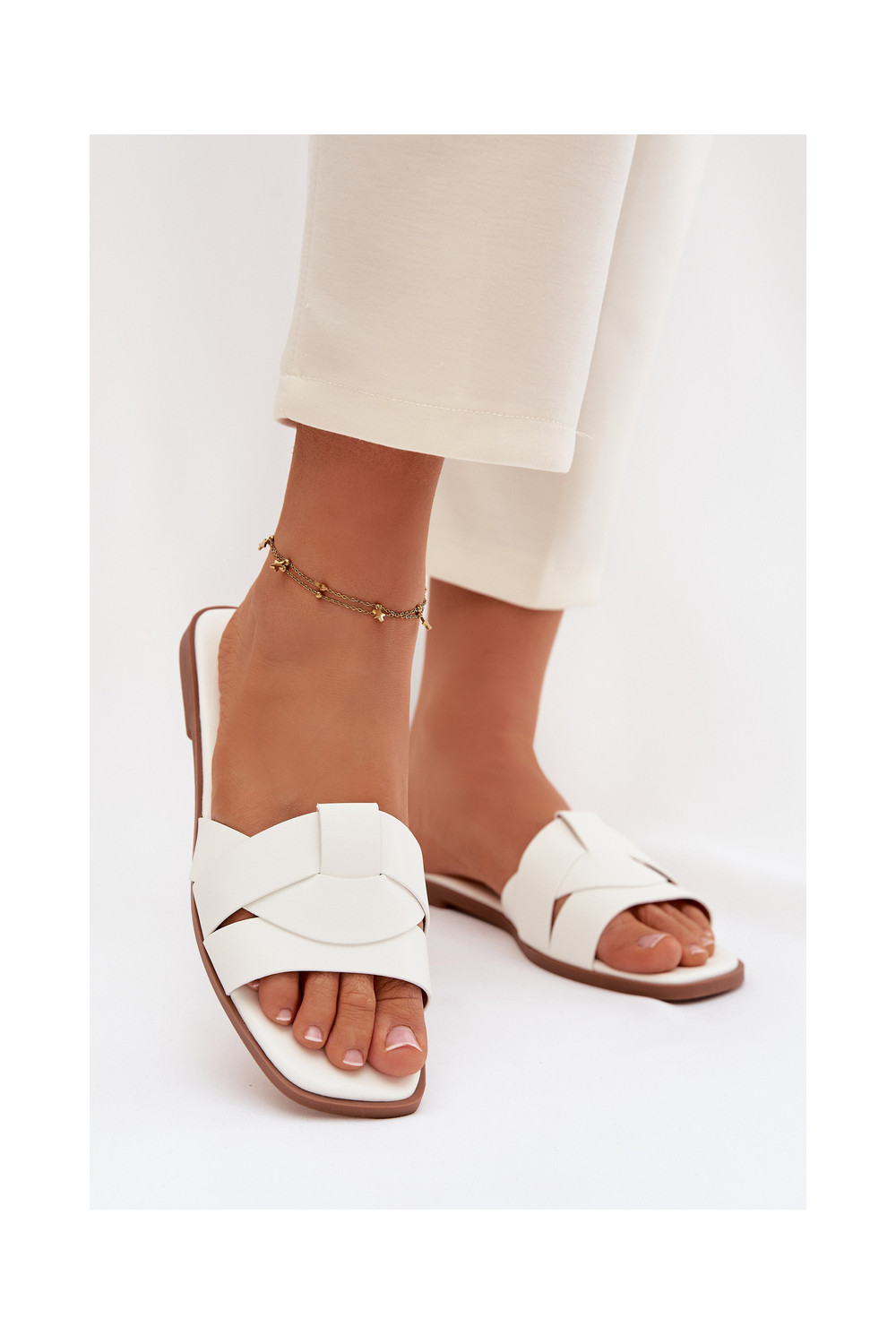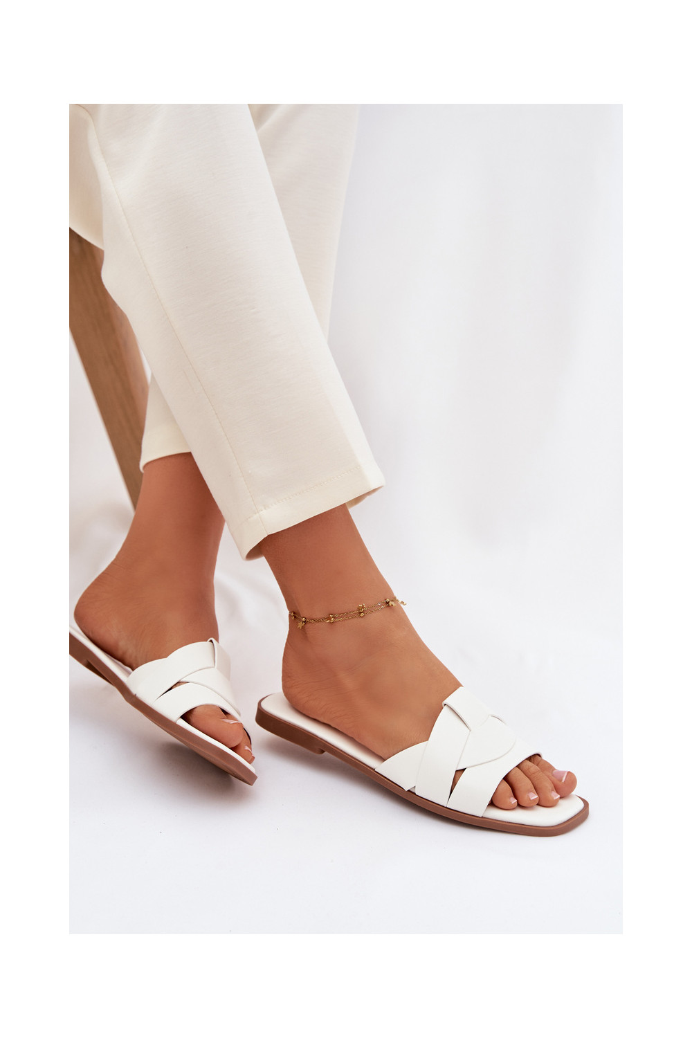 Šlepetės Moteriškas butas su juostelėmis baltos spalvos Tai turirissae