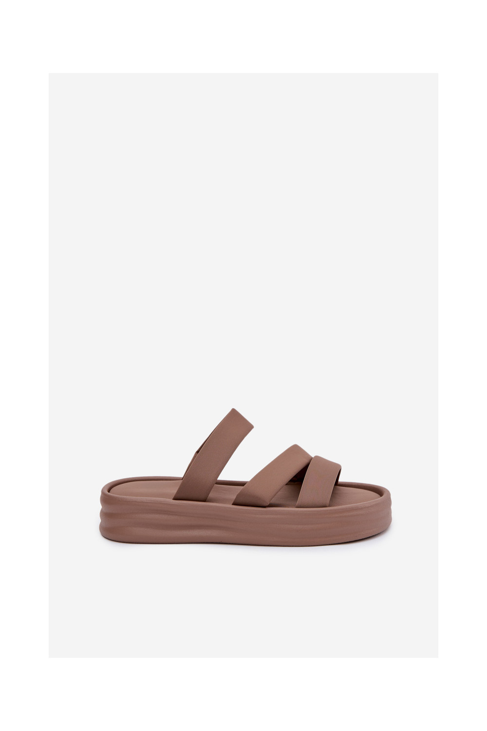 Moteriškos šlepetės su platforma su juostelėmis chaki spalvos Liorine