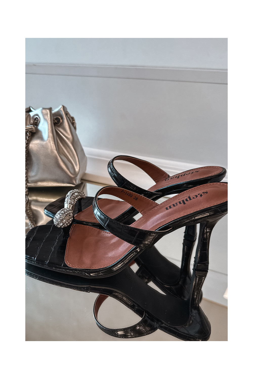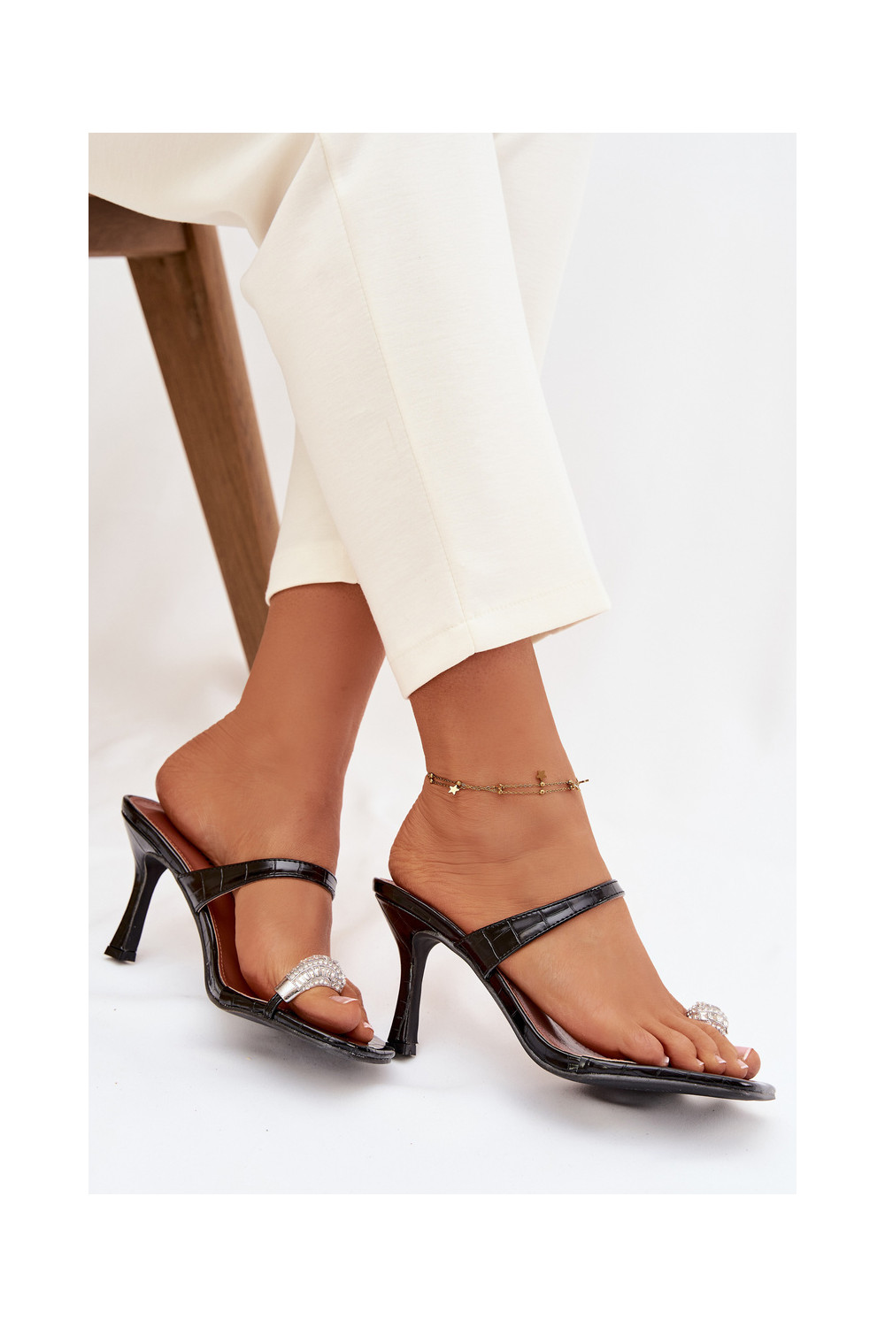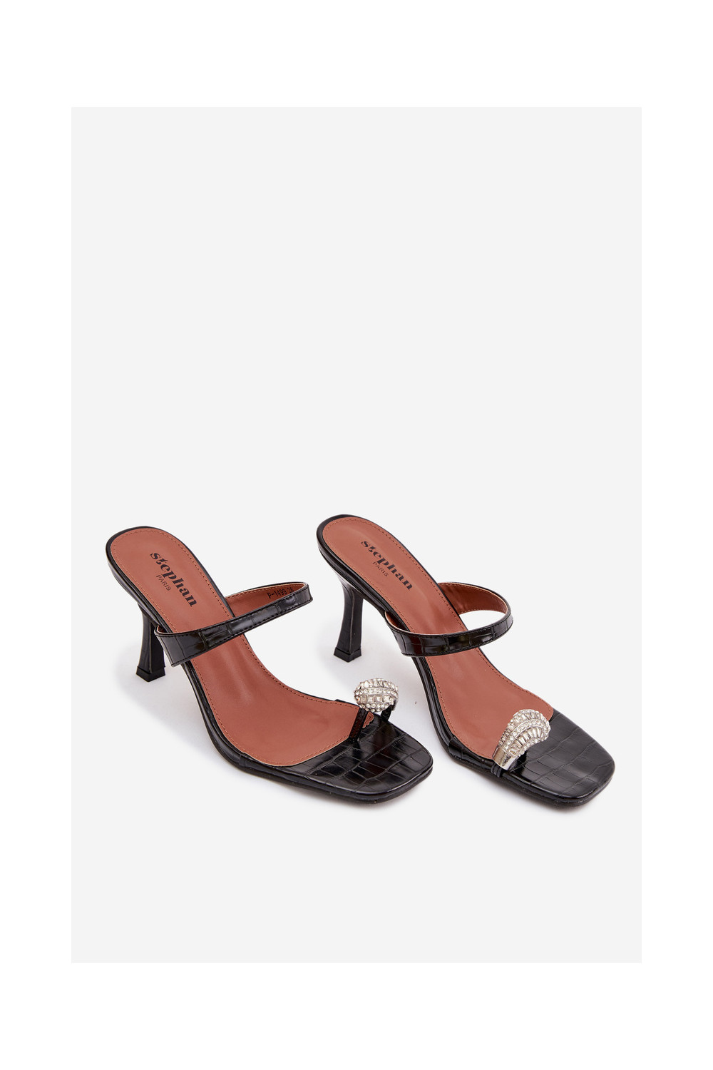 Moteriškos šlepetės su plonais kulniukais Detalem Juodos spalvos Lorissa