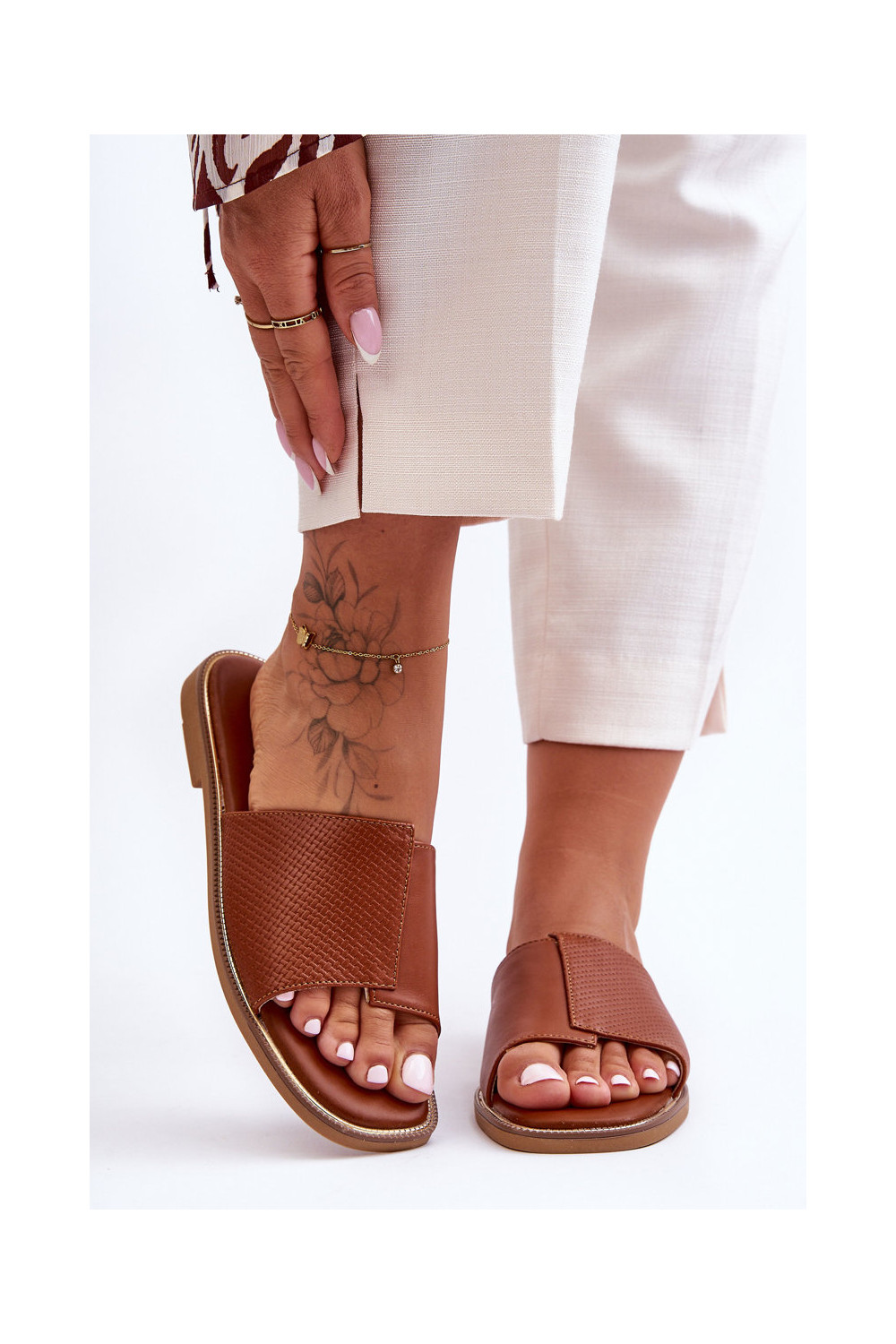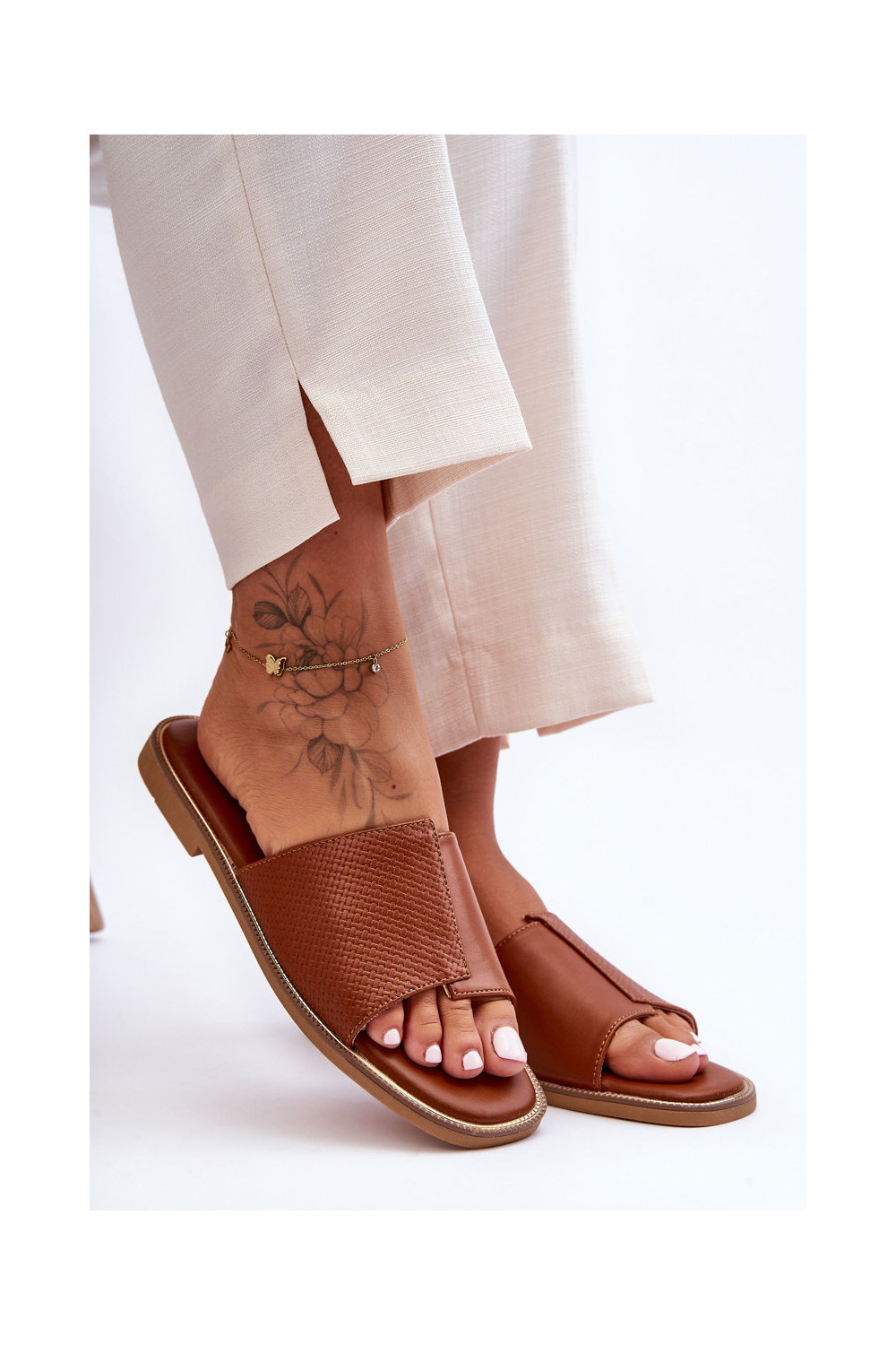 Moteriškos šlepetės Oda rudos spalvos Harmony