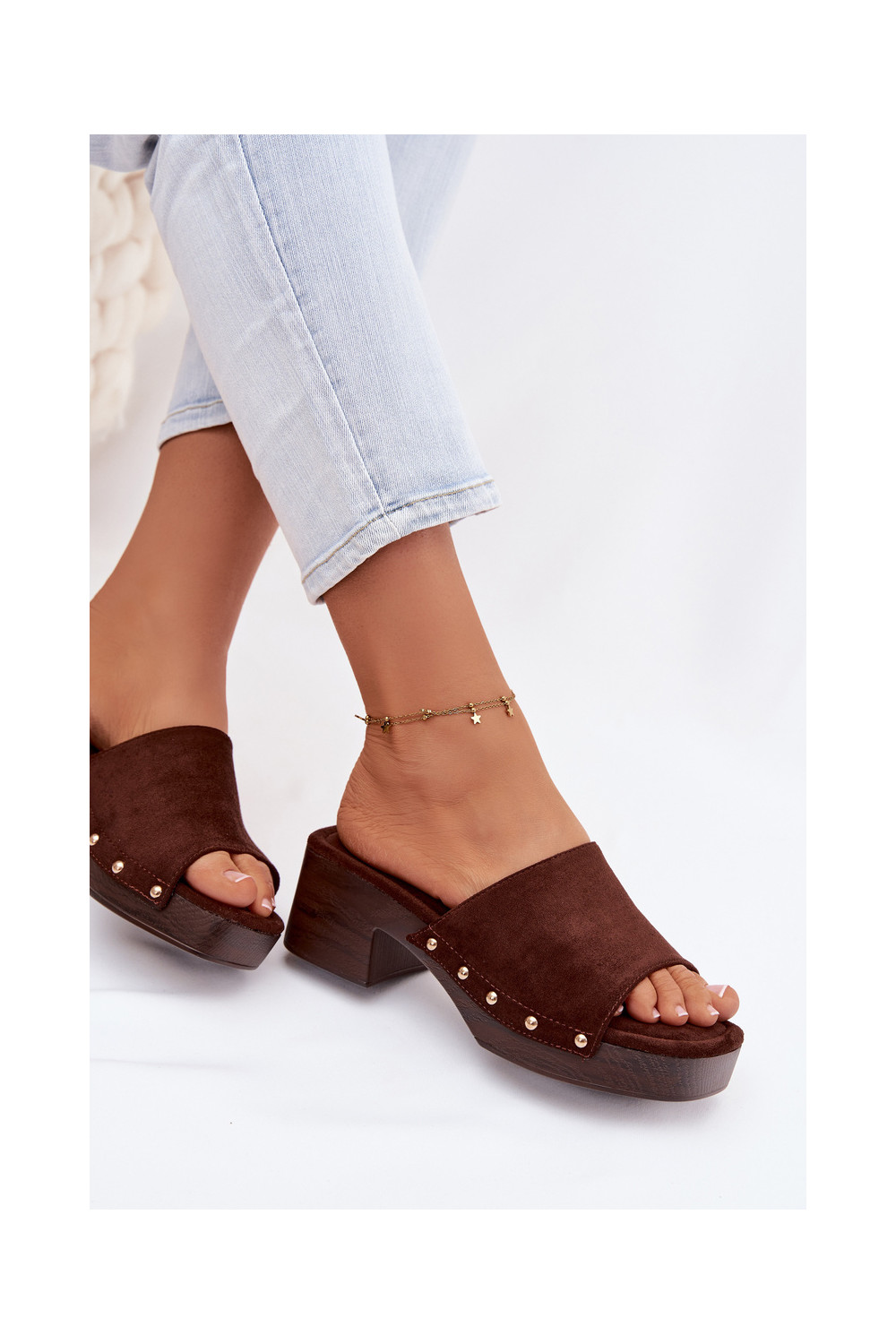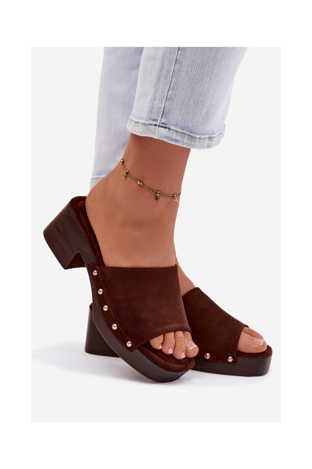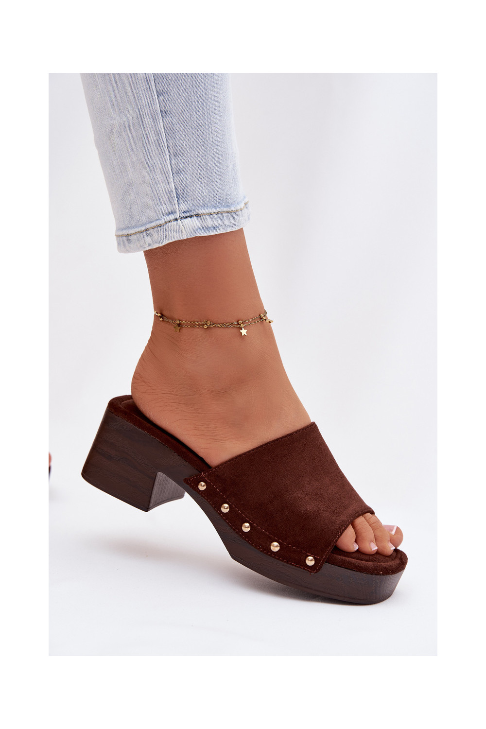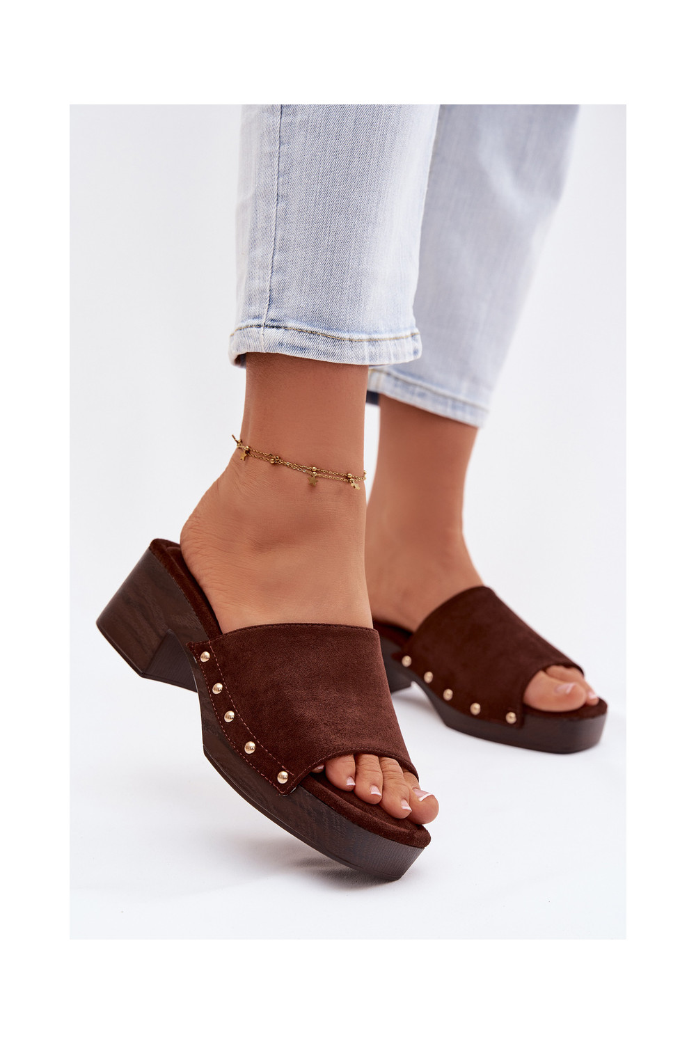 Moteriškos šlepetės Klocke Ze aukso spalvosmi Smeigės CzekoladoĮe Davessa