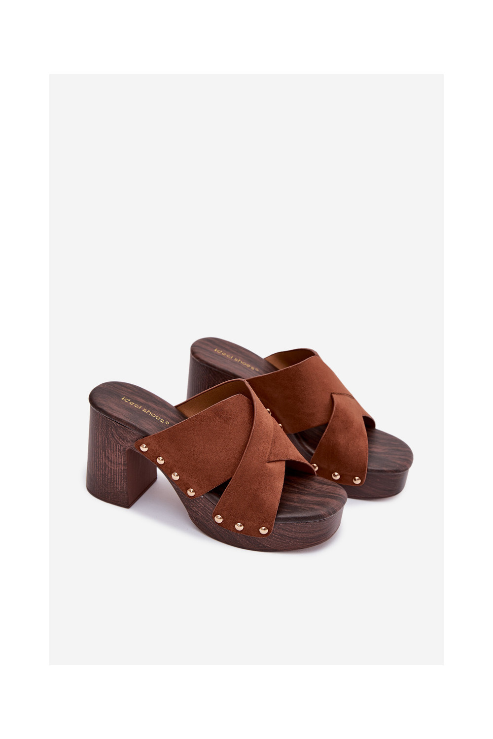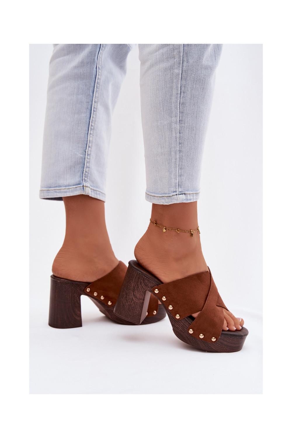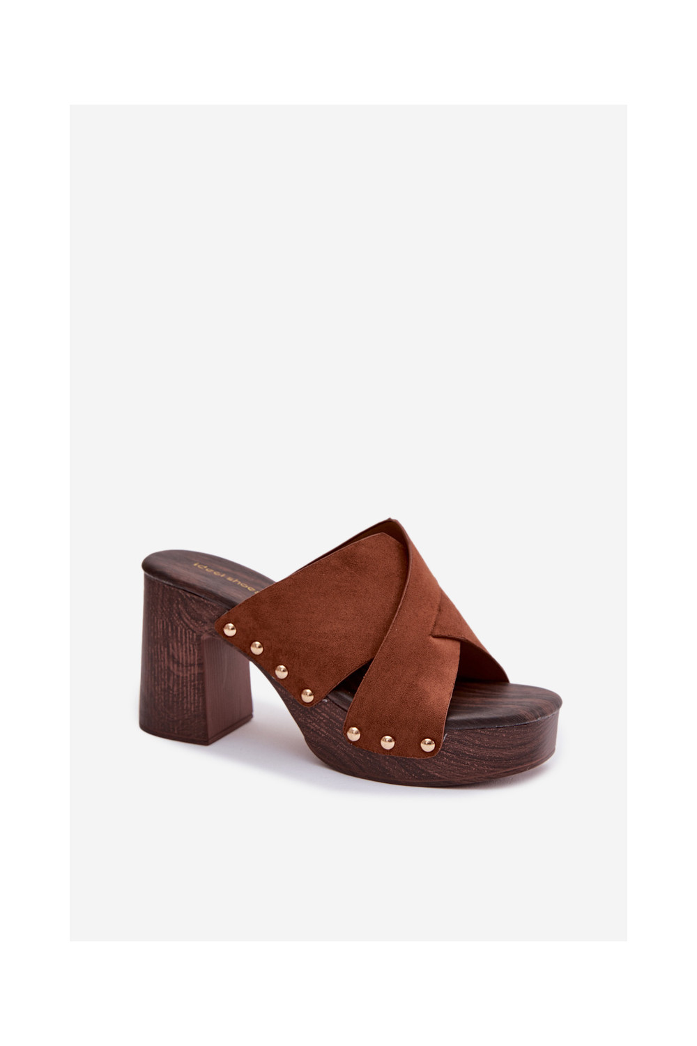 Moteriškos šlepetės su kulniukais Ze aukso spalvosmi Smeigės rudos spalvos Nerelle