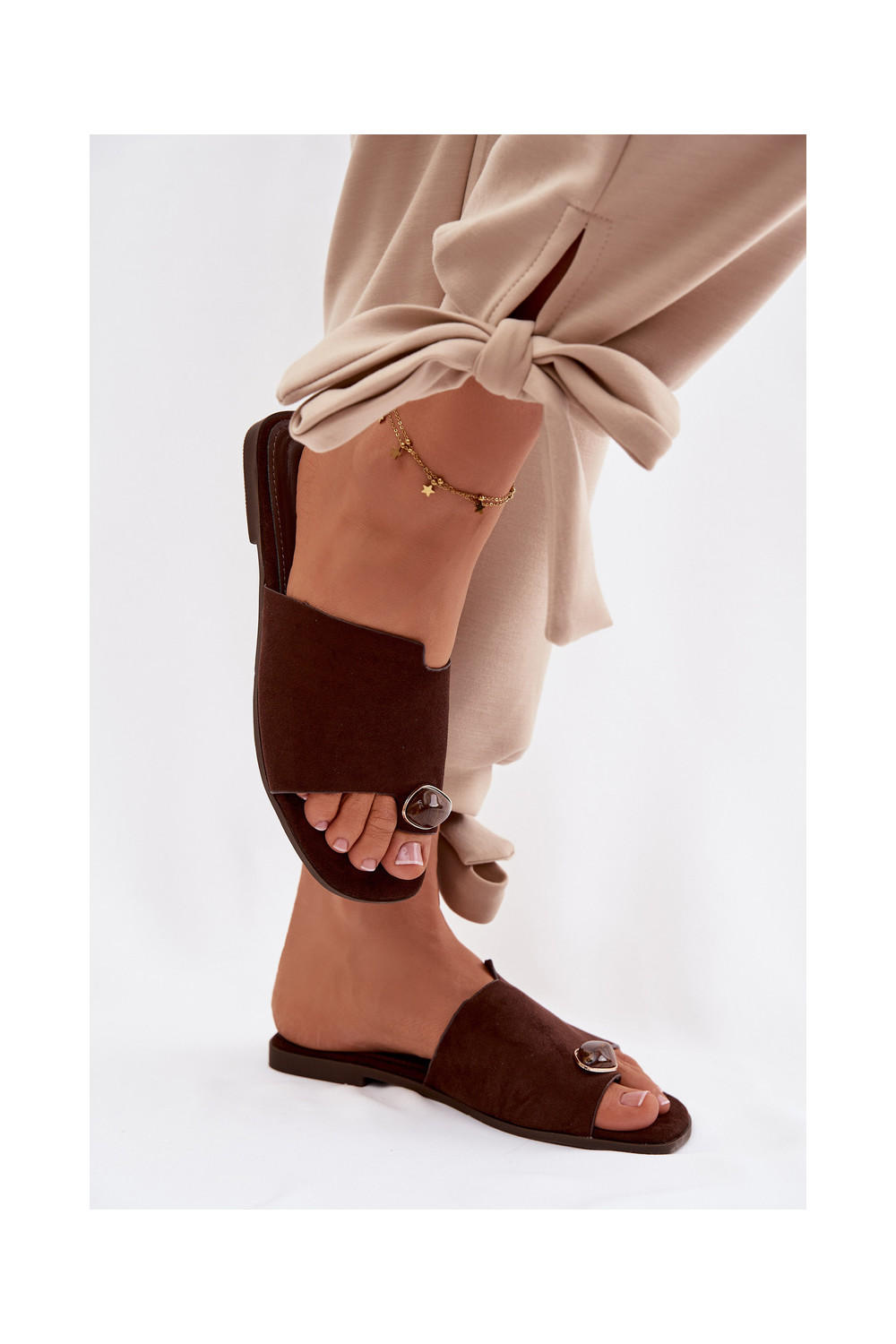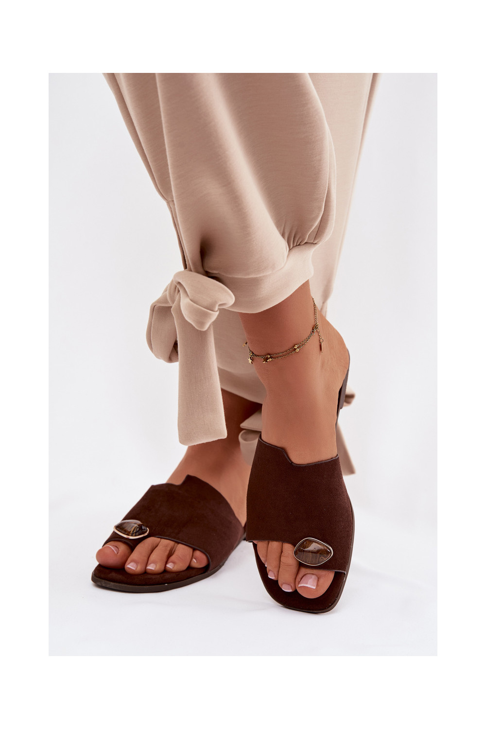 Šlepetės   Detalem iš eko zomšosowe Czekoladowe Selavine