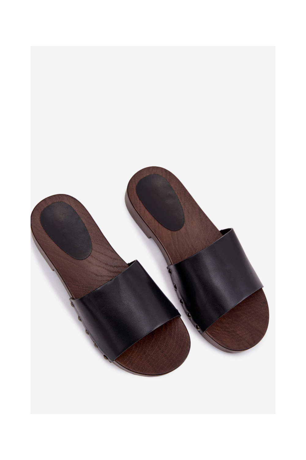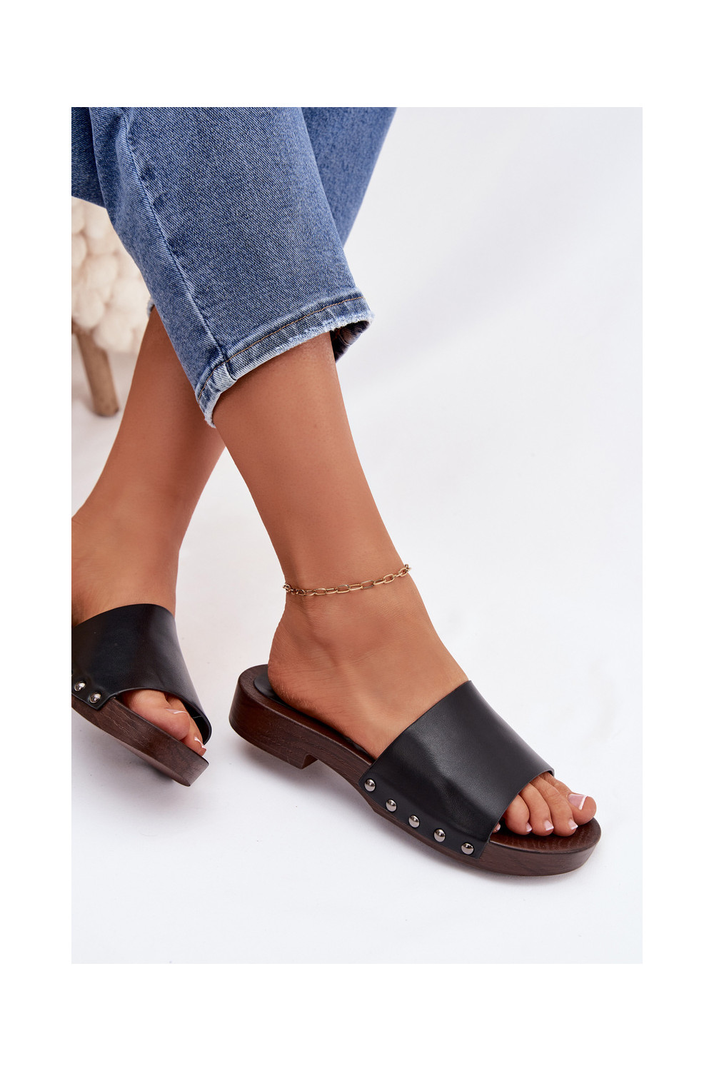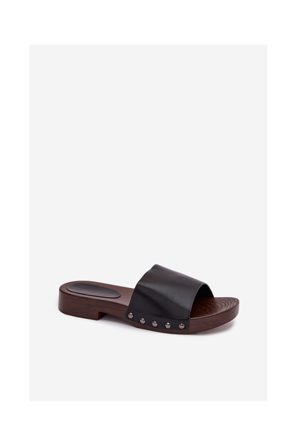 Moteriškos šlepetės su kniedėmis su plačiais kulniukais juodos spalvos Brinalle