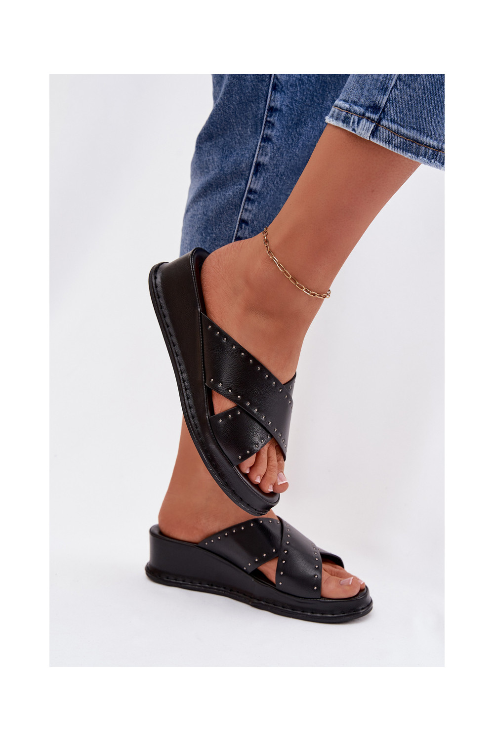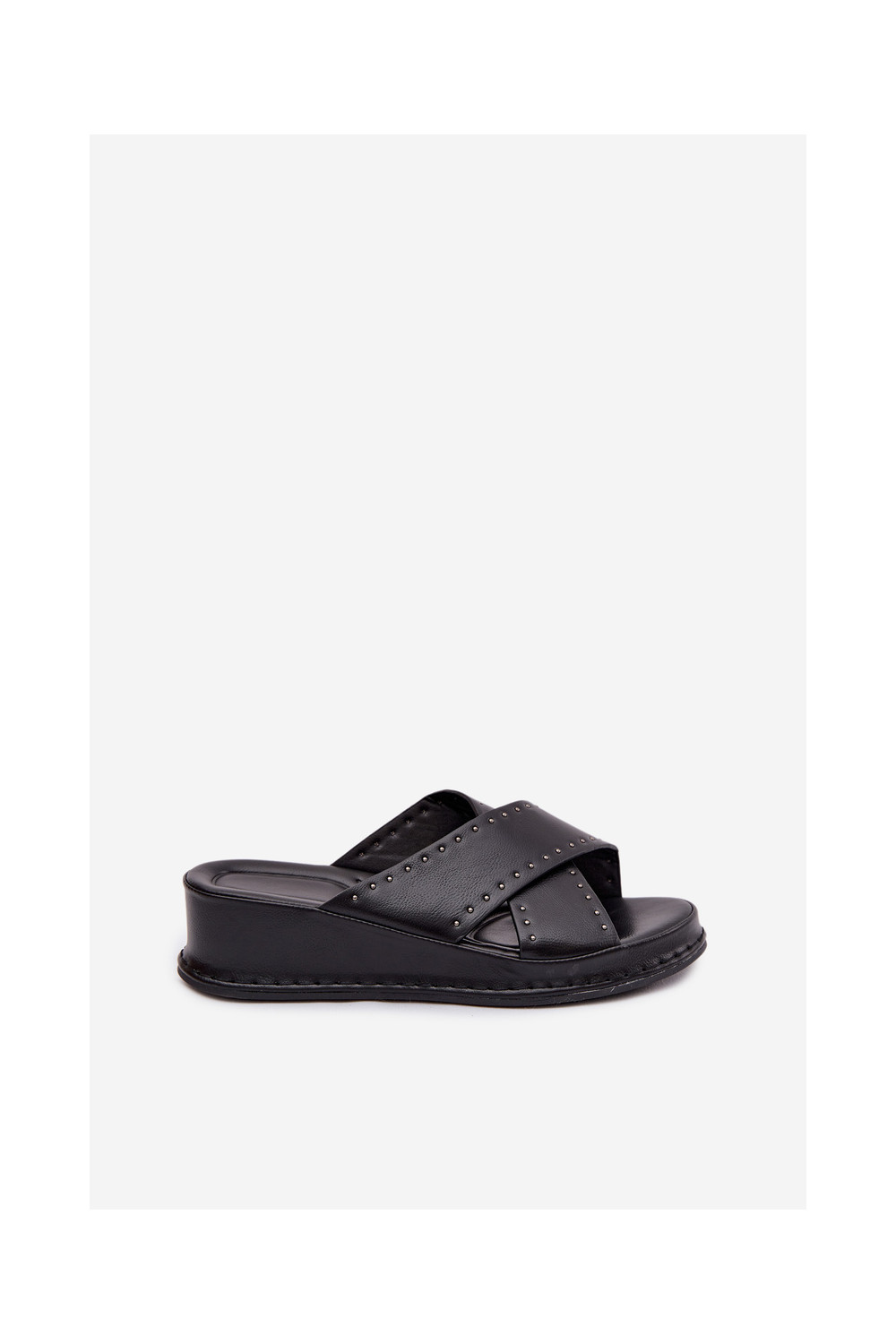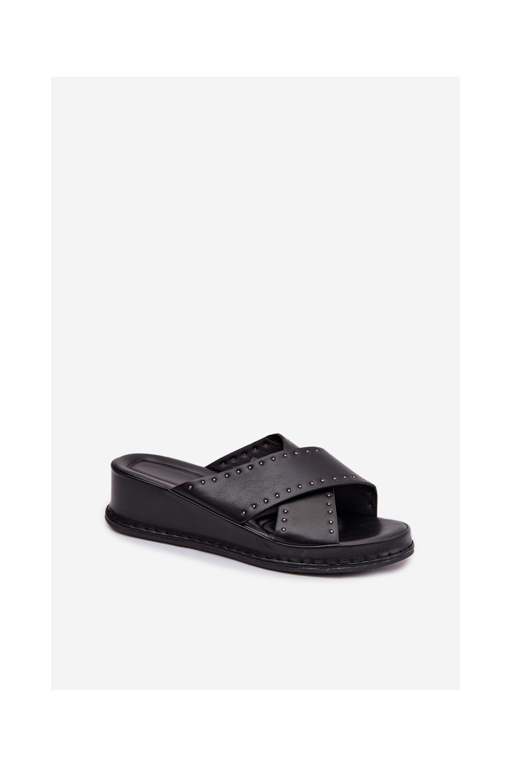 Dekoruotos Moteriškos šlepetės Ant platformos iš eko odos juodos spalvos Calorissa