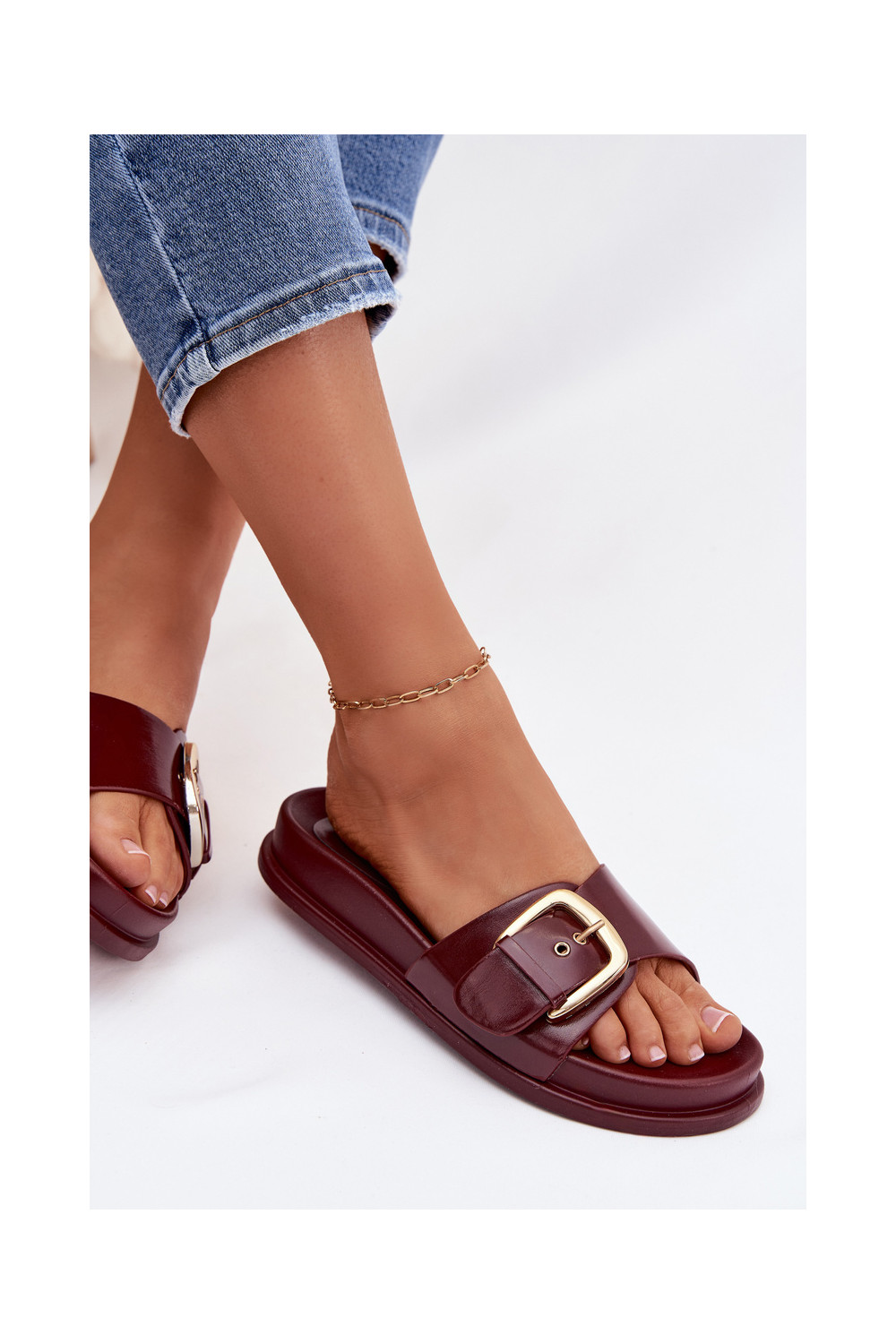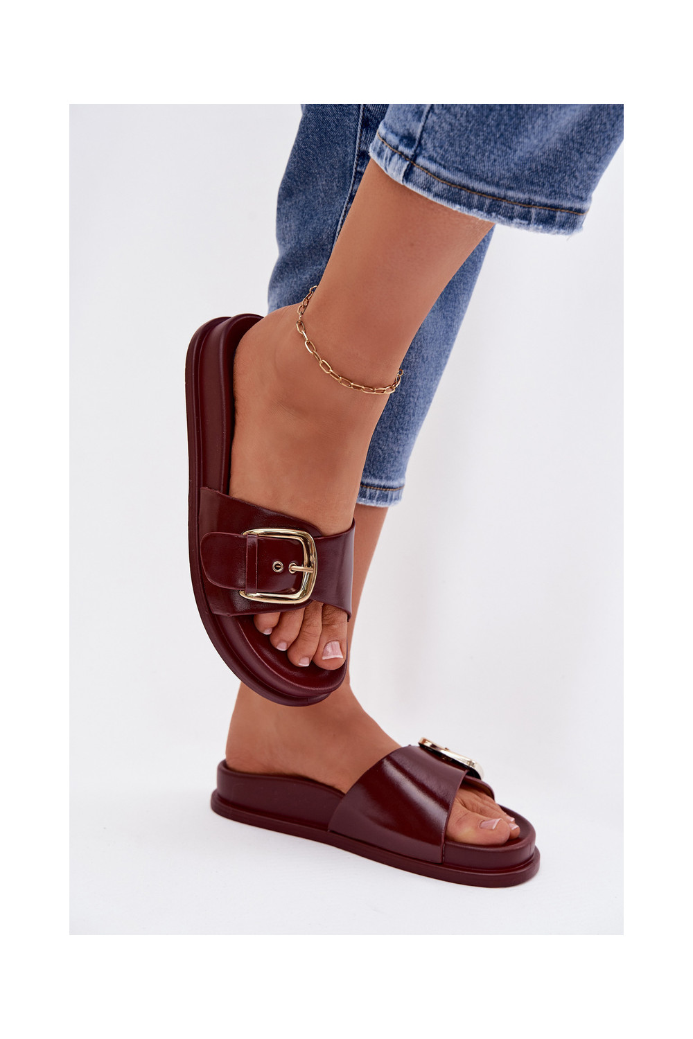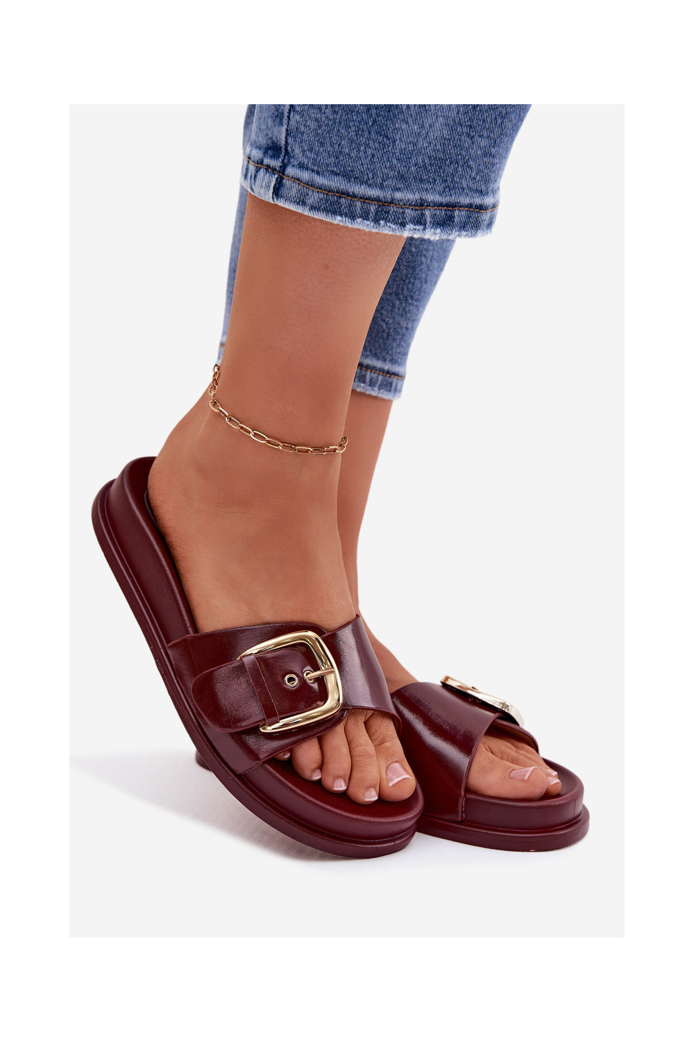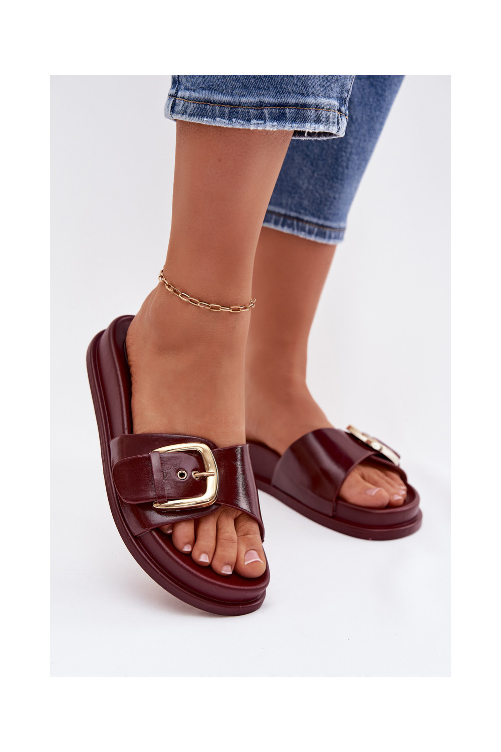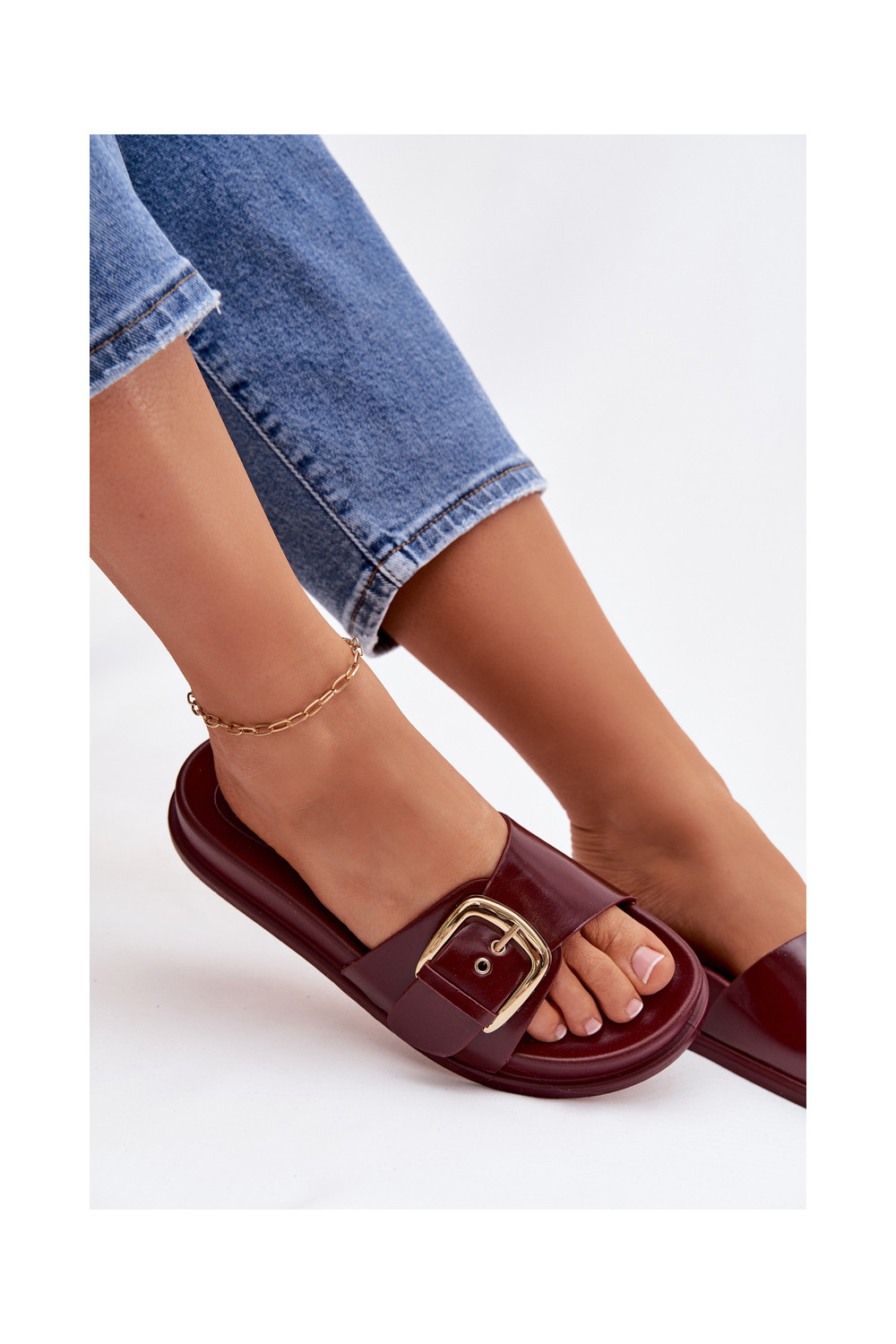 Moteriškos šlepetės su aukso spalvos sagtimis bordo spalvos Rosivana