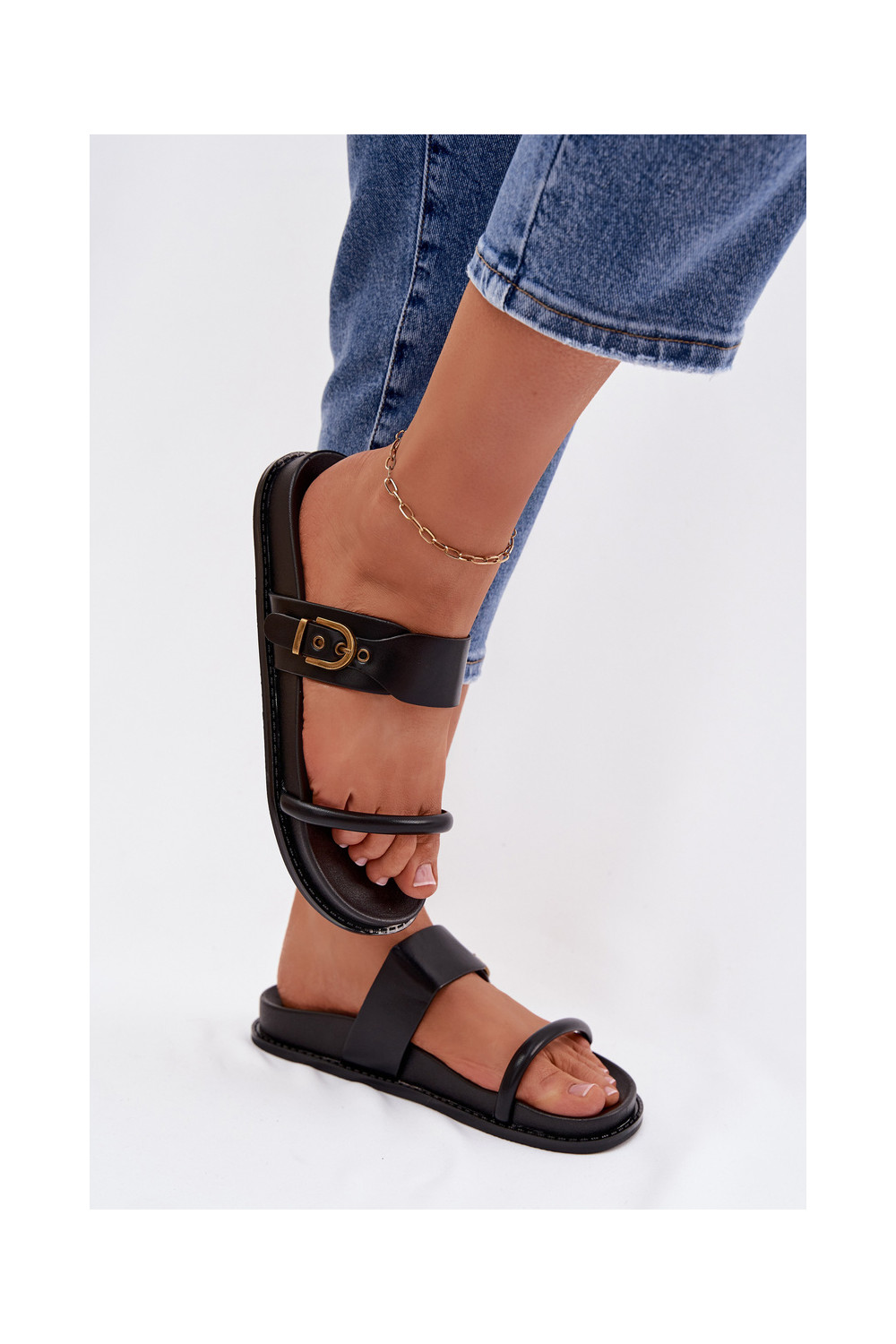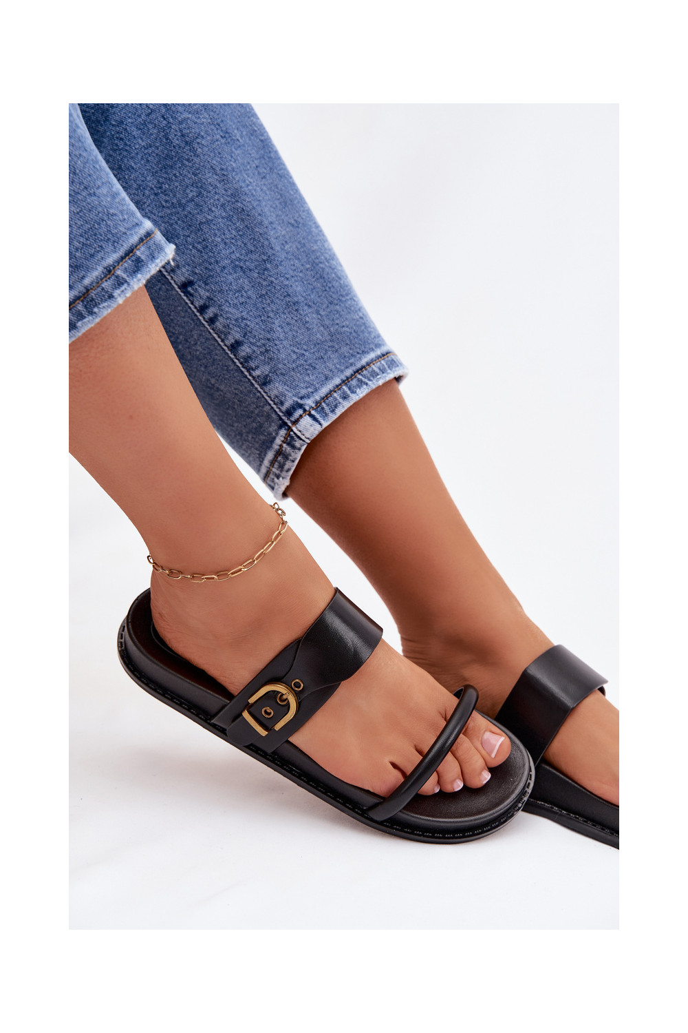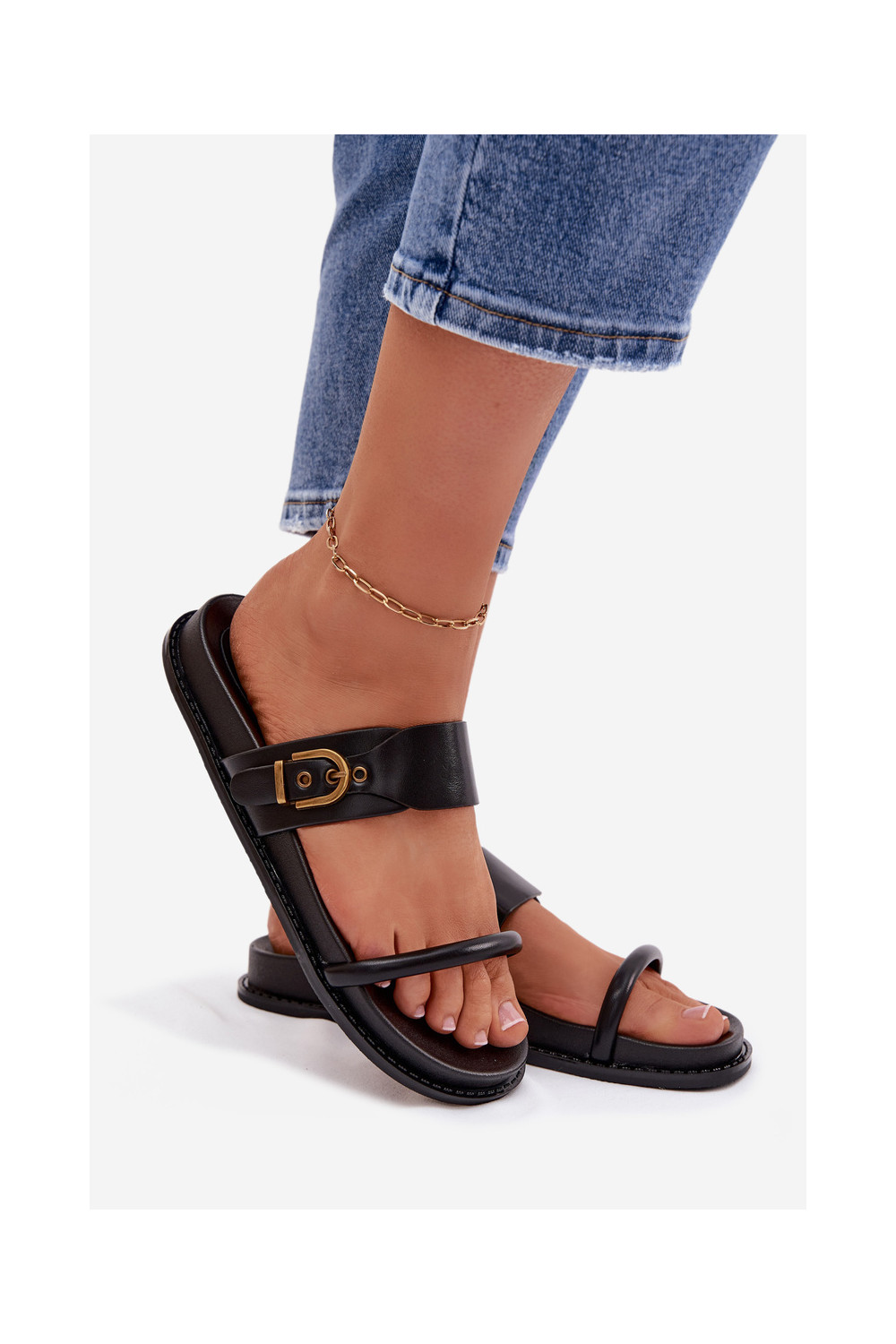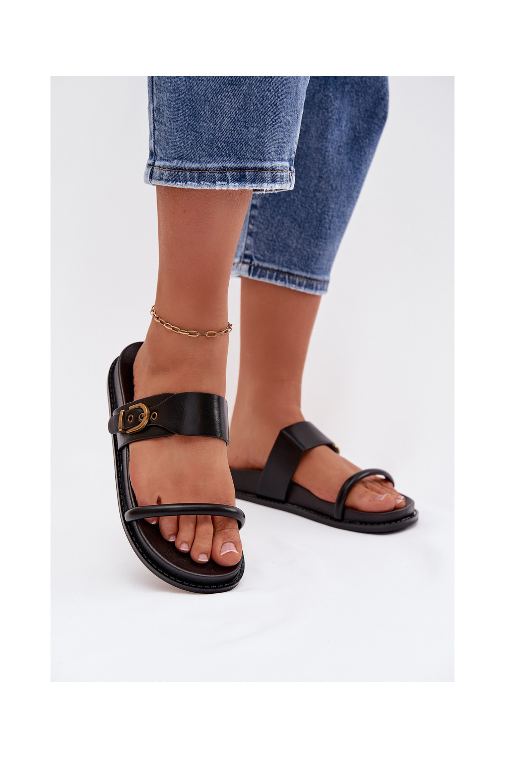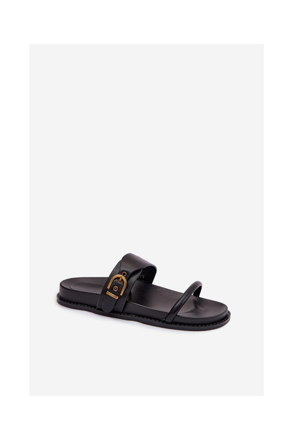 Moteriškos šlepetės su aukso spalvos sagtimis juodos spalvos Sarilisse