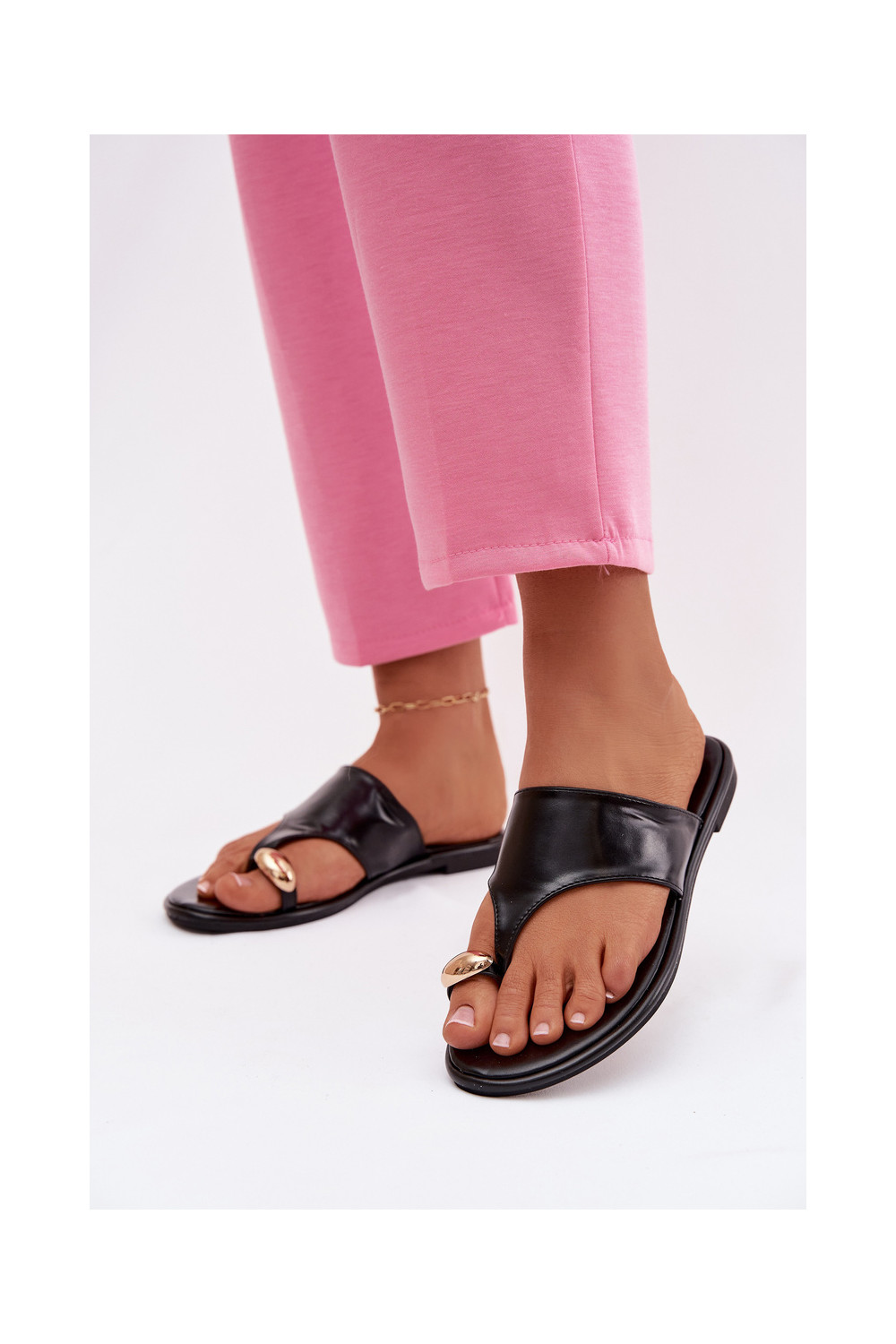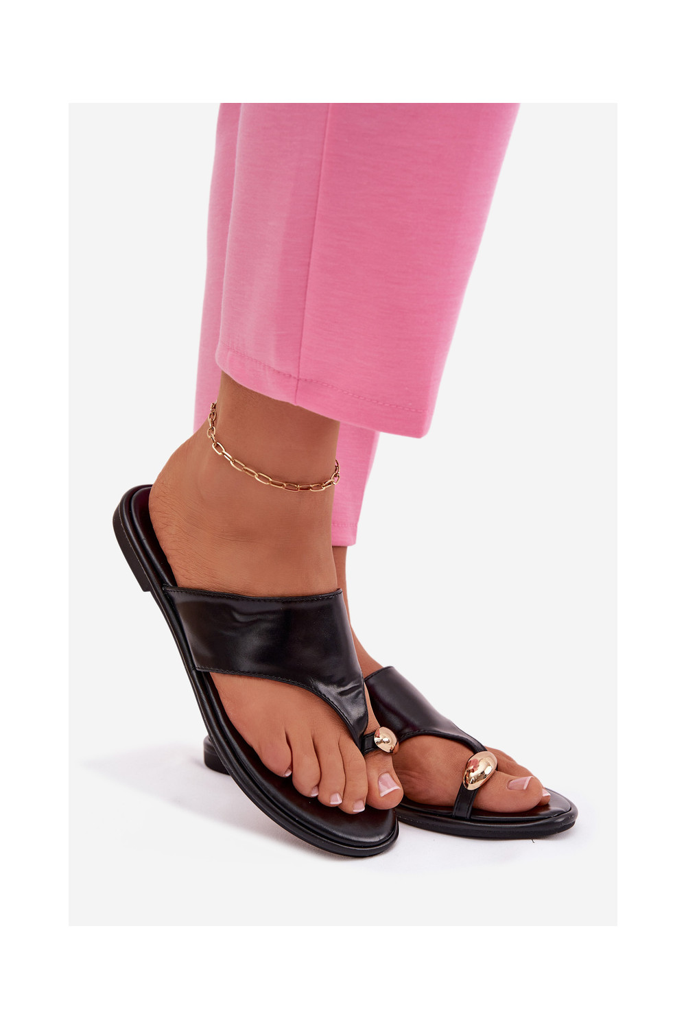 Šlepetės Moteriškas butas Eko Oda Ze aukso spalvosm Detalem juodos spalvos Lavessa