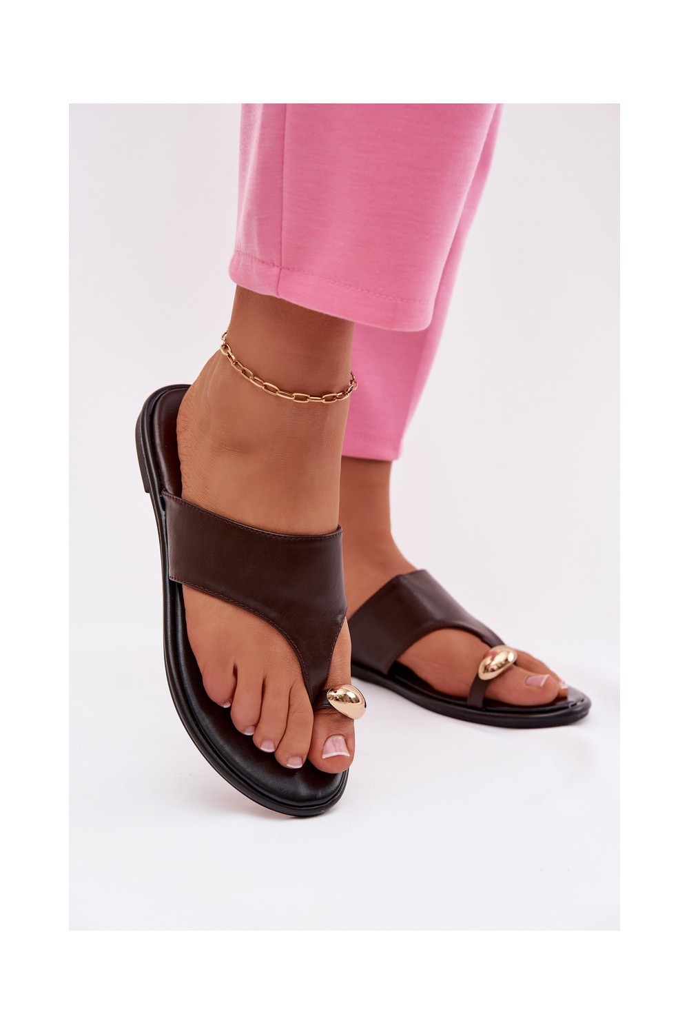 Šlepetės Moteriškas butas Eko Oda Ze aukso spalvosm Detalem CzekoladoĮe Lavessa