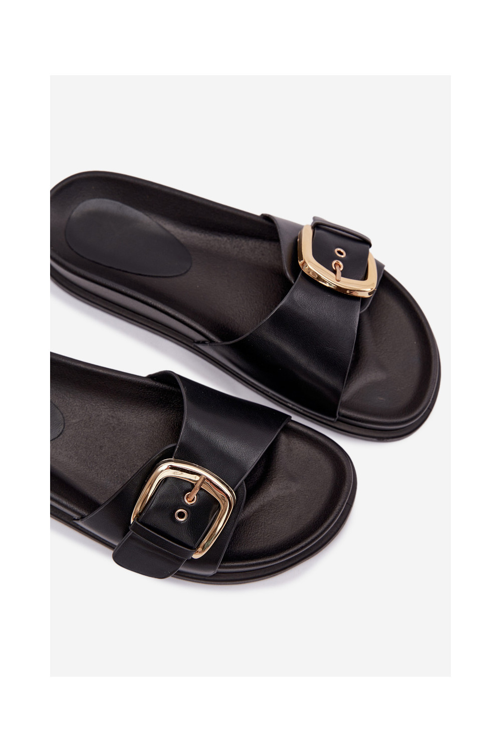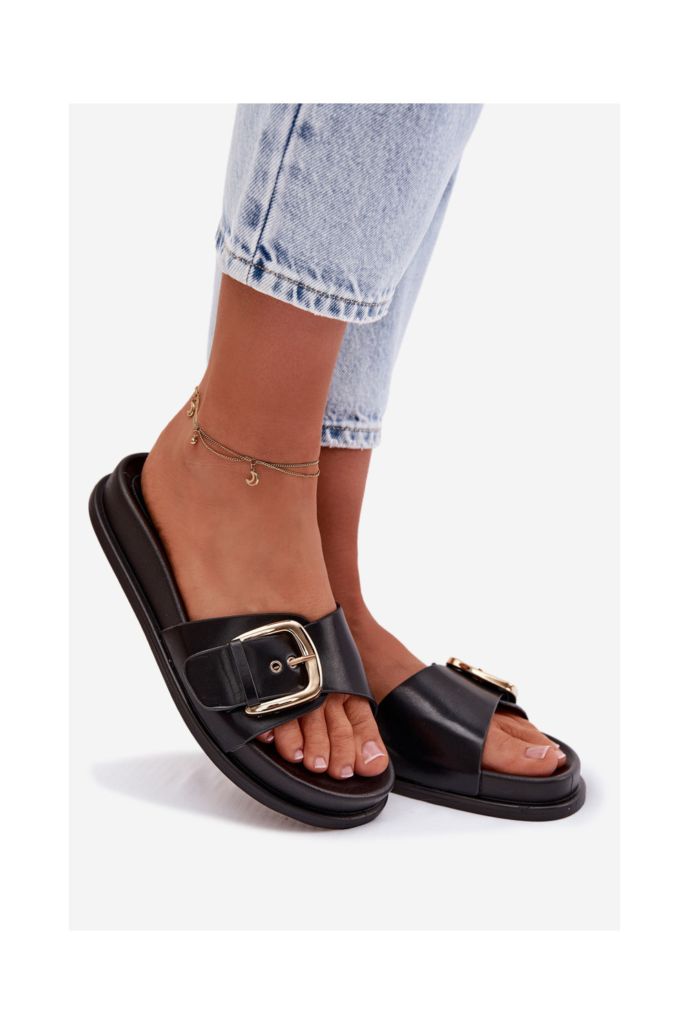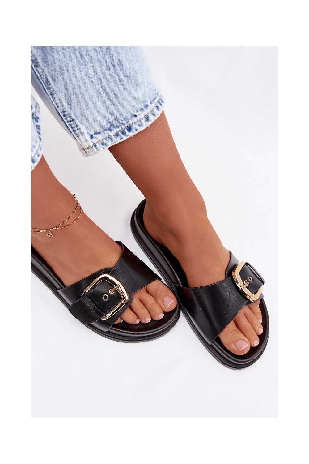Moteriškos šlepetės su aukso spalvos sagtimis juodos spalvos Rosivana