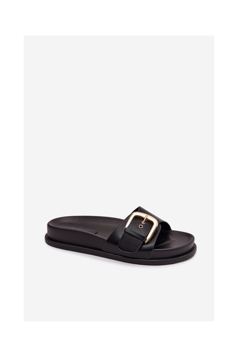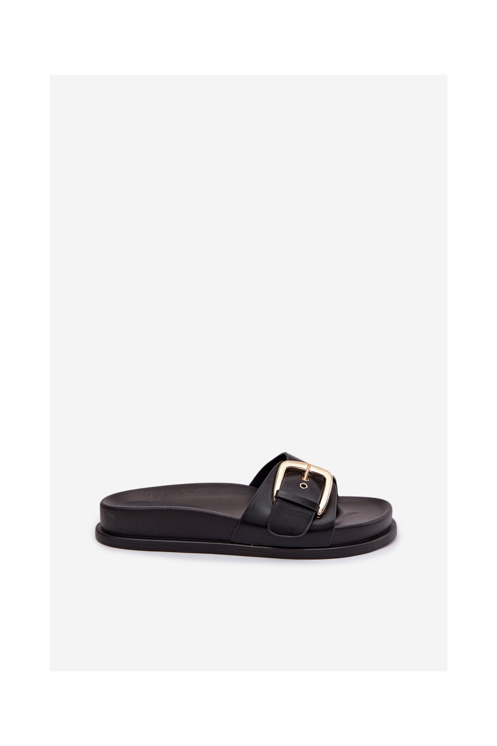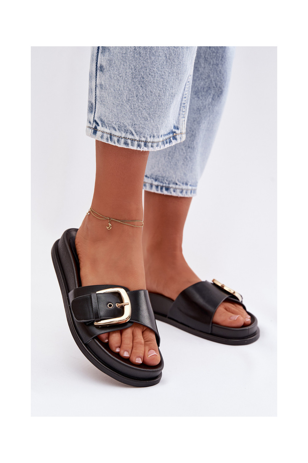 Moteriškos šlepetės su aukso spalvos sagtimis juodos spalvos Rosivana