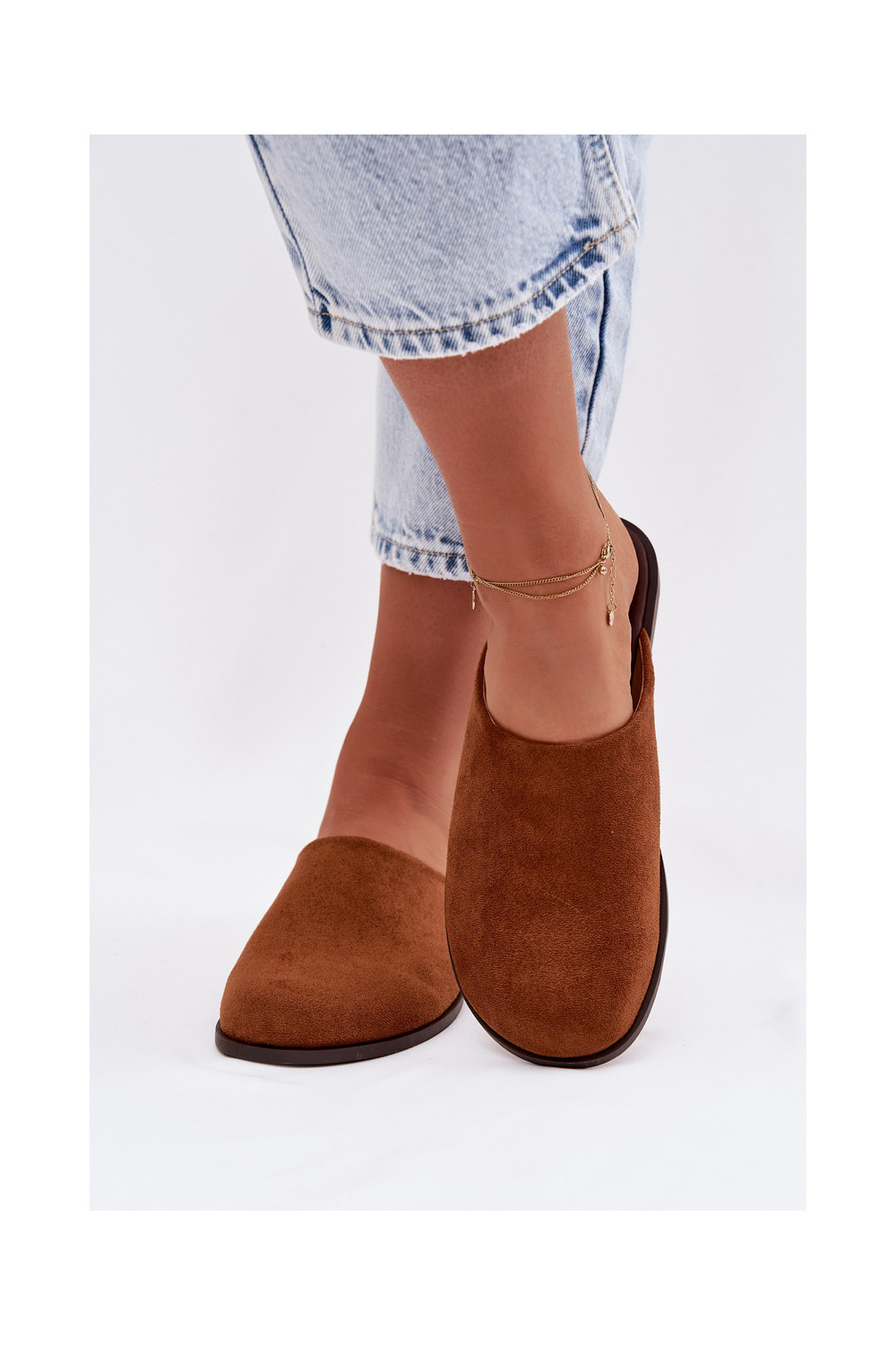 Šlepetės Moteriškas butassuiš eko zomšosu rudos spalvos Veronelle