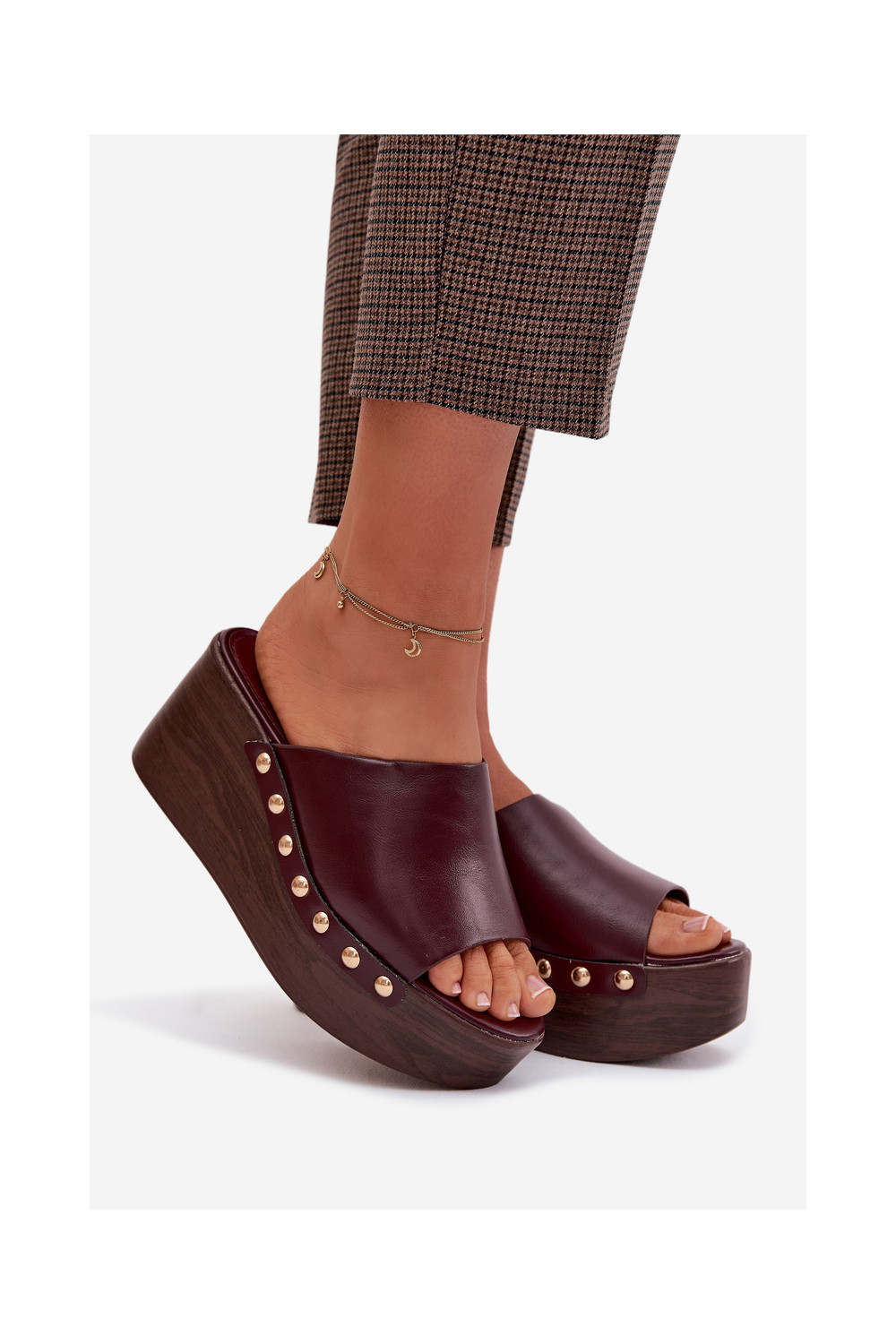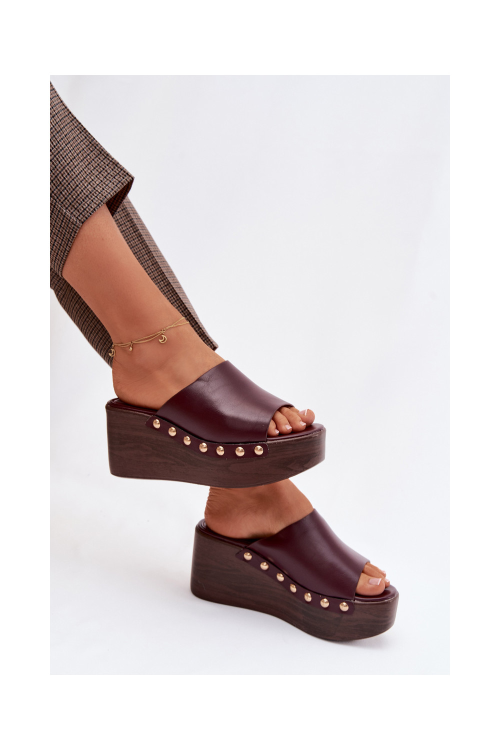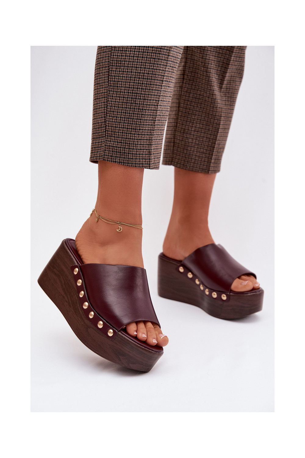 Moteriškos šlepetės Ant platformos ir platforma Ze aukso spalvosmi Smeigės bordo spalvos Farinelle