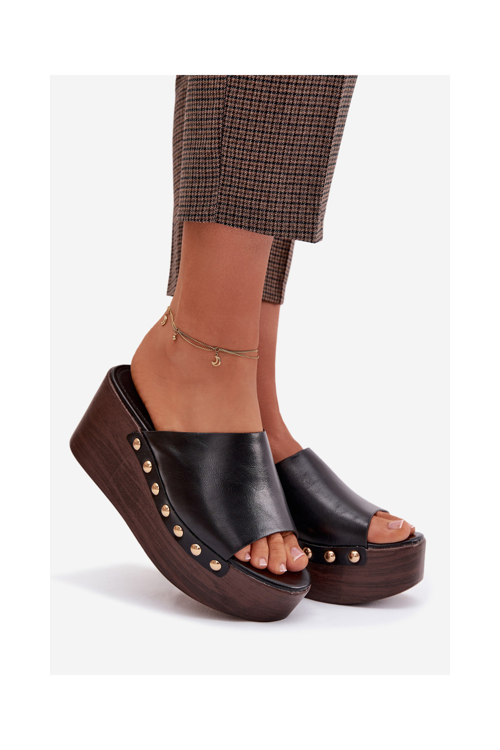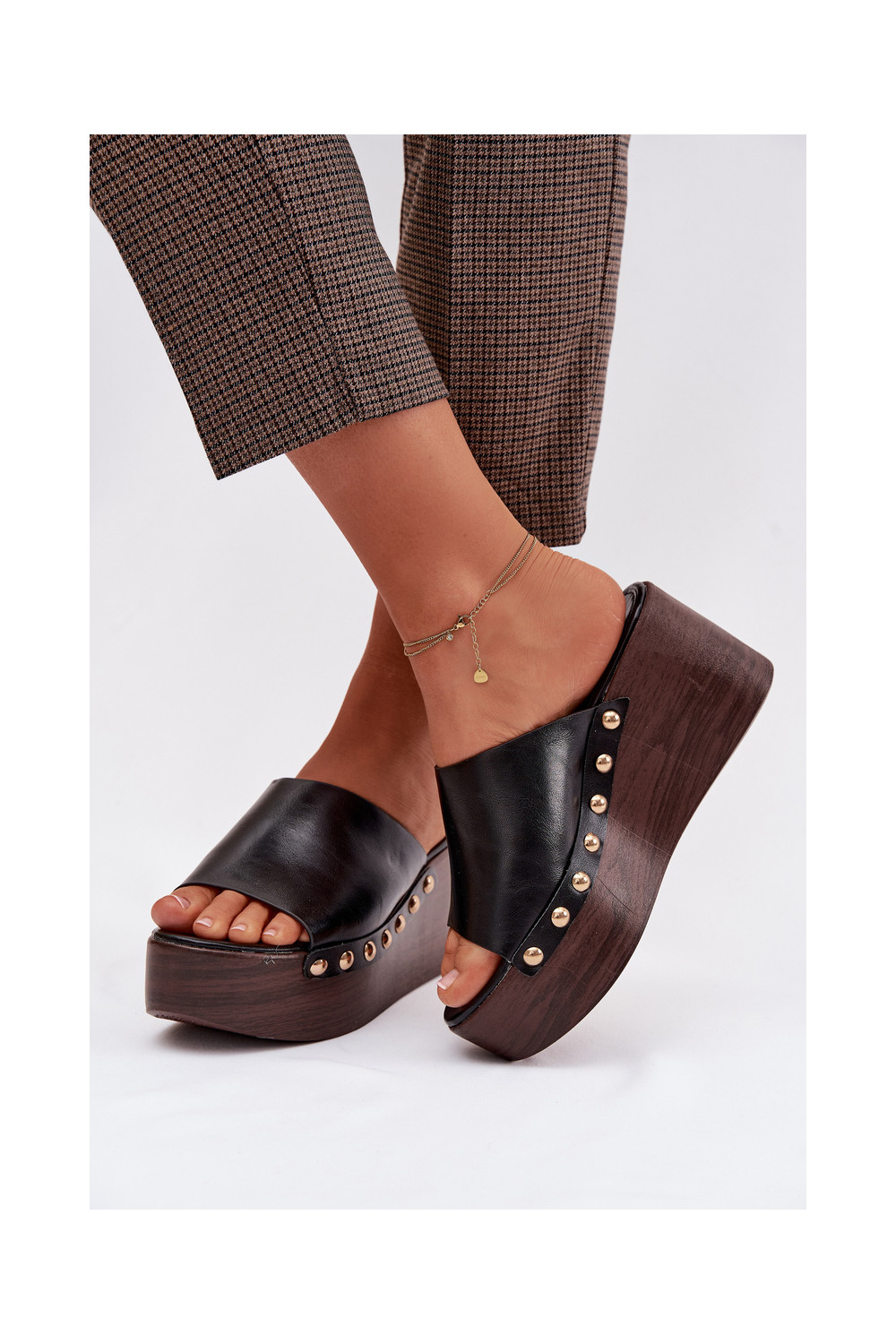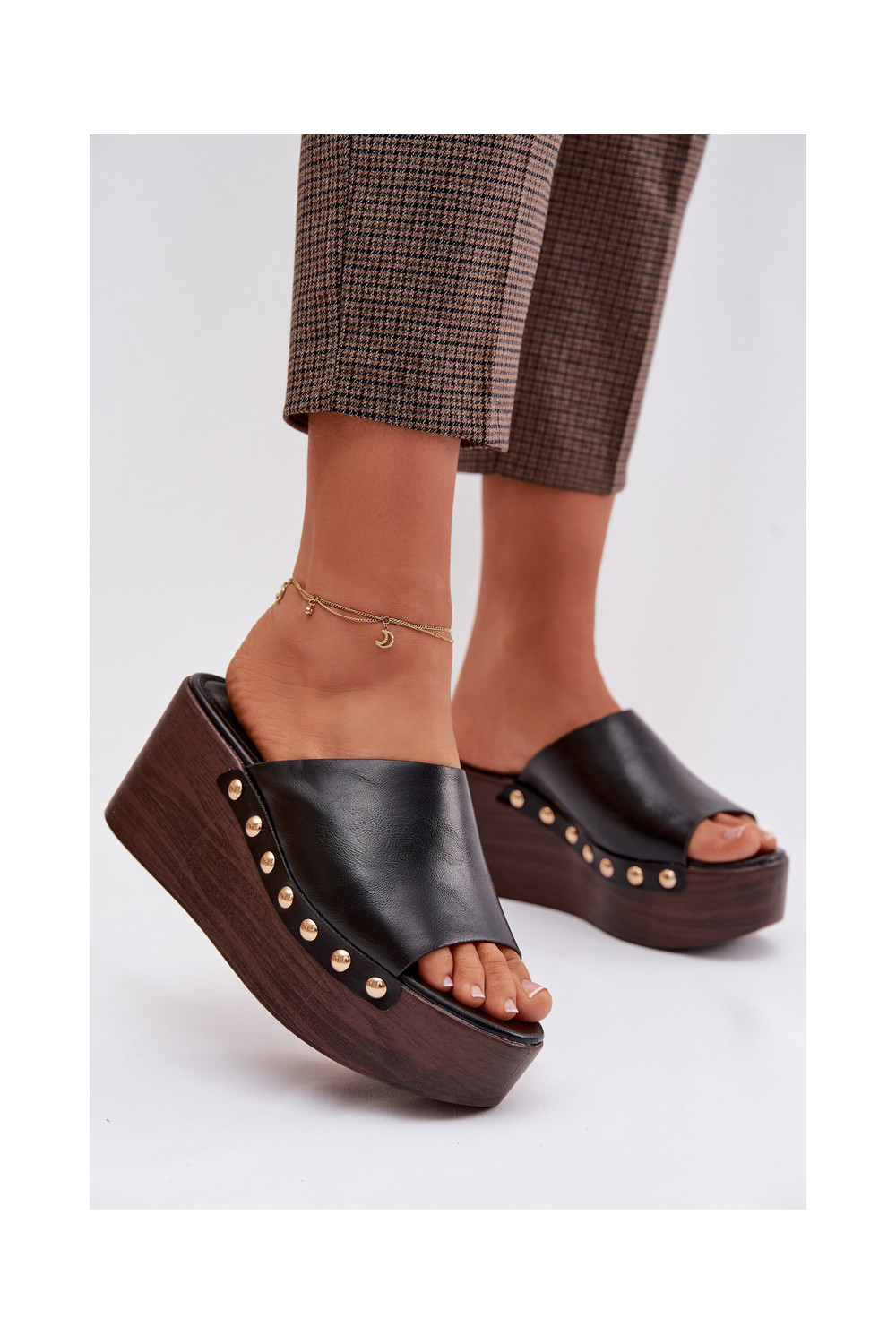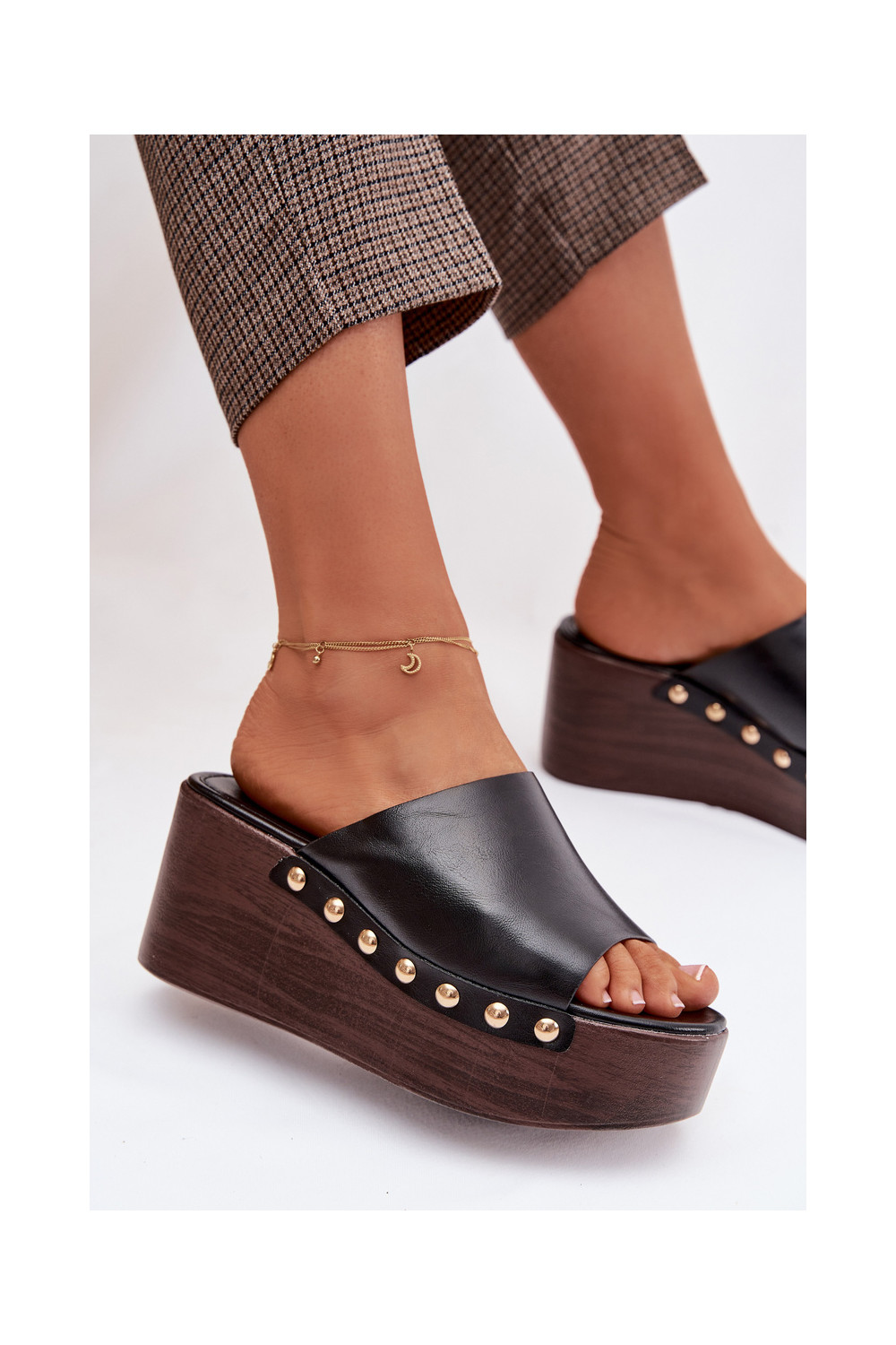 Moteriškos šlepetės Ant platformos ir platforma Ze aukso spalvosmi Smeigės juodos spalvos Farinelle