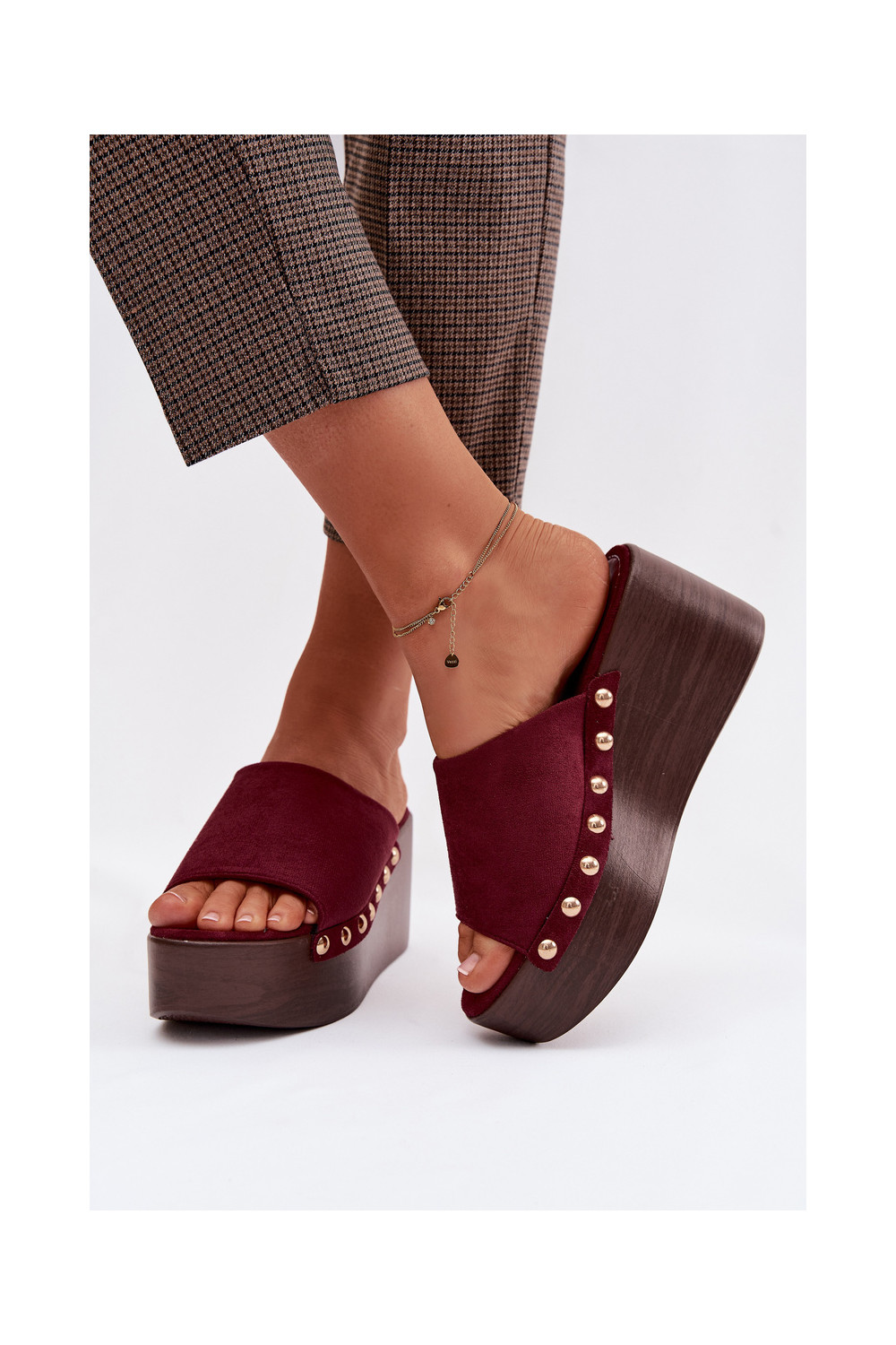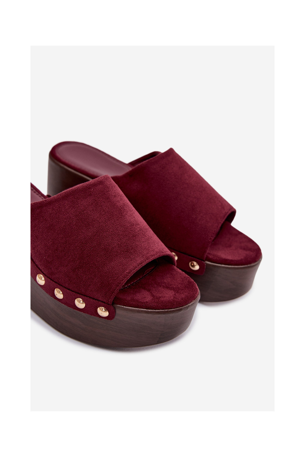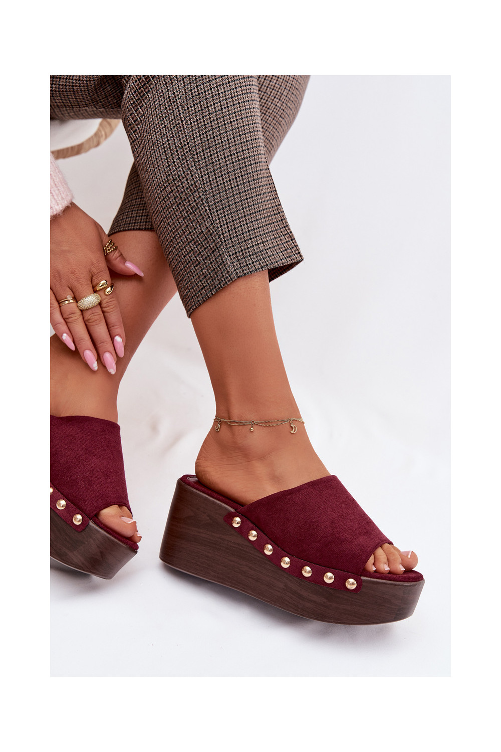 Moteriškos šlepetės Ant platformos Ze aukso spalvosmi Smeigės iš eko zomšosoĮe bordo spalvos Helivina