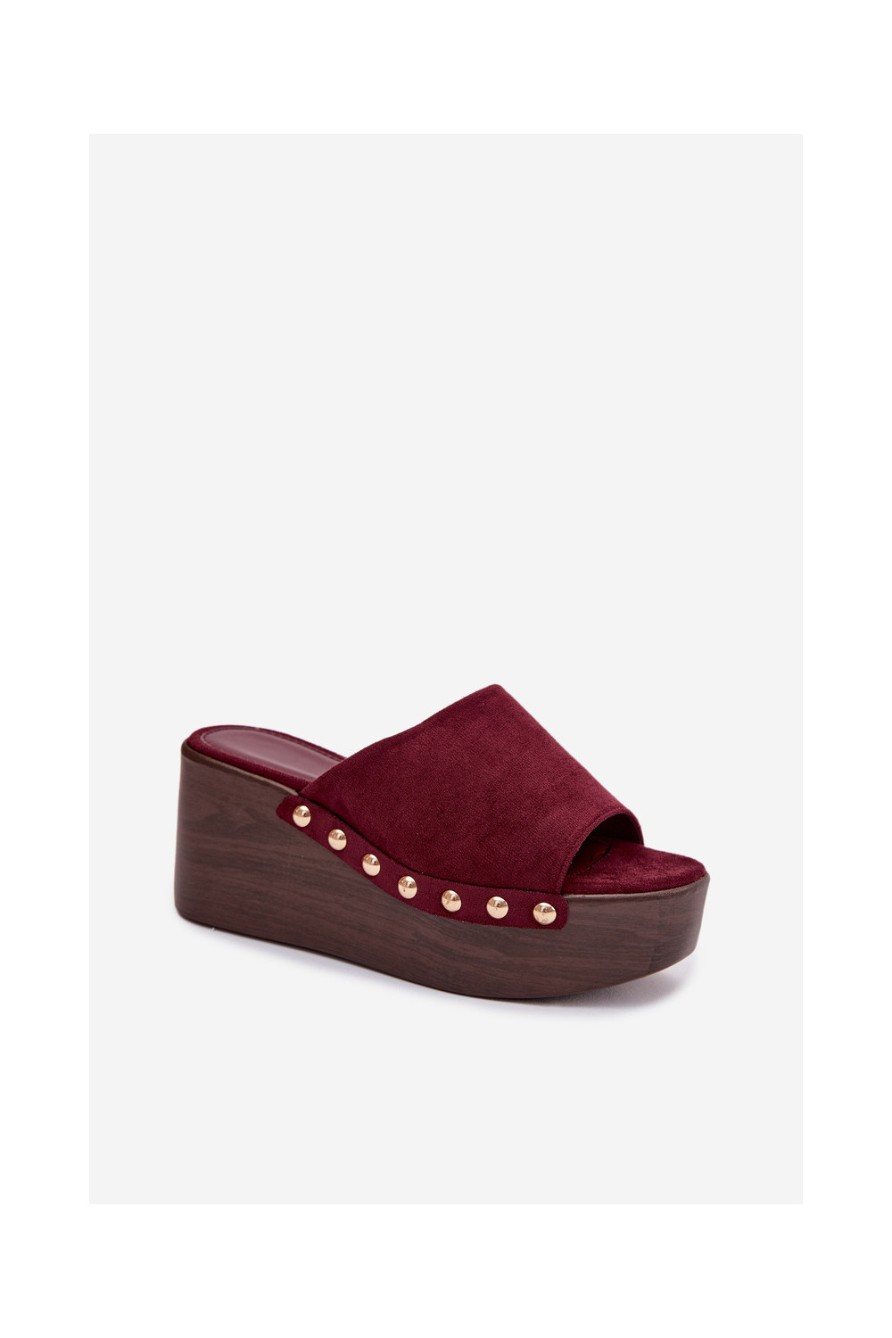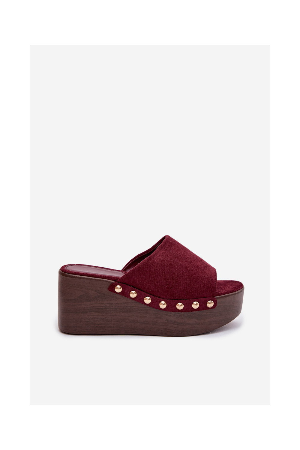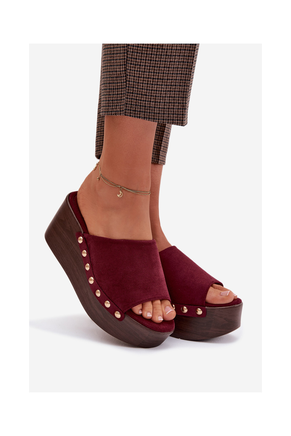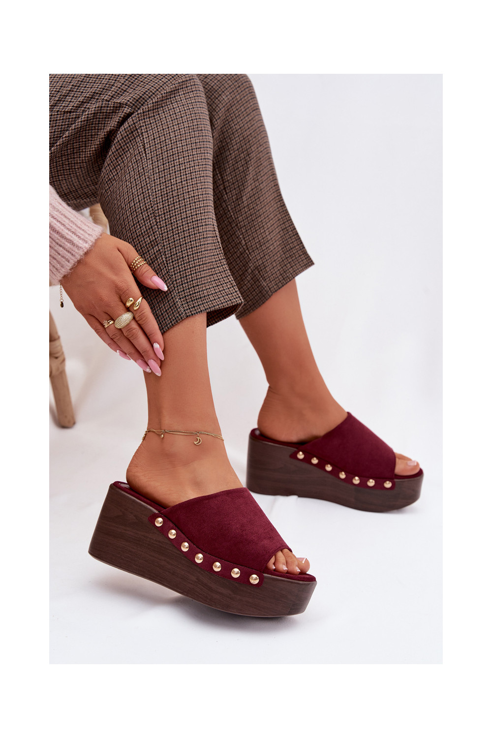 Moteriškos šlepetės Ant platformos Ze aukso spalvosmi Smeigės iš eko zomšosoĮe bordo spalvos Helivina