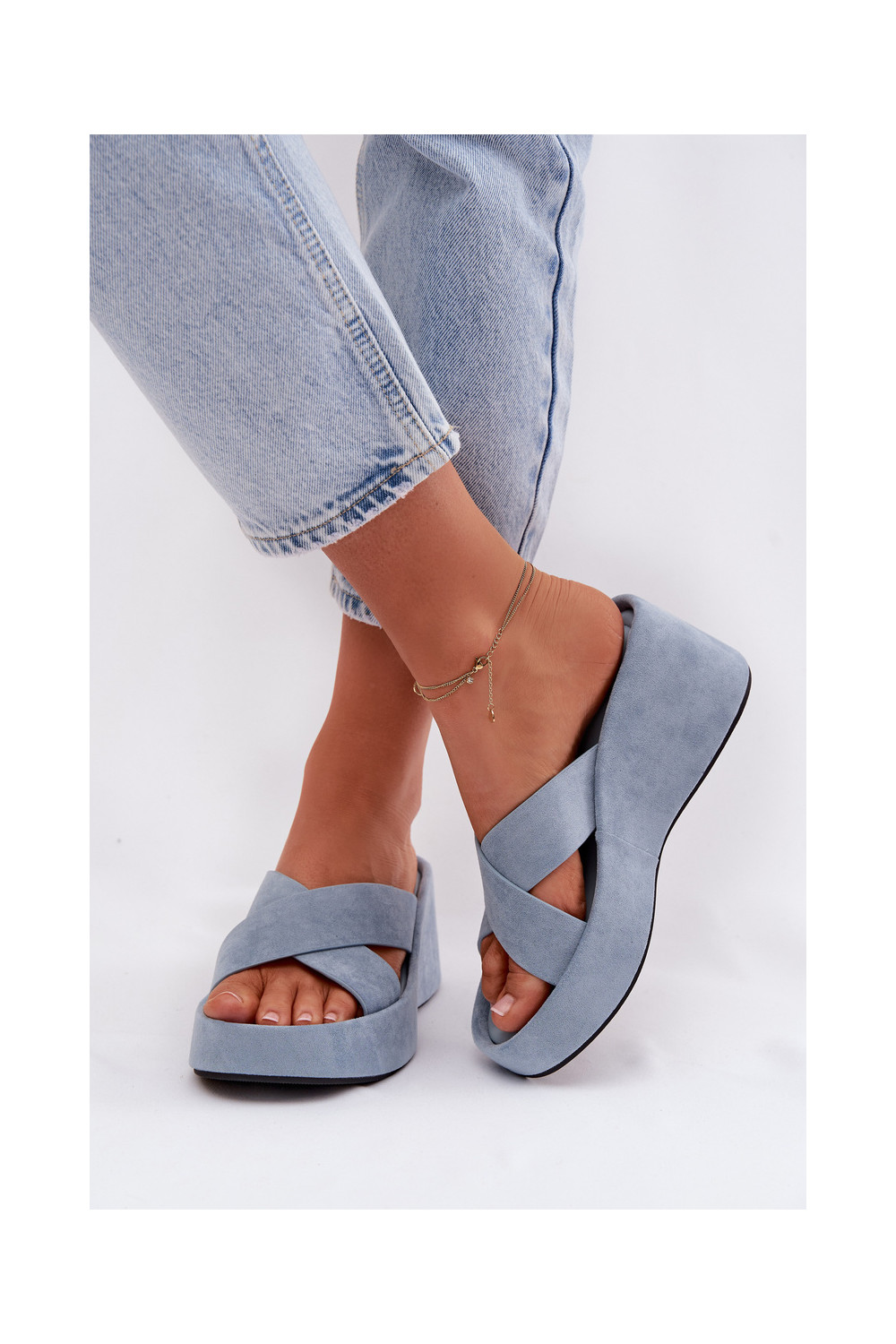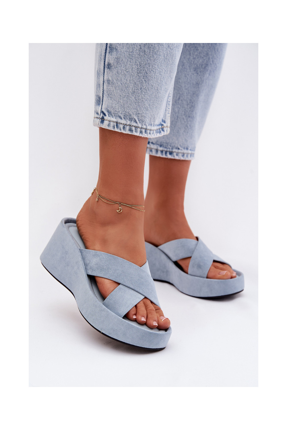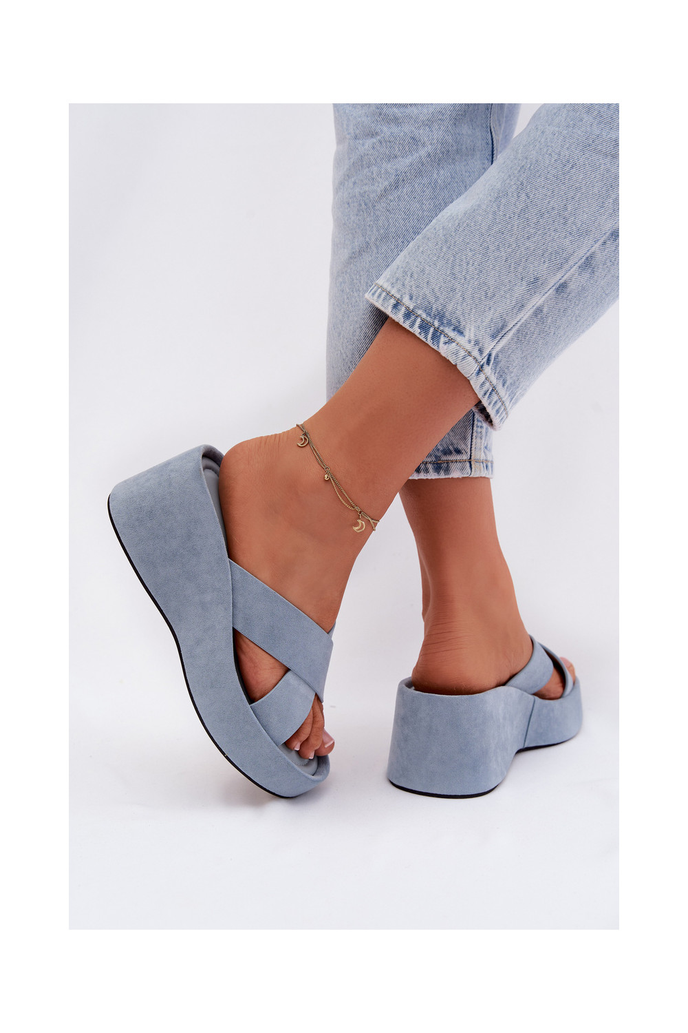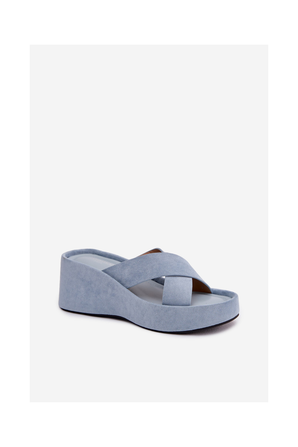 Moteriškos šlepetės Ant platformossuiš eko zomšosu mėlynos spalvos Calorine
