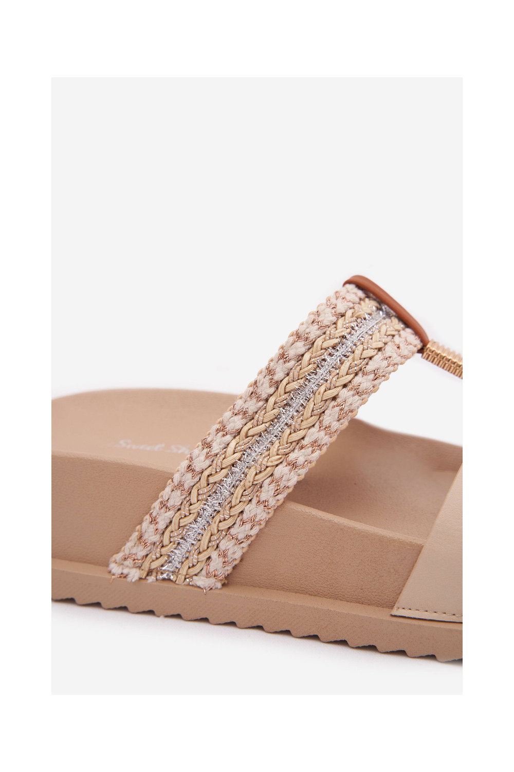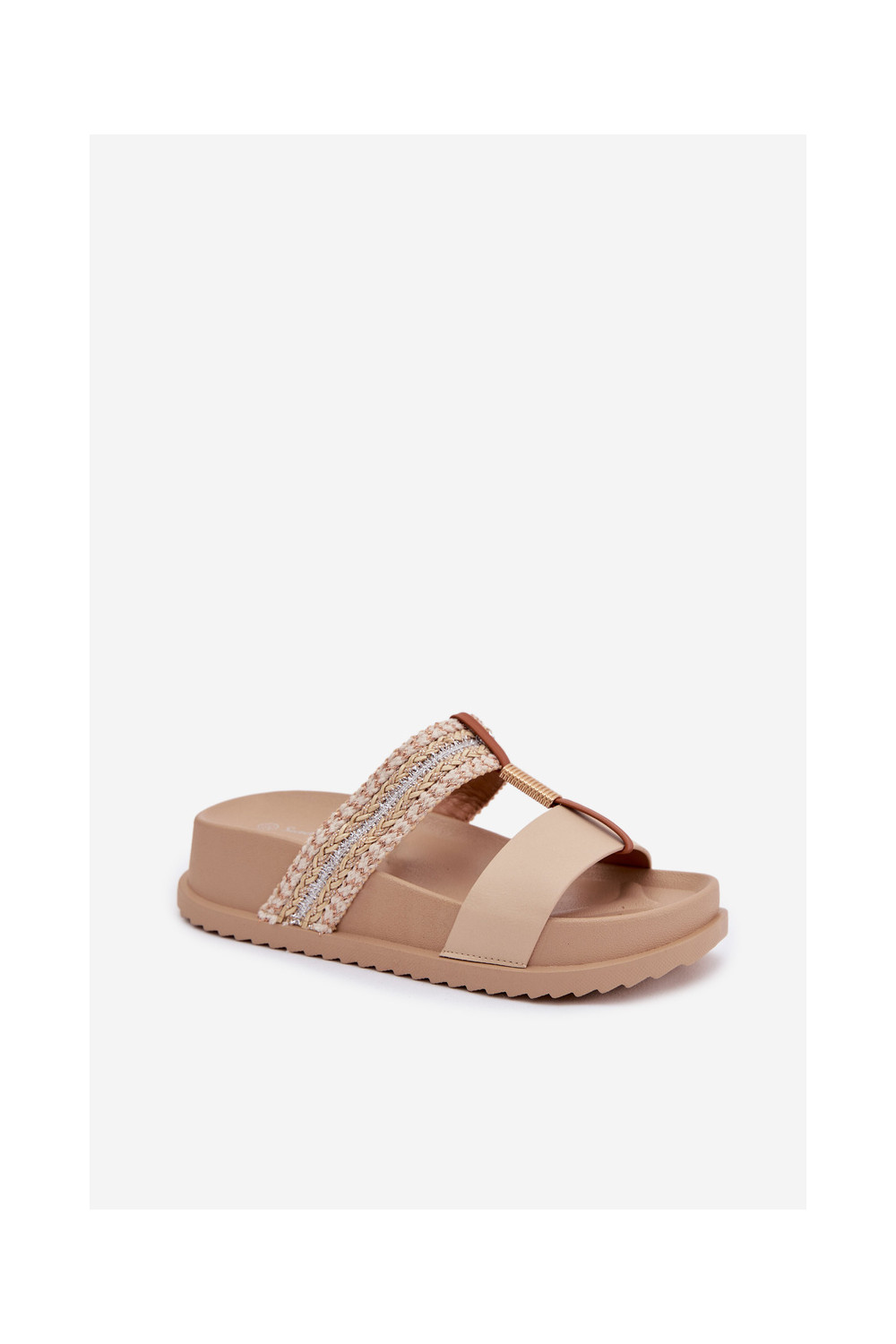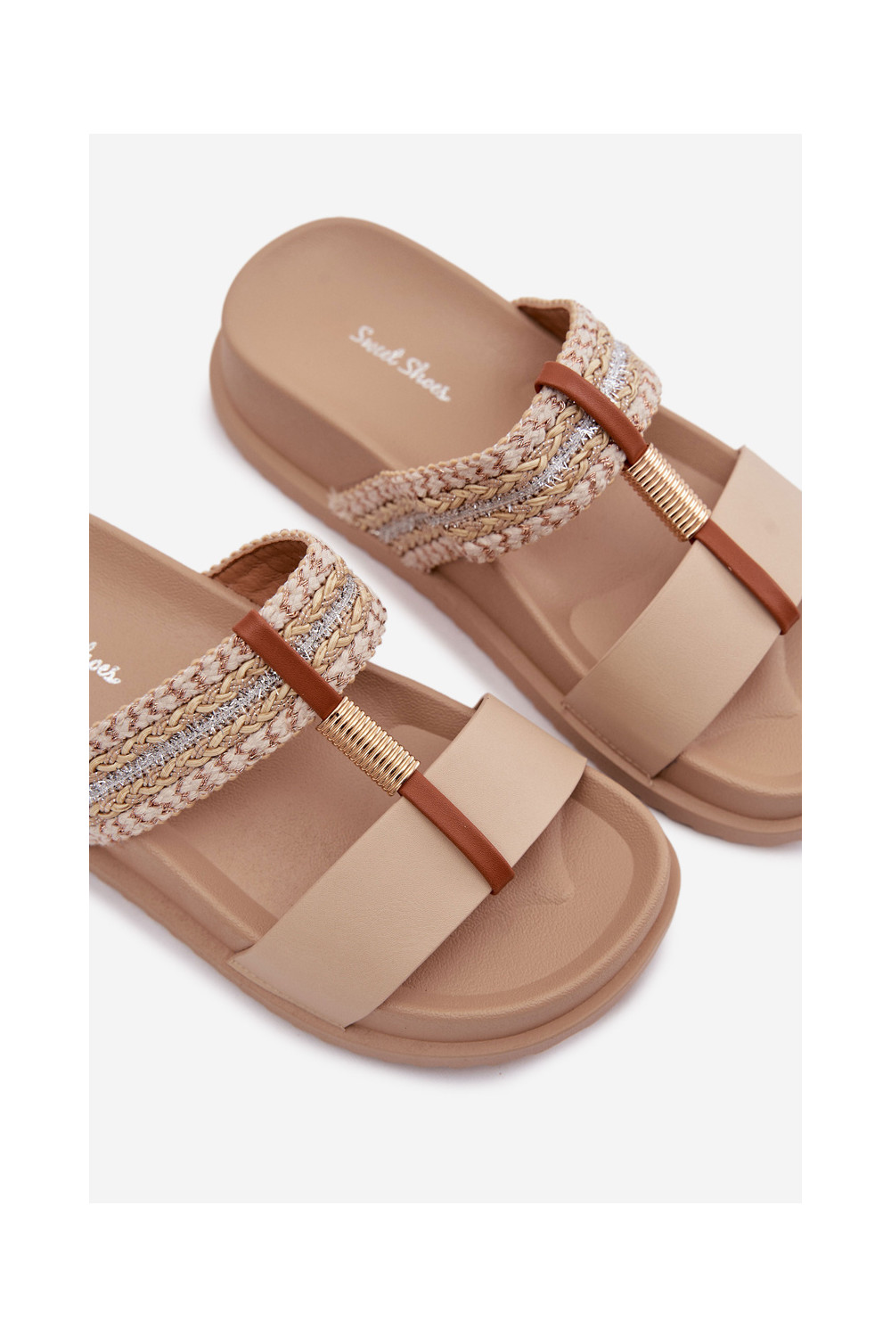 Moteriškos šlepetės su platforma su juostelėmis I aukso spalvosm Detalem smėlio spalvos Tahlia