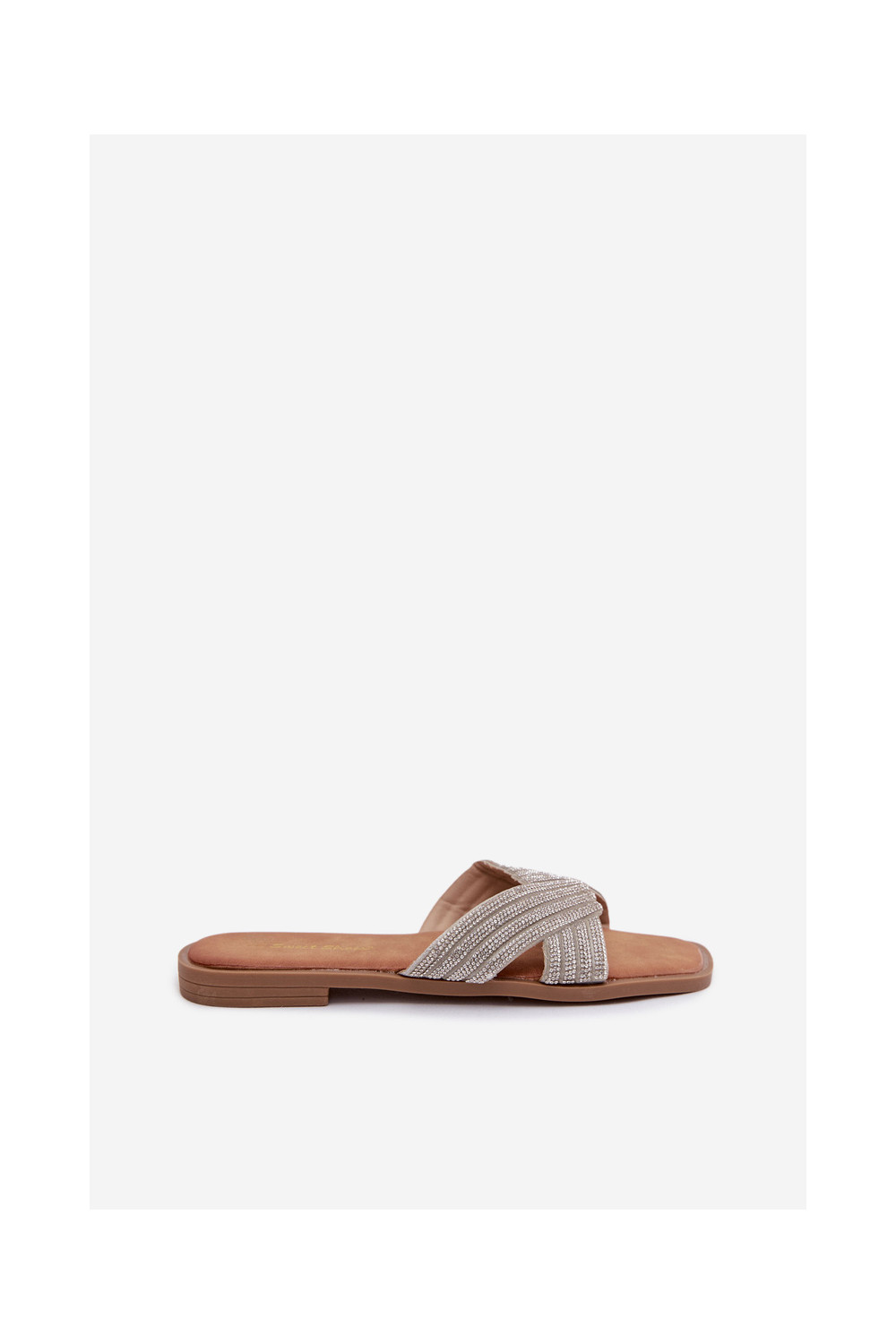 Moteriškos šlepetės su plačiais kulniukais su tviskančiomis akutėmis sidabro spalvos Zinnia
