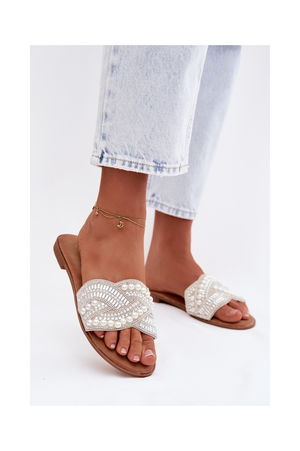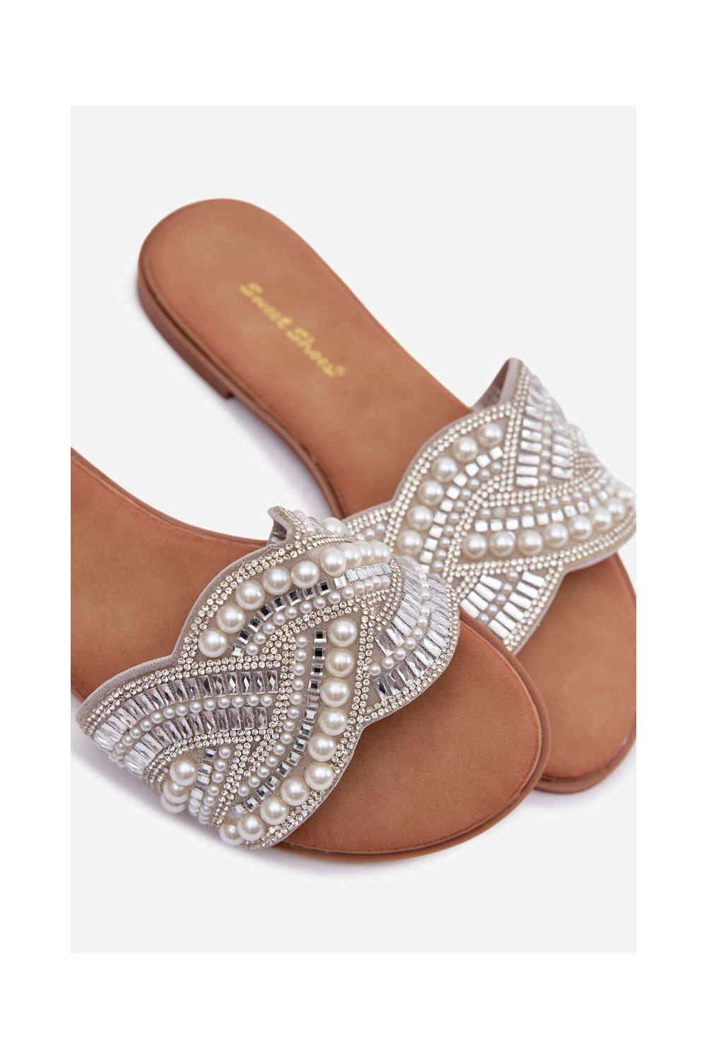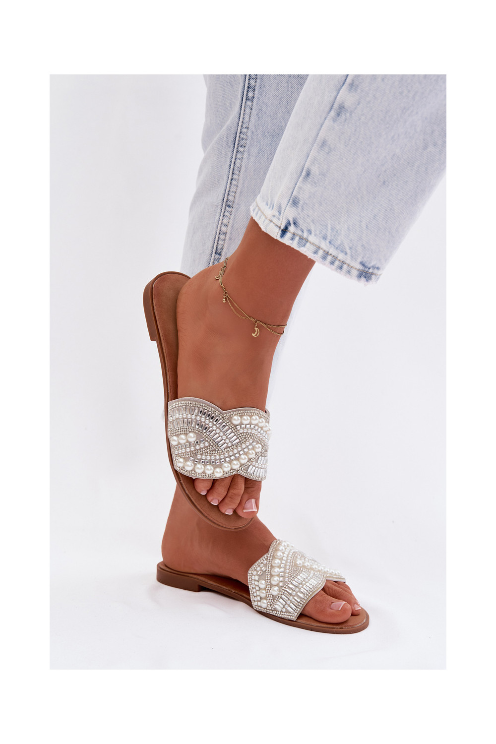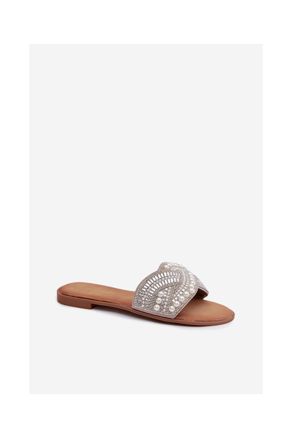 Dekoruotos Šlepetės su plačiais kulniukais sidabro spalvos Dovima
