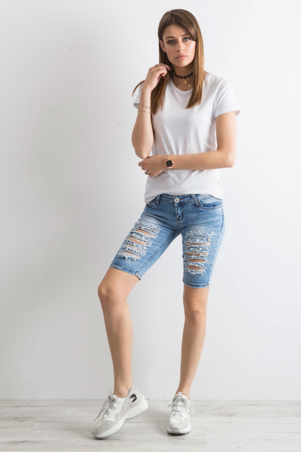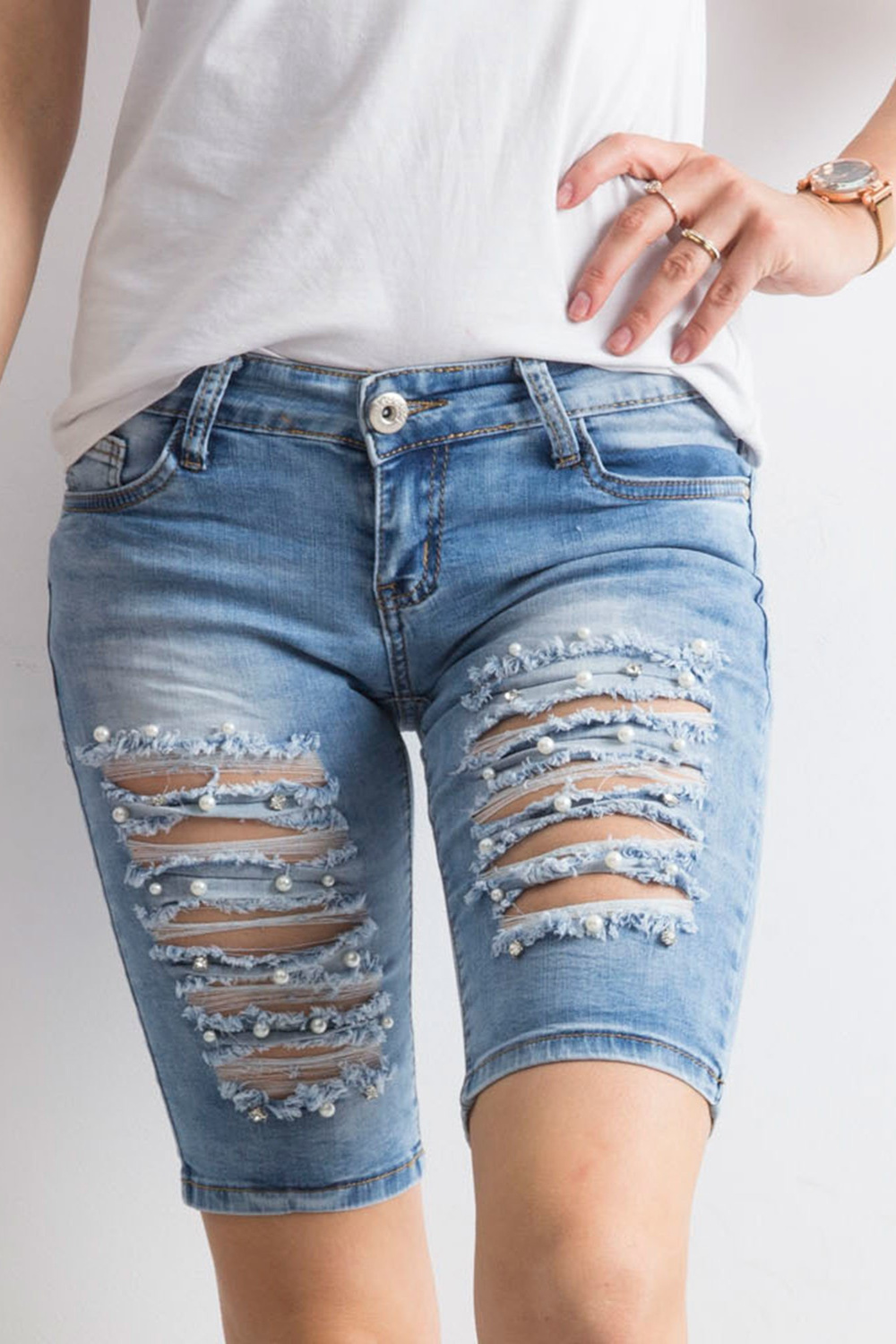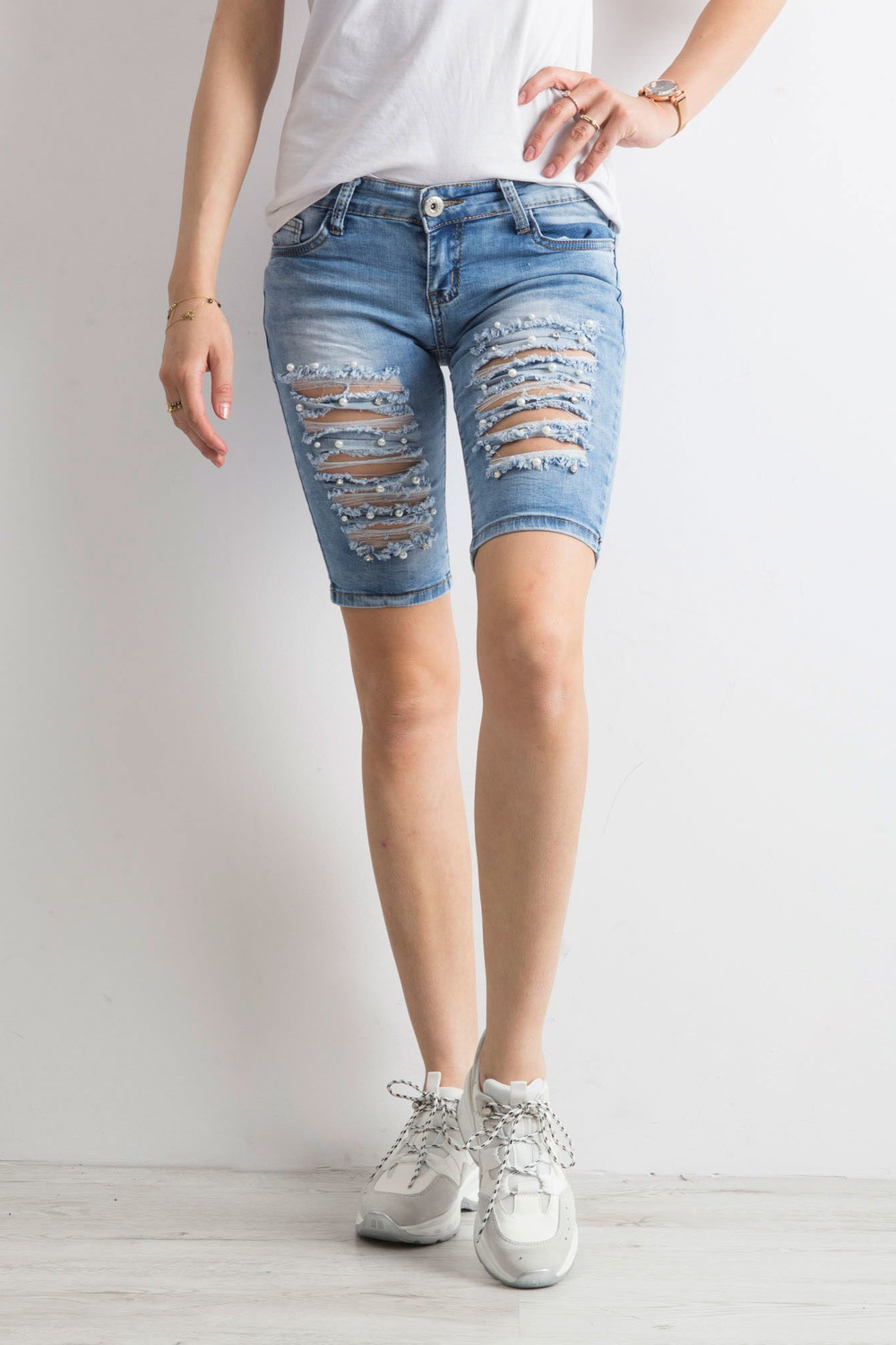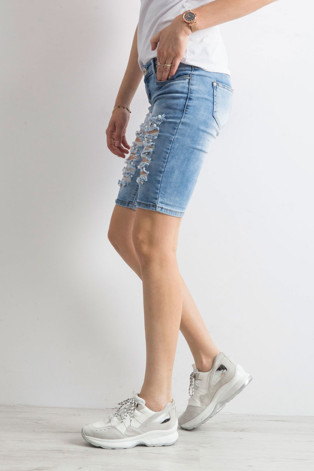 Mėlyni džinsiniai Bermudų šortai su skylutėmis .< /font>