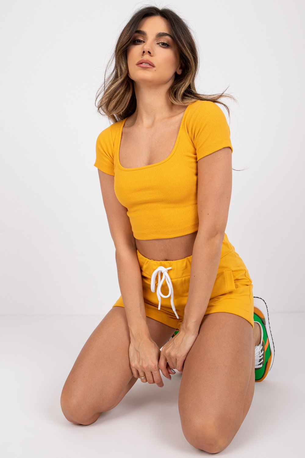 Prestižiniai tamsiai geltoni šortai Trumpi šortai iš mūsų pagrindinės kolekcijos yra puikus pasirinkimas šiltoms vasaros dienoms. Patogus, laisvas kirpimas leidžia juos naudoti itin patogiai. Pristatomas modelis turi reguliuojamus dirželius ties juosmeniu ir susukamas kojas. Madingi baziniai energingo atspalvio šortai neabejotinai yra elementas, kurio pavasario/vasaros sezono garderobe negali trūkti. Galite juos derinti su įvairiais garderobo elementais, kad sukurtumėte įspūdingą kasdieninio stiliaus įvaizdį. Madingus šortus derinkite su medvilniniais marškinėliais ar patogia viršutine dalimi ir mėgaukitės patogia vasariška miesto išvaizda ar pasivaikščiokite pajūrio promenada. Pagrindinis modelis pagamintas iš medvilninio audinio, kuris suteikia malonų dėvėjimo komfortą net karščiausiomis dienomis. Jei iki šiol jūsų garderobe nebuvo vietos įdomiems vienspalviams šortams, būtinai peržiūrėkite mūsų pasiūlymus.