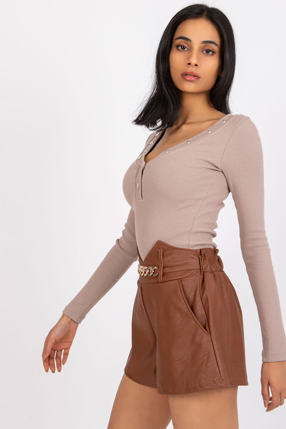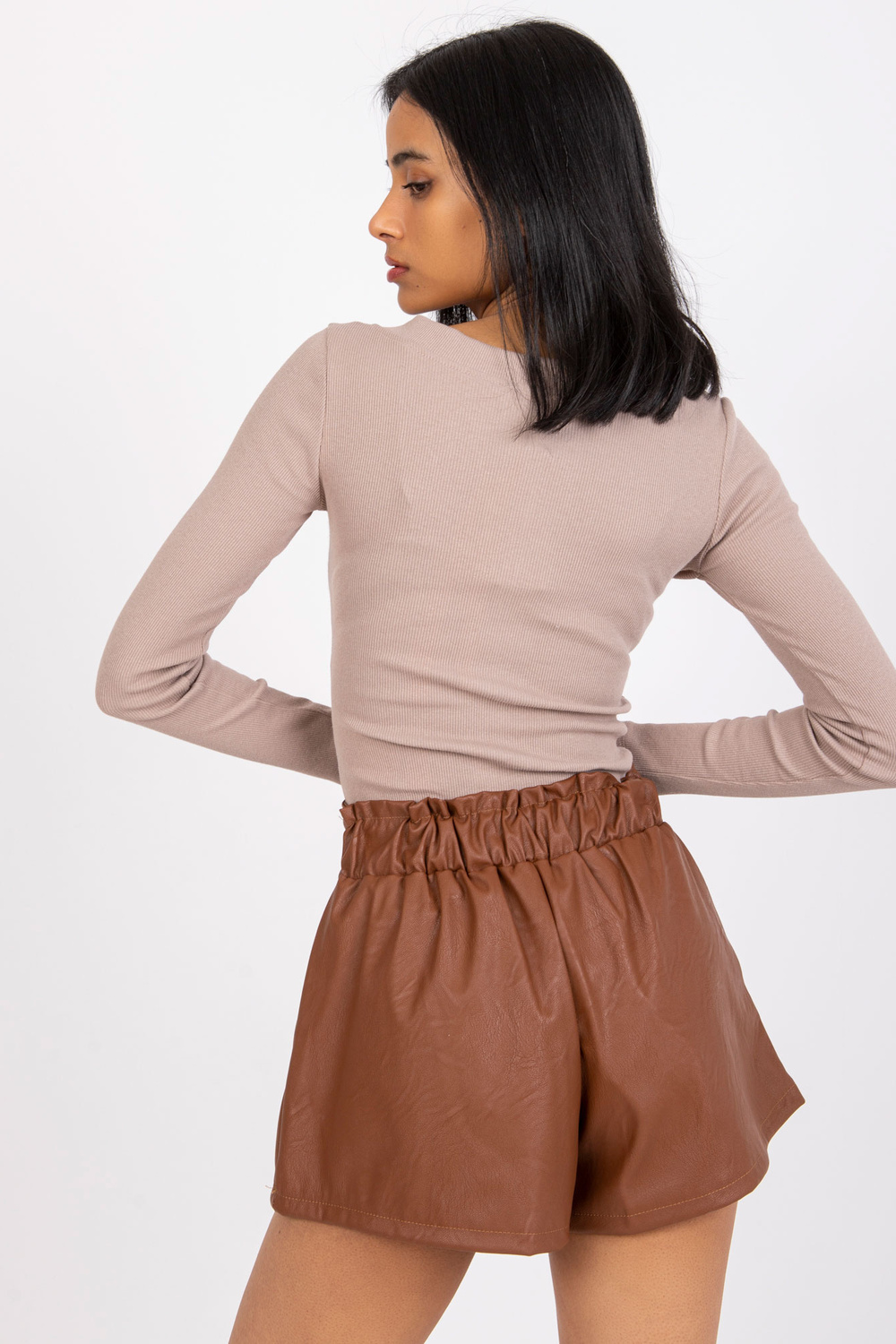 Rudos spalvos šortai, pagaminti iš Iwetta odos .