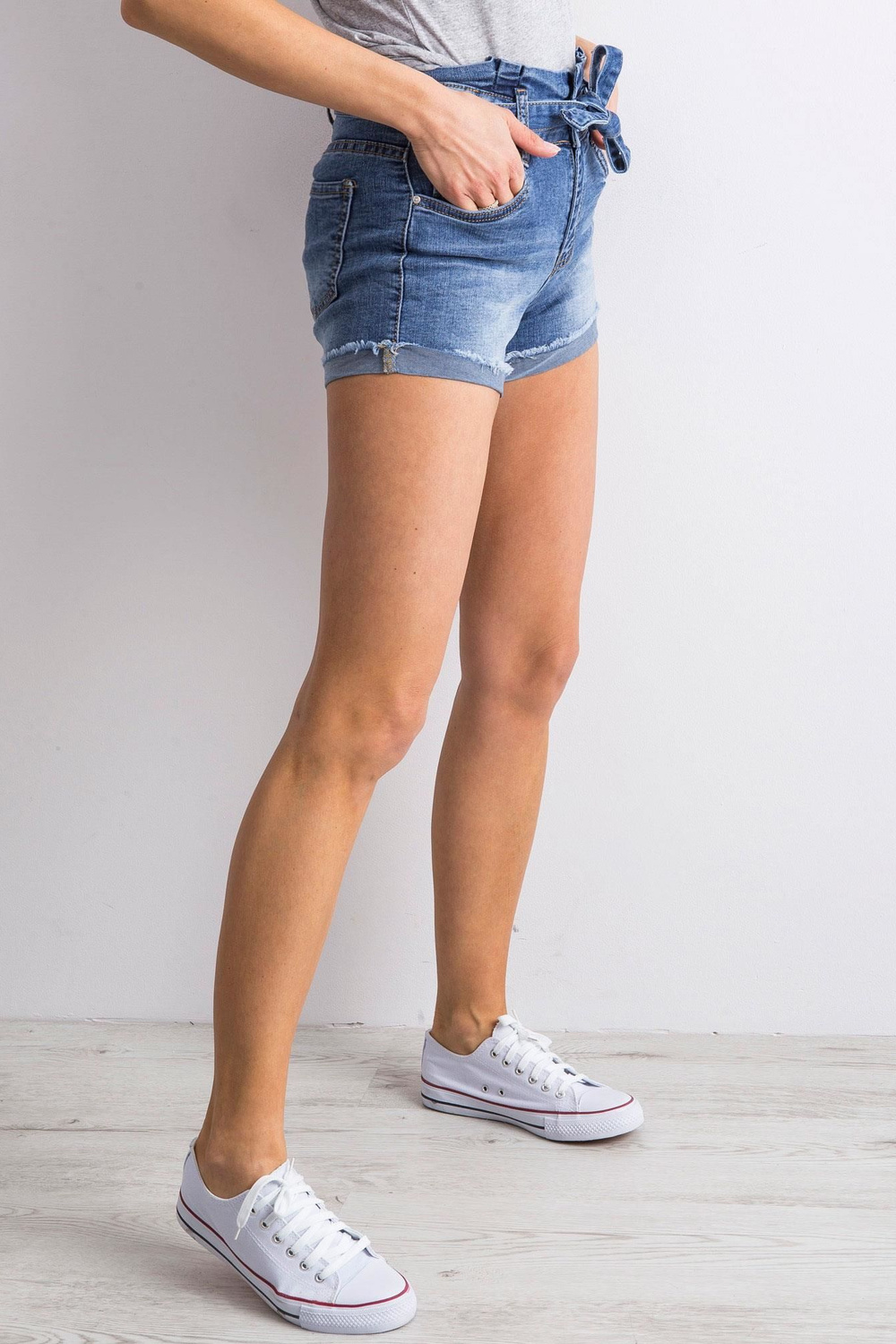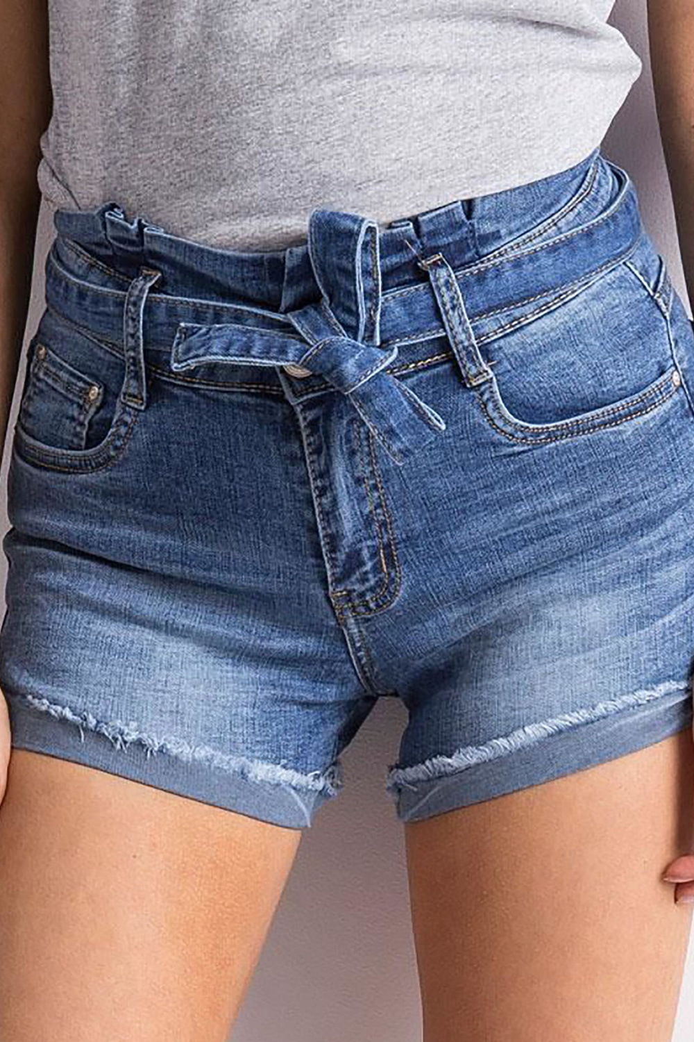 Mėlyni džinsiniai šortai su kaklaraiščiais< font style="vertical-align: inherit;"> .