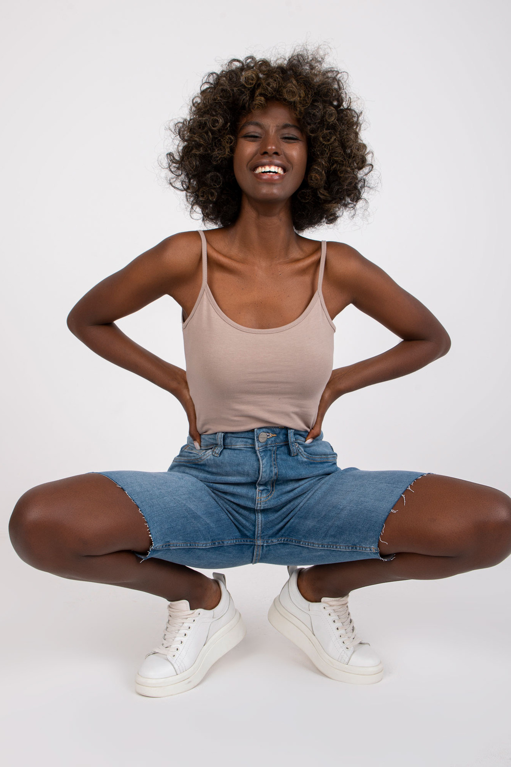 Modelis dėvi S dydį. Modelio išmatavimai: ūgis 168 cm, krūtinė 82 cm, juosmuo 62 cm, klubai 93 cm.