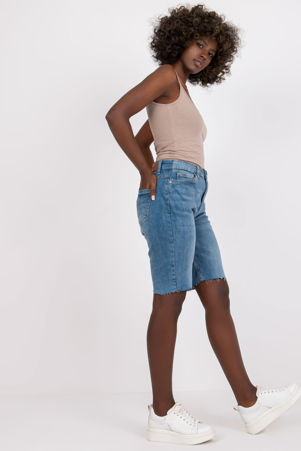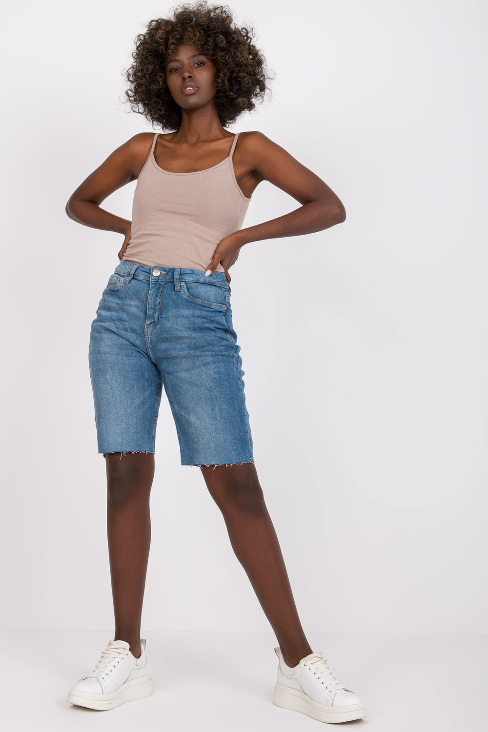 Mėlyni SUBLEVEL džinsiniai šortai iki kelių .