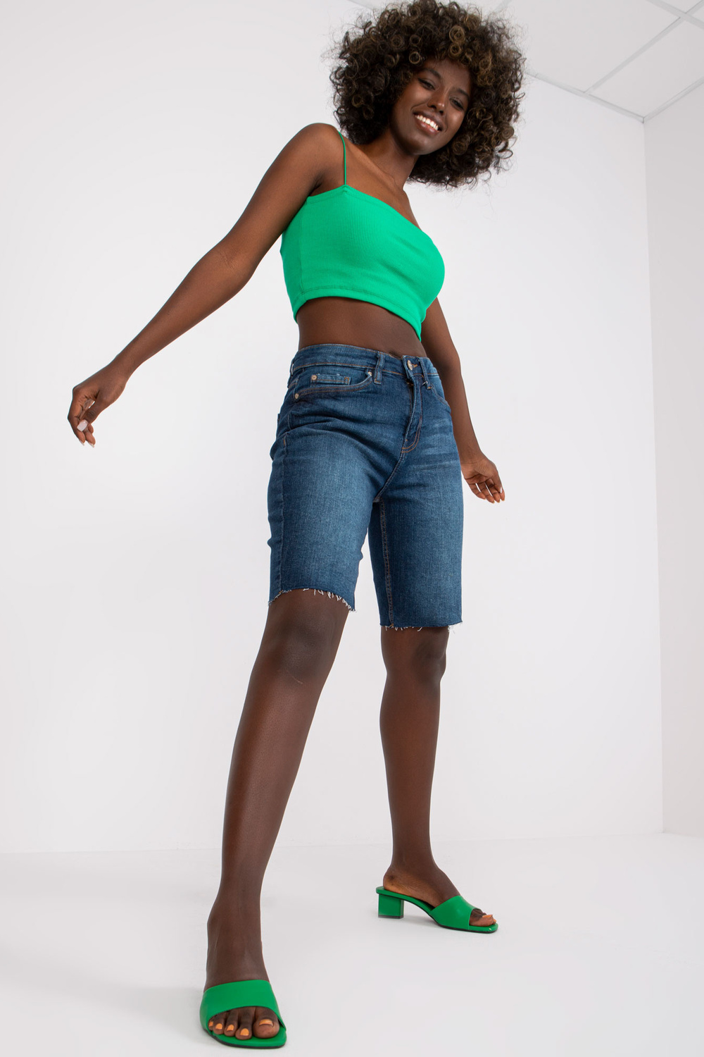 Tamsiai mėlyni moteriški medvilniniai džinsiniai šortai SUBLEVEL .