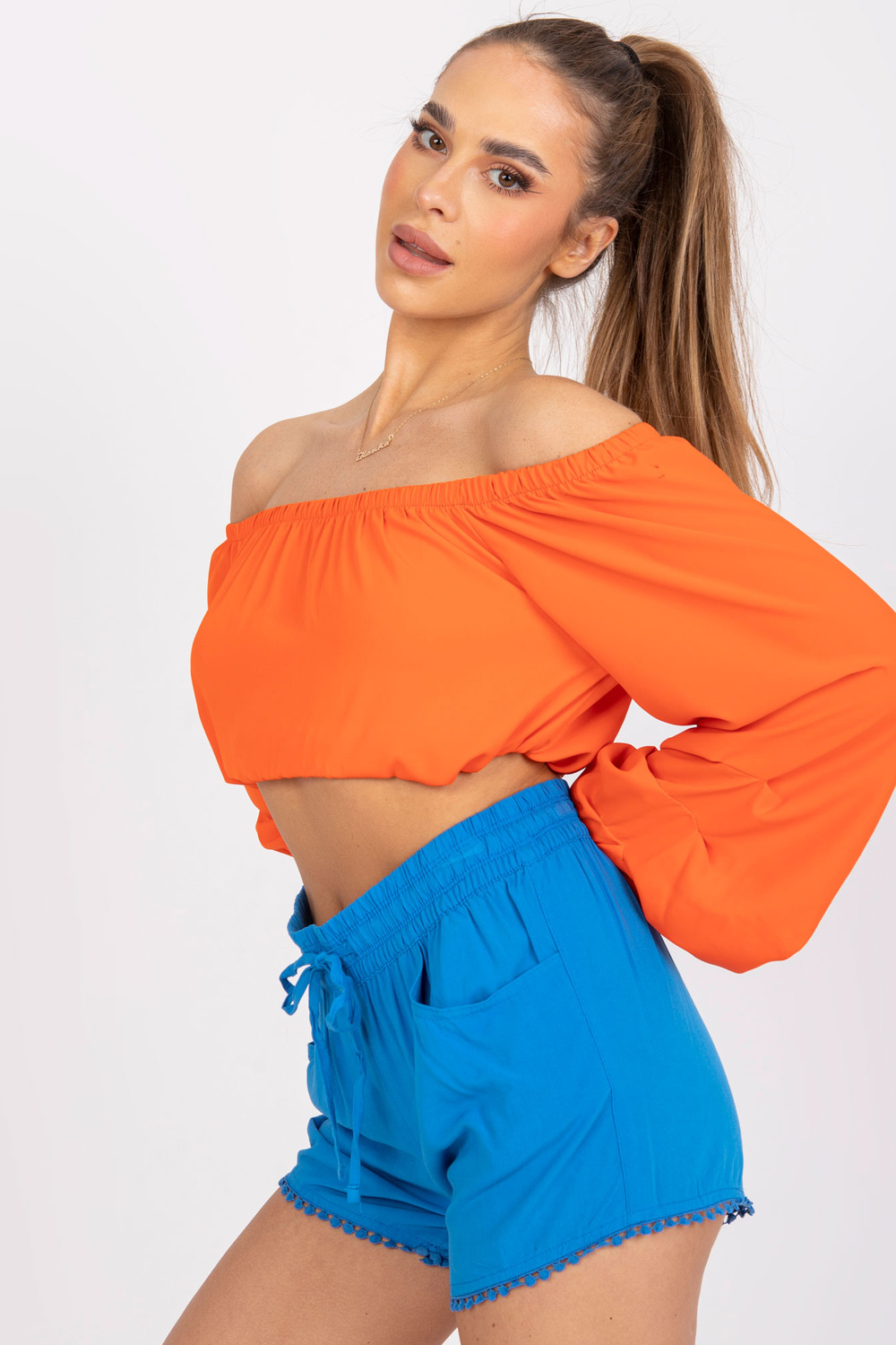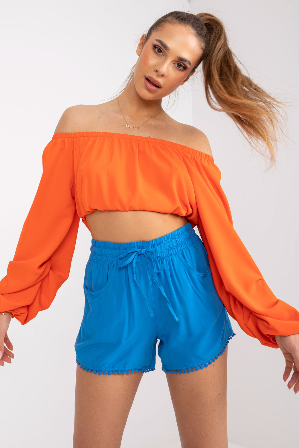 Mėlynos spalvos moteriški vasariniai šortai iš viskozės Miya FRESH MADE .