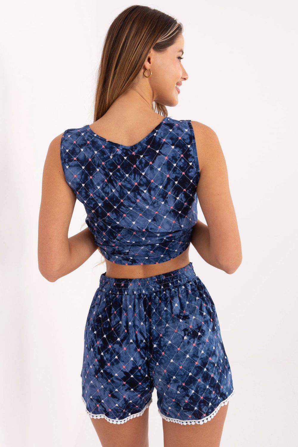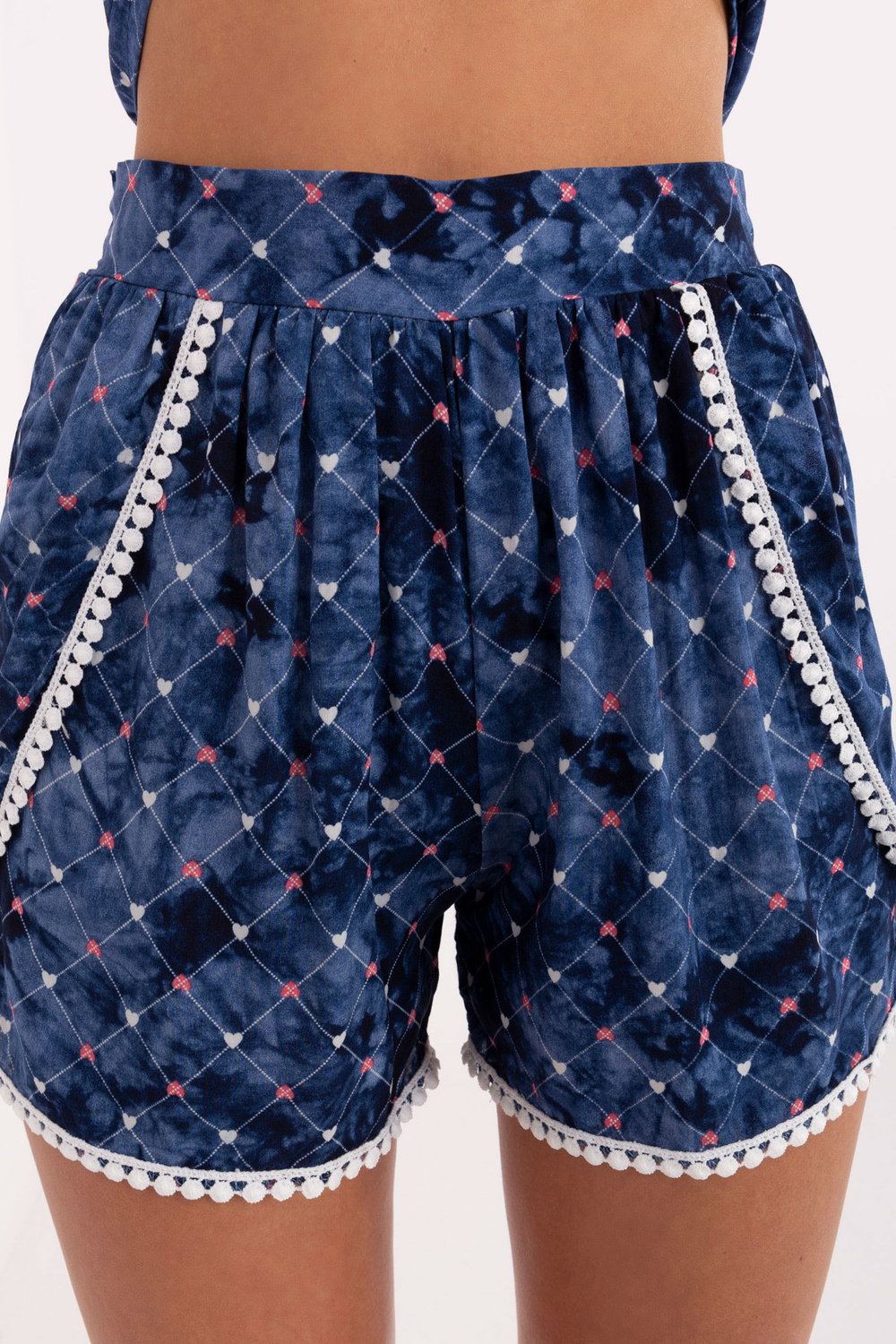Mėlyni šortai su širdelėmis.