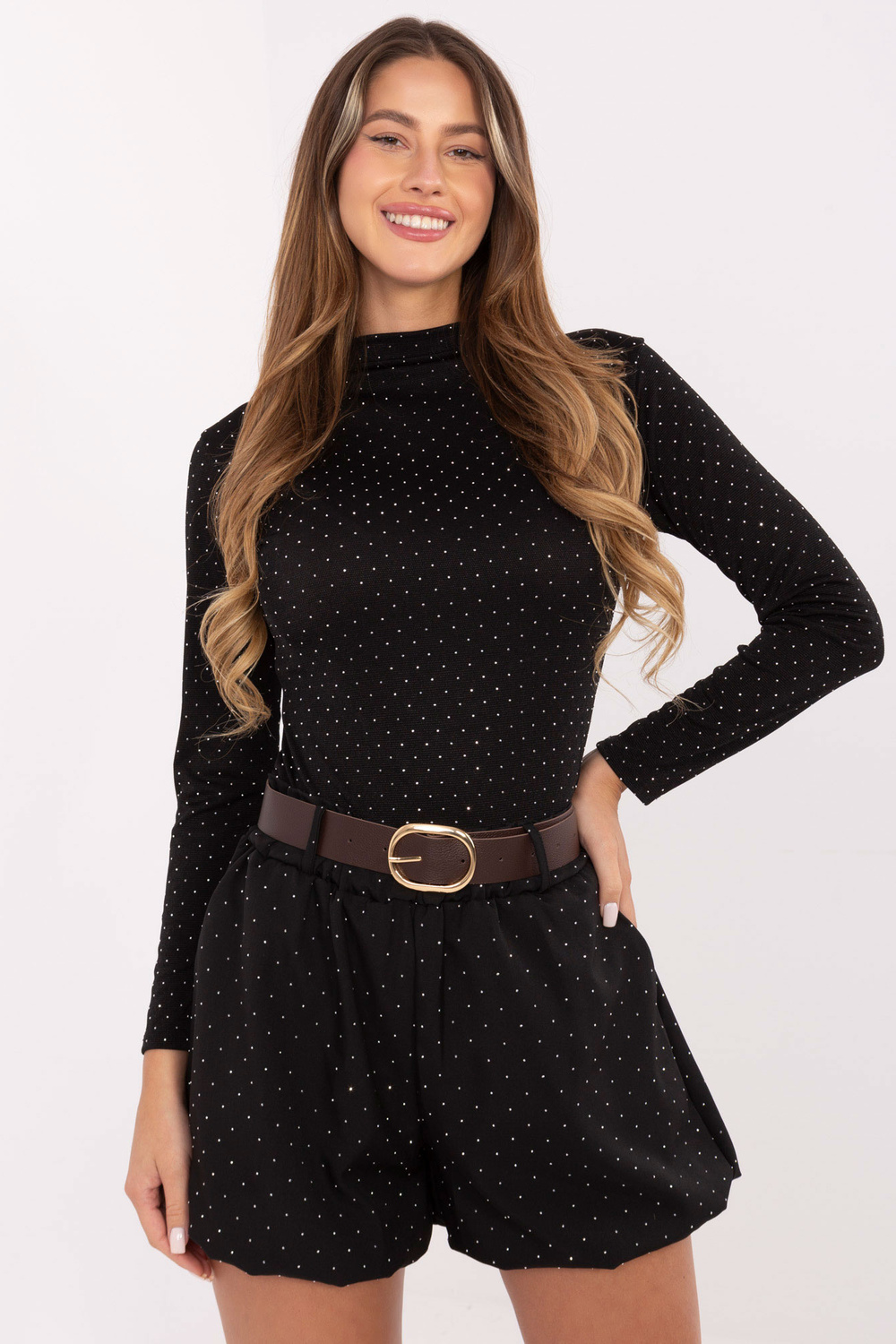 Modelis dėvi vieno dydžio drabužį. Modelio matmenys: ūgis 176 cm, krūtinė 90 cm, liemuo 62 cm, klubai 94 cm.