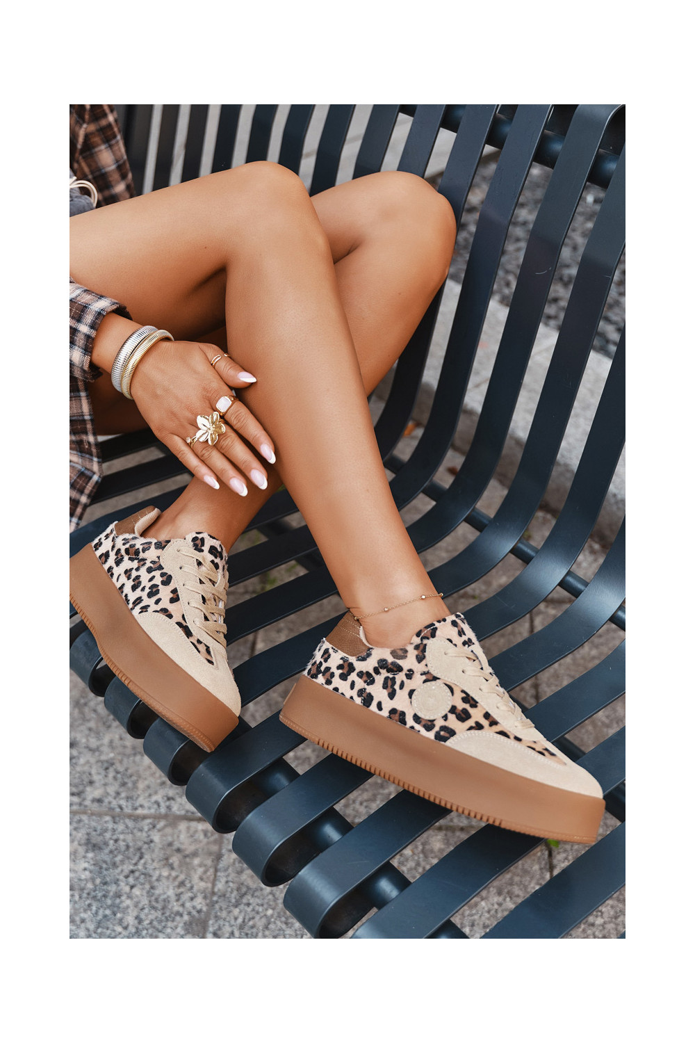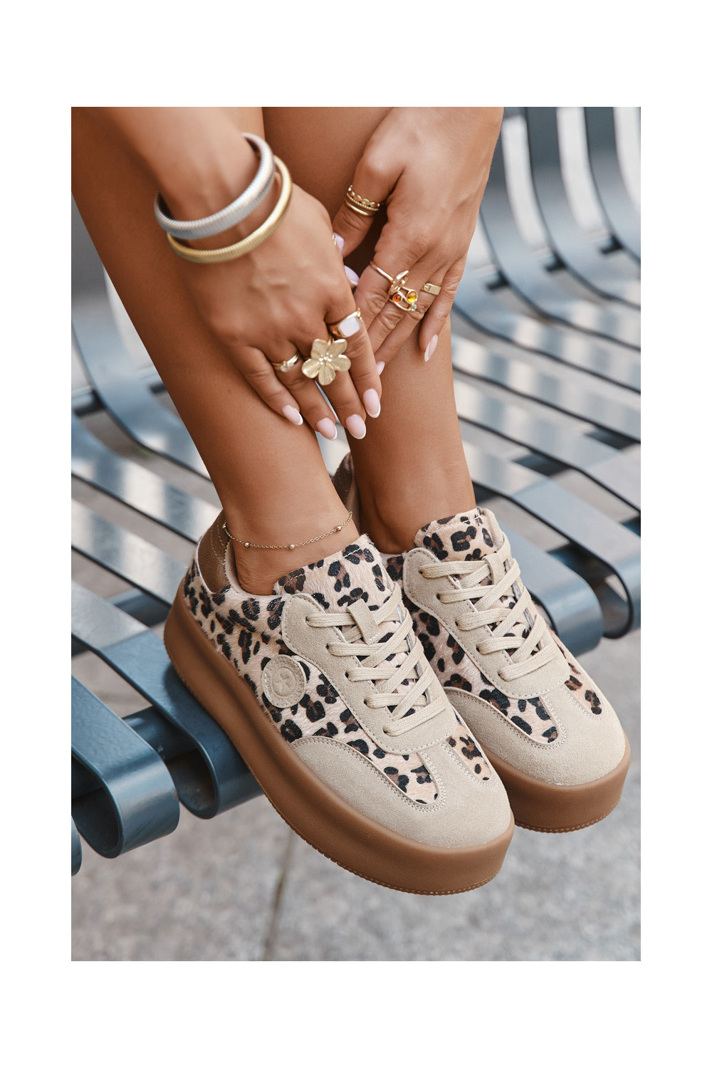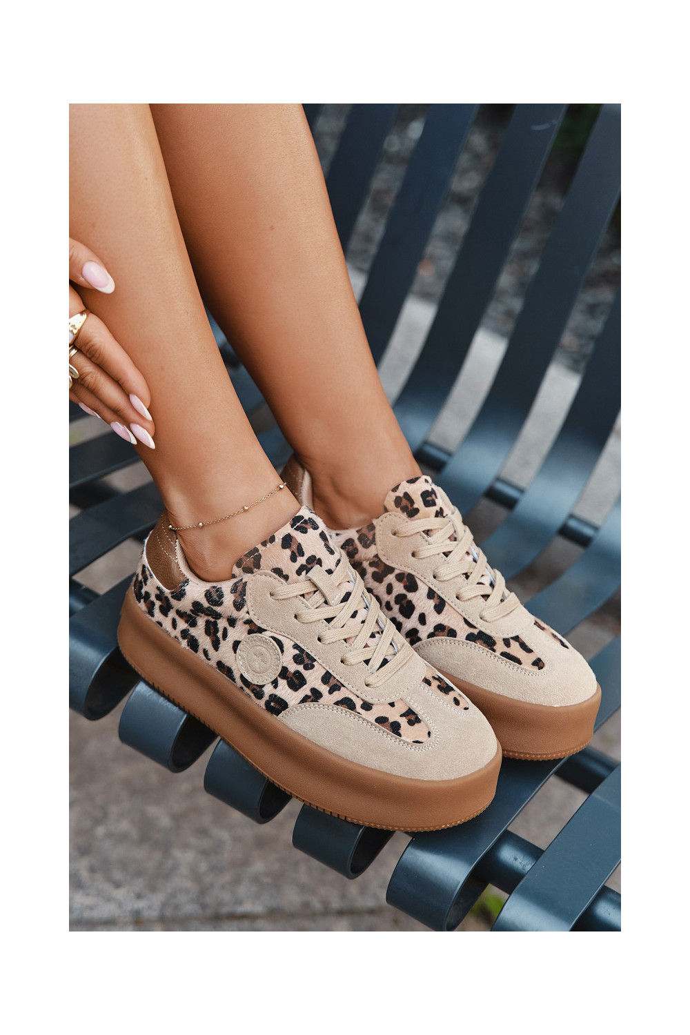 Sportbačių modelio bateliai moteriški su platforma, su leopardo kailio raštais Big Star SS274763 smėlio spalvos