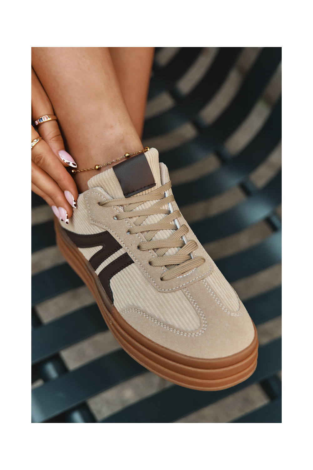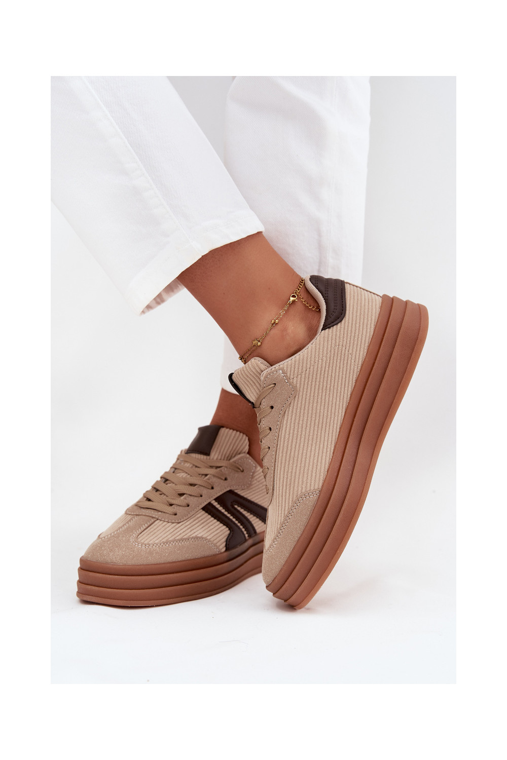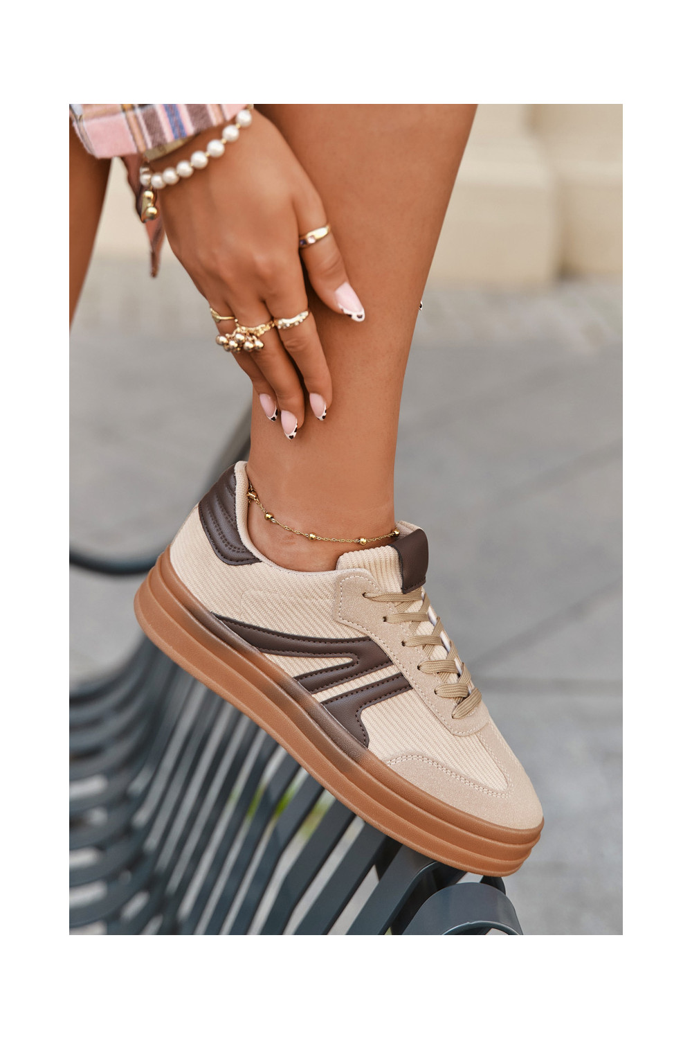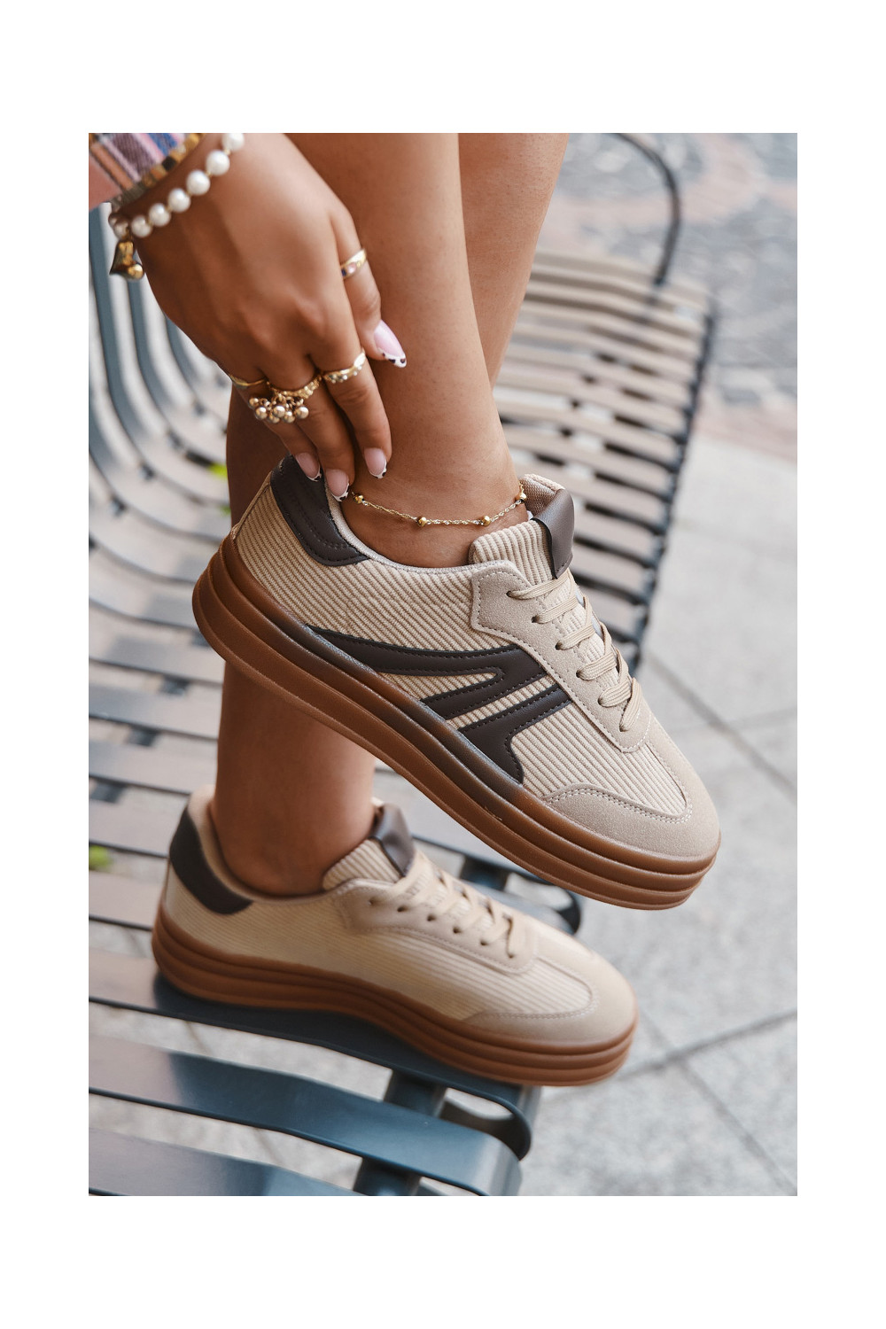 Moteriški velvetiniai sportinio stiliaus batai su platforma, smėlio spalvos Corynelle