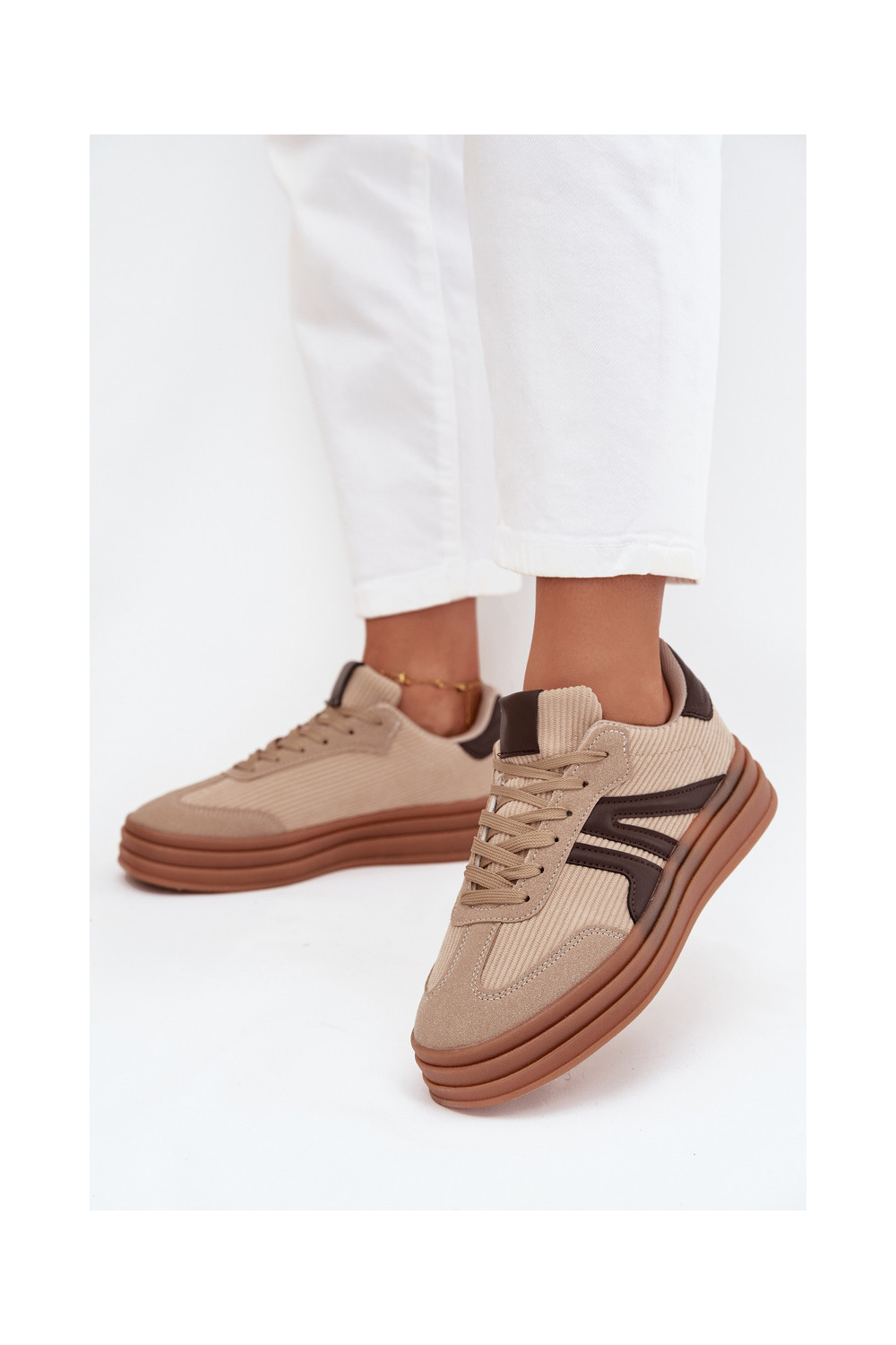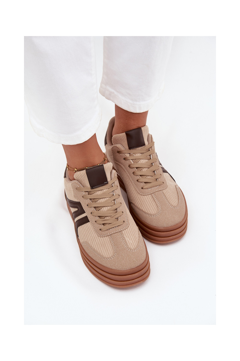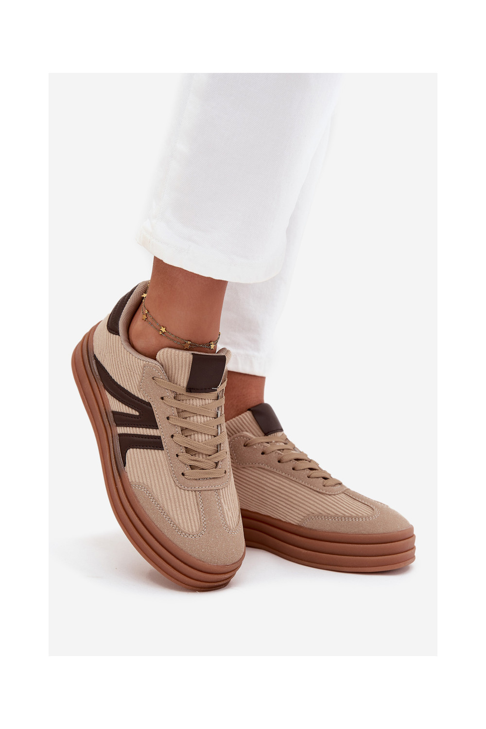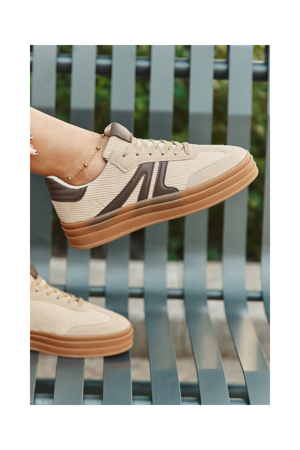 Moteriški velvetiniai sportinio stiliaus batai su platforma, smėlio spalvos Corynelle