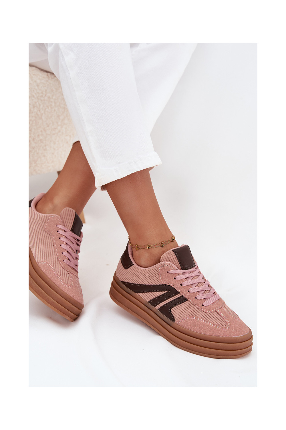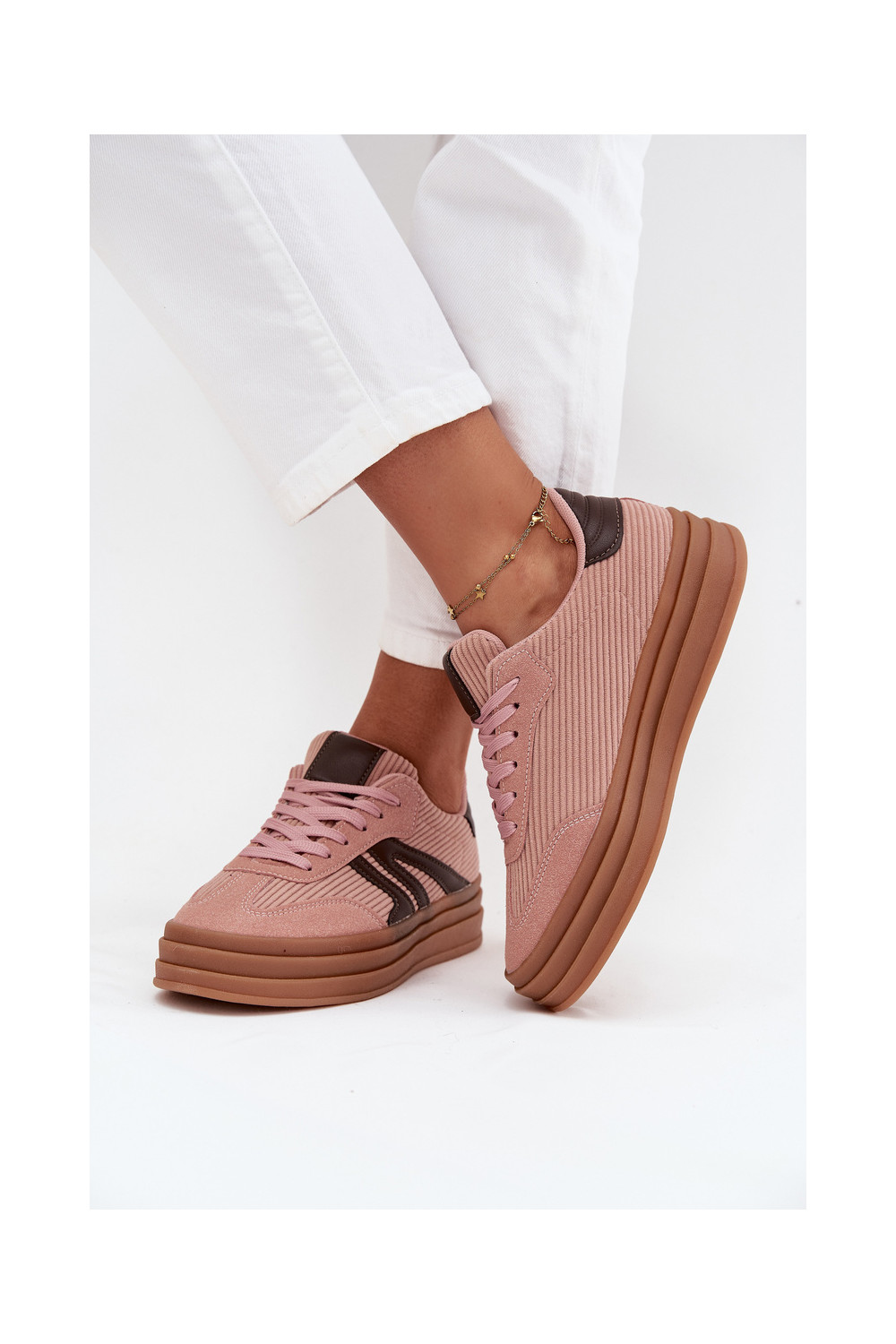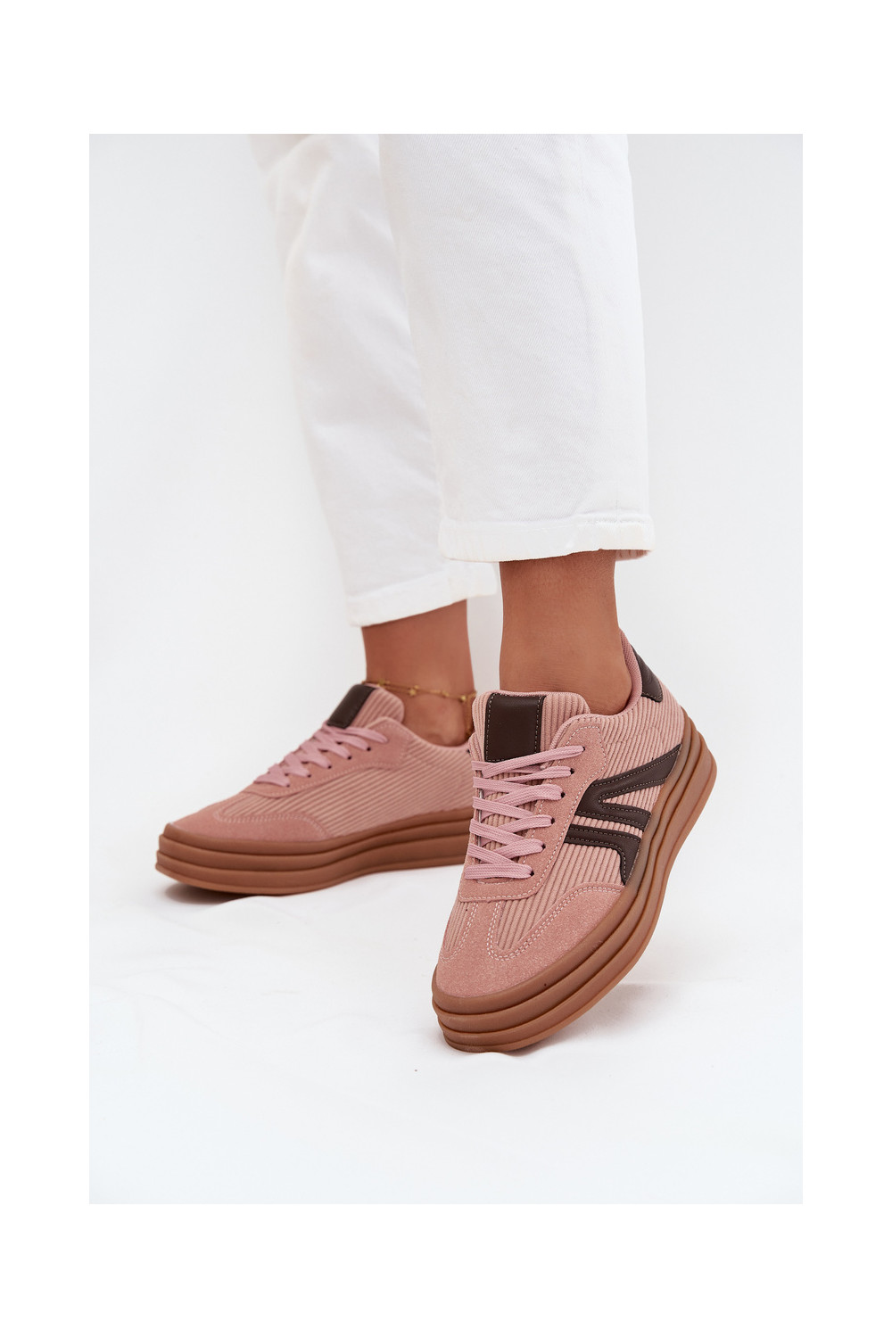 Moteriški velvetiniai sportinio stiliaus batai su platforma, rožinės spalvos Skye