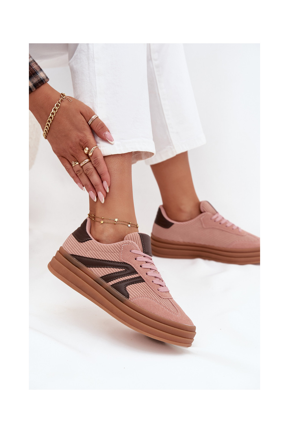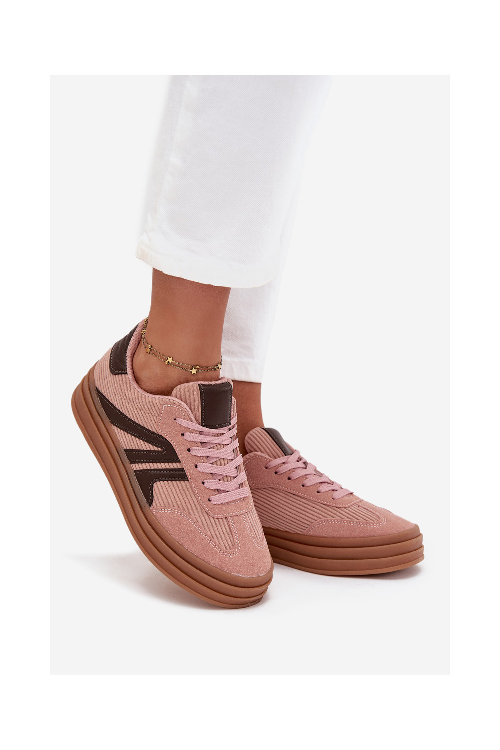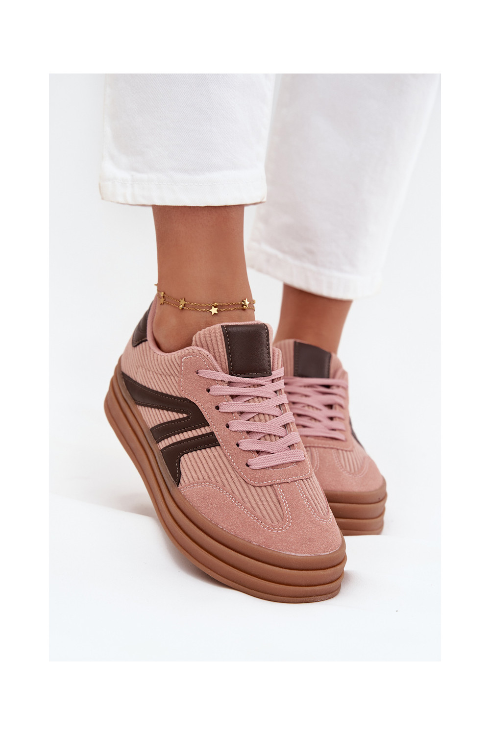 Moteriški velvetiniai sportinio stiliaus batai su platforma, rožinės spalvos Skye