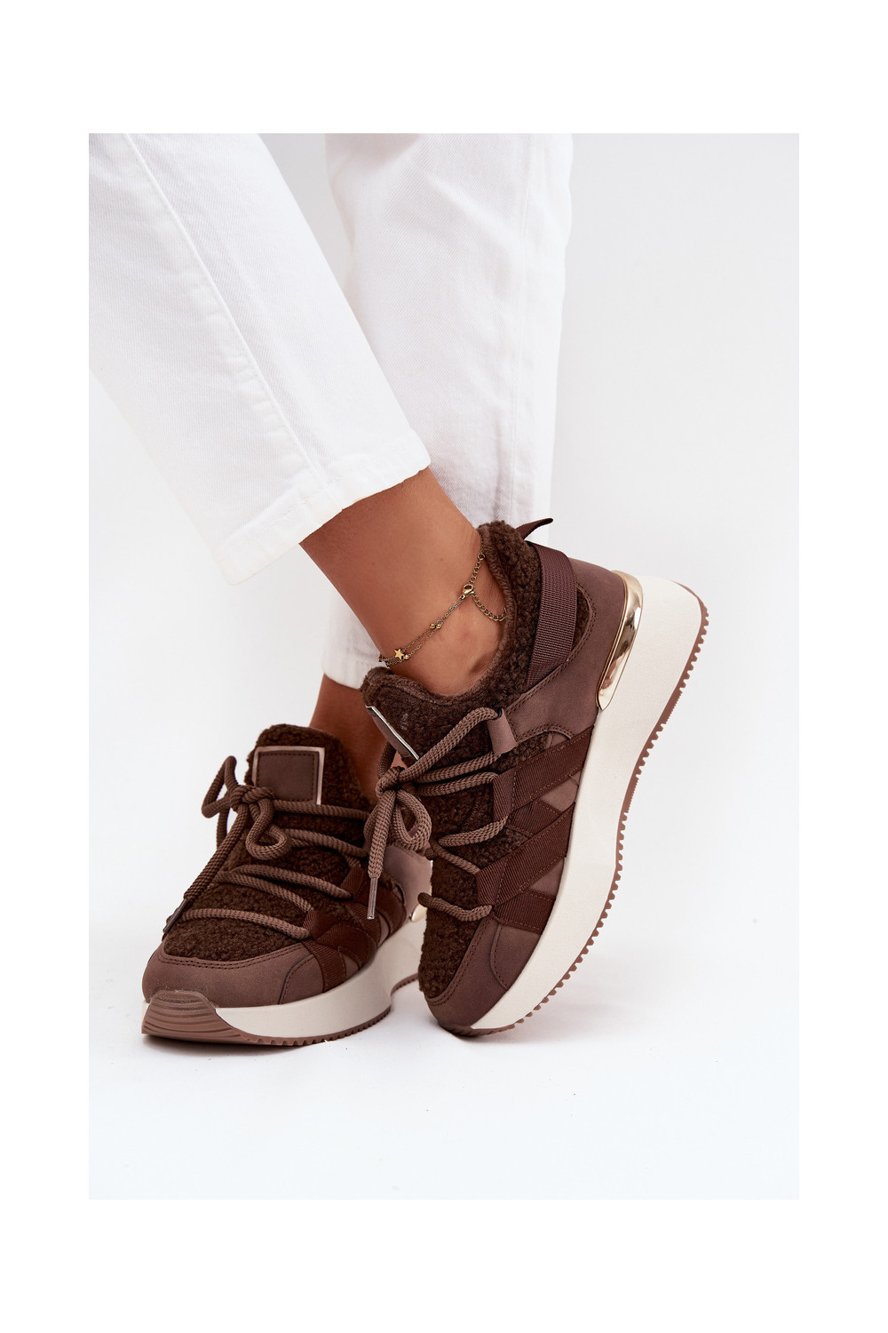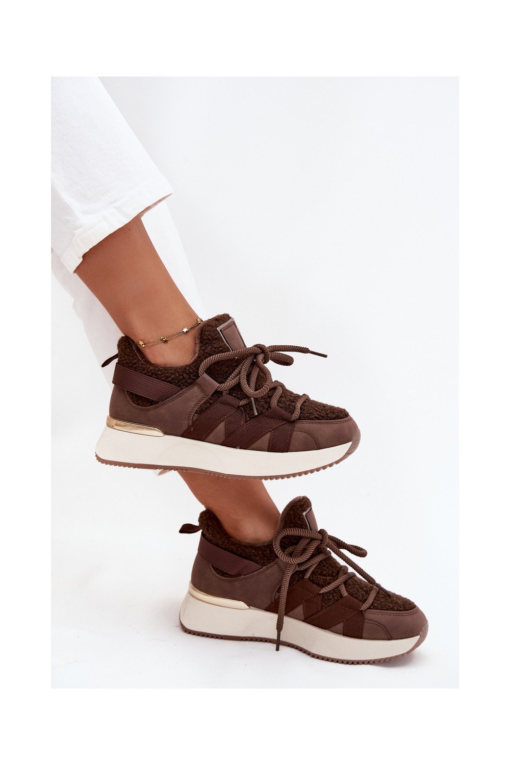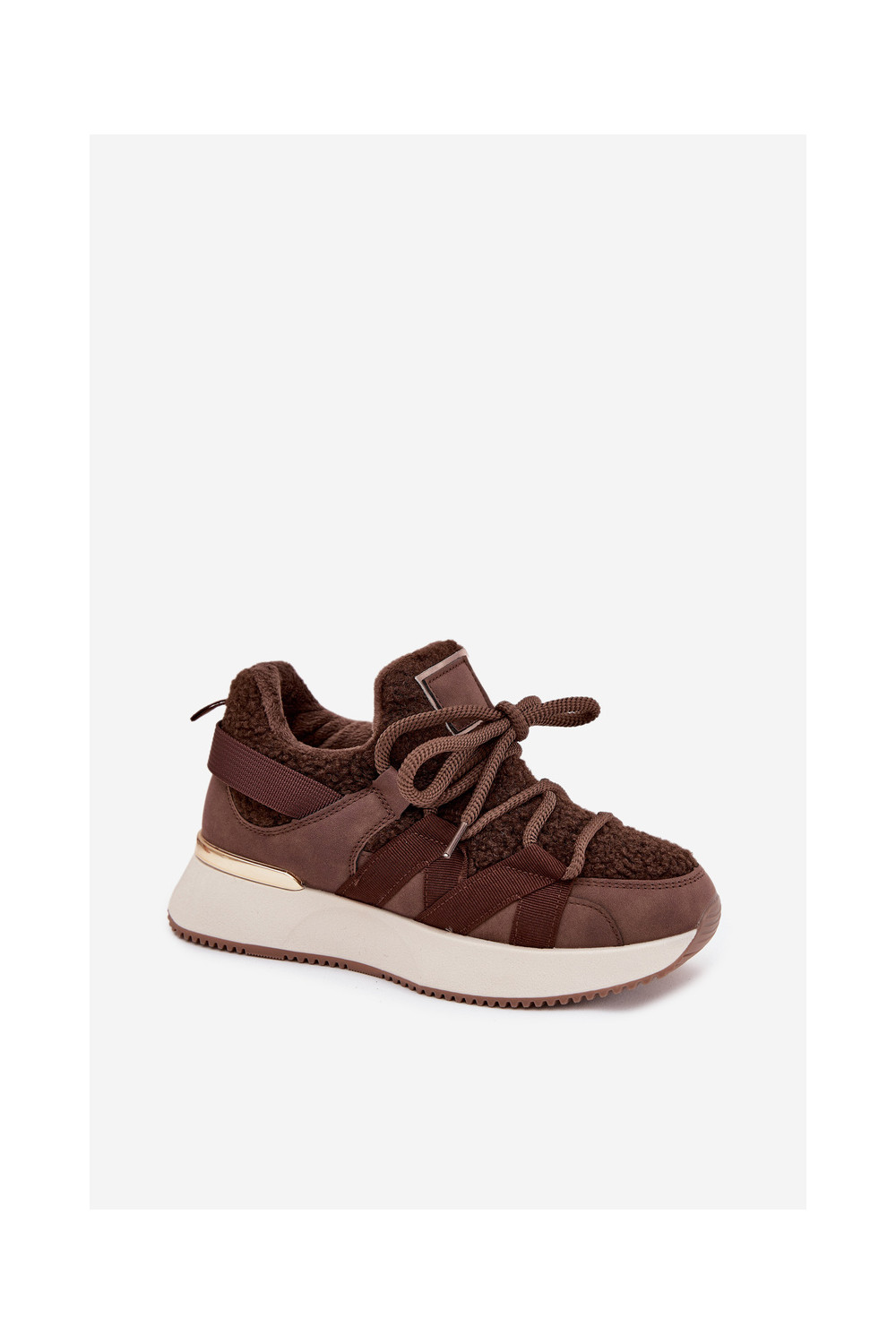 Pašiltinti sportiniai batai moteriški su platforma rudos spalvos Juvira