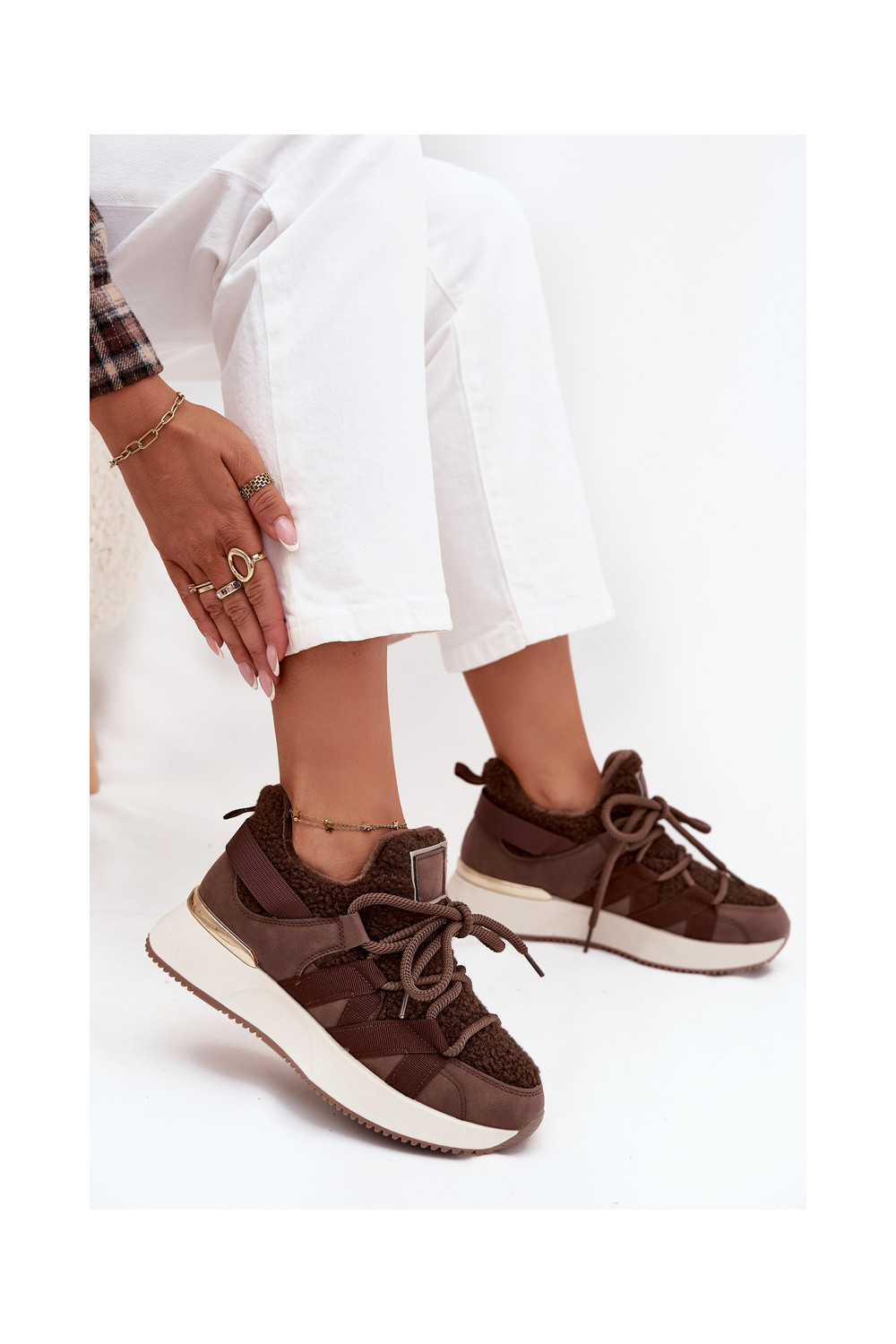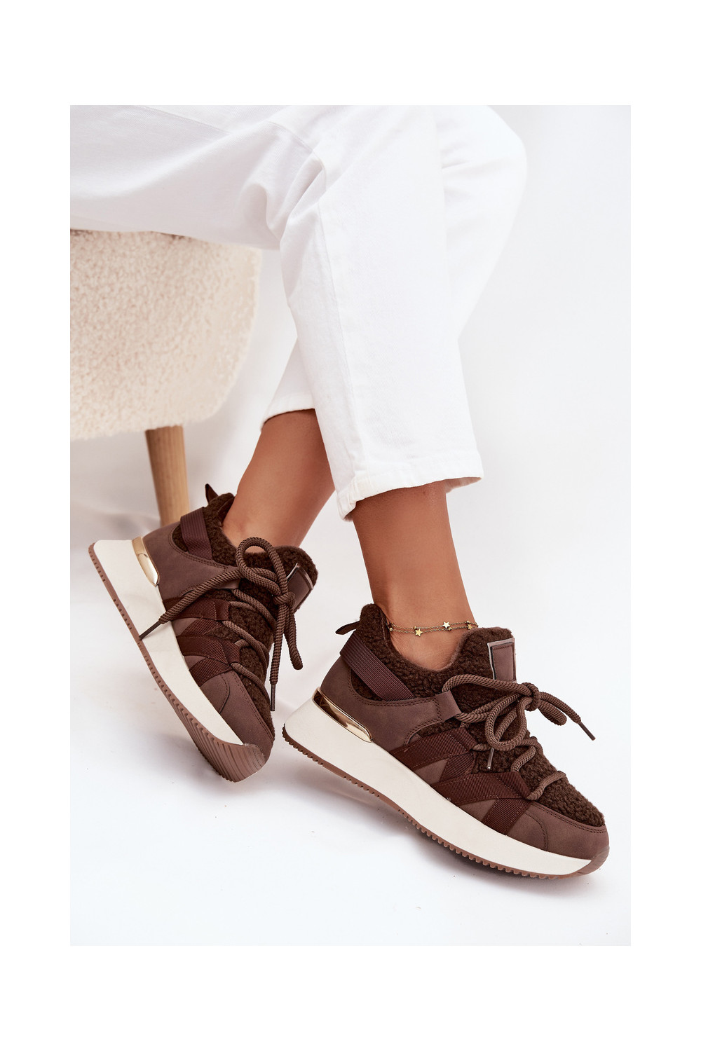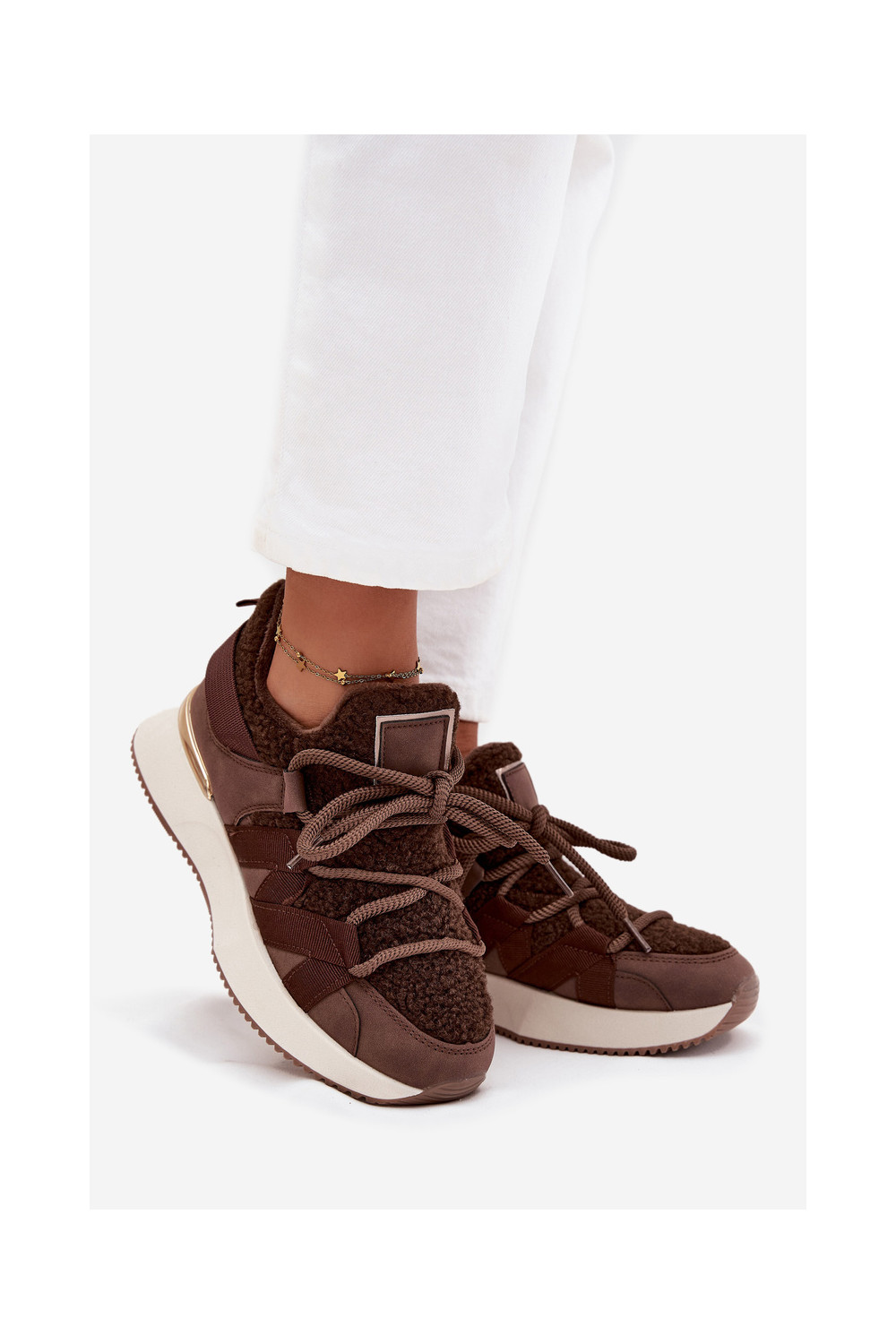 Pašiltinti sportiniai batai moteriški su platforma rudos spalvos Juvira