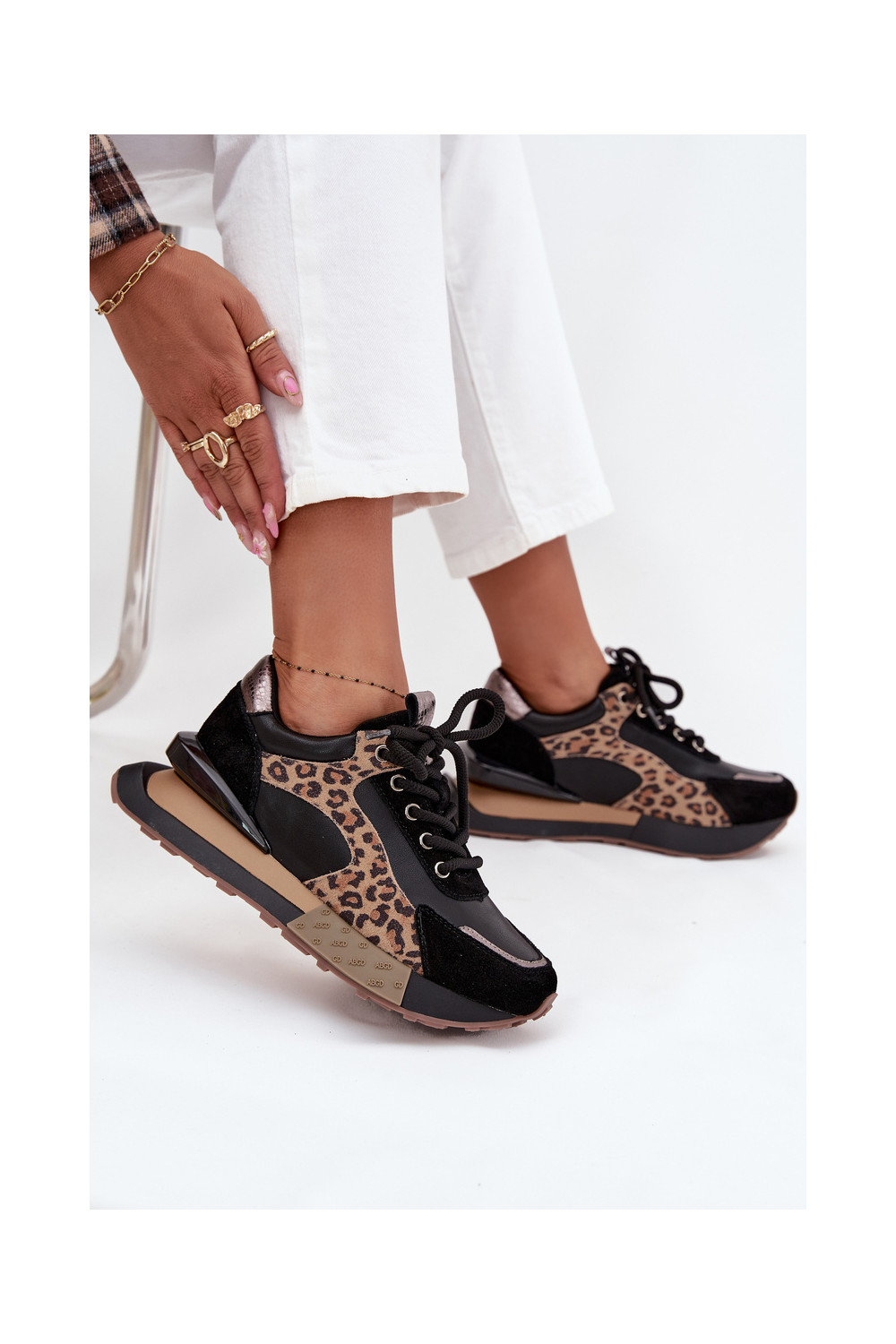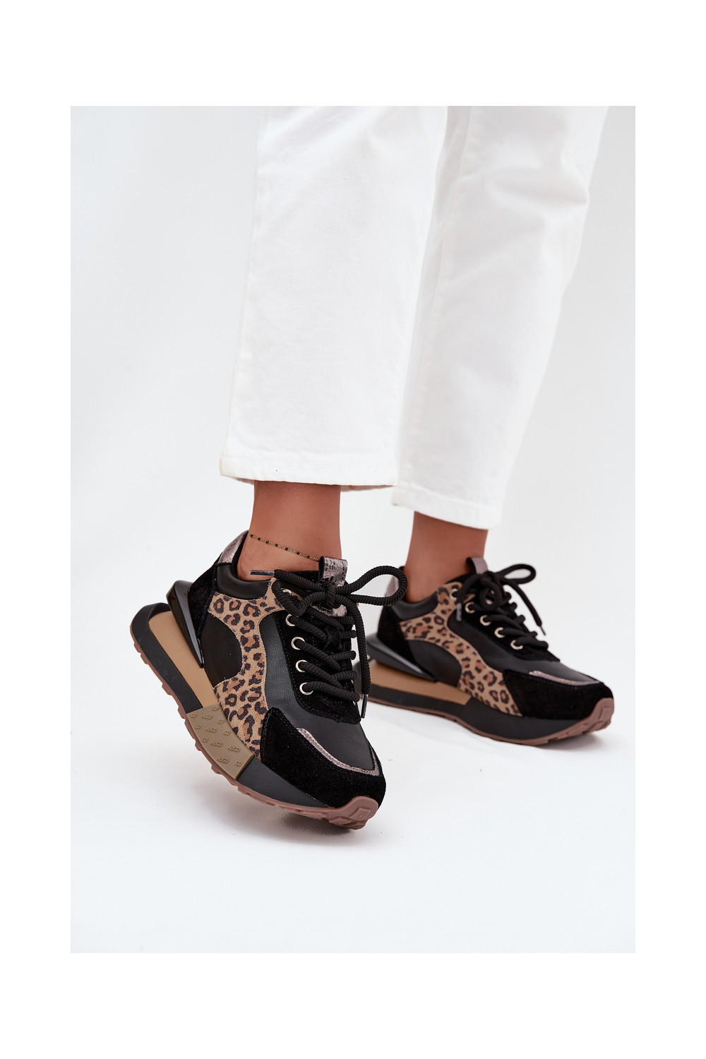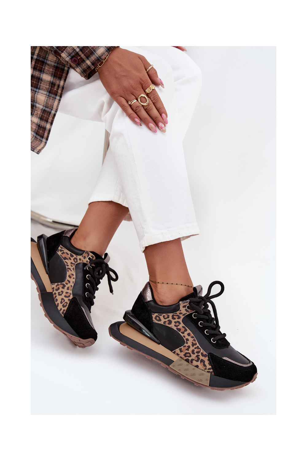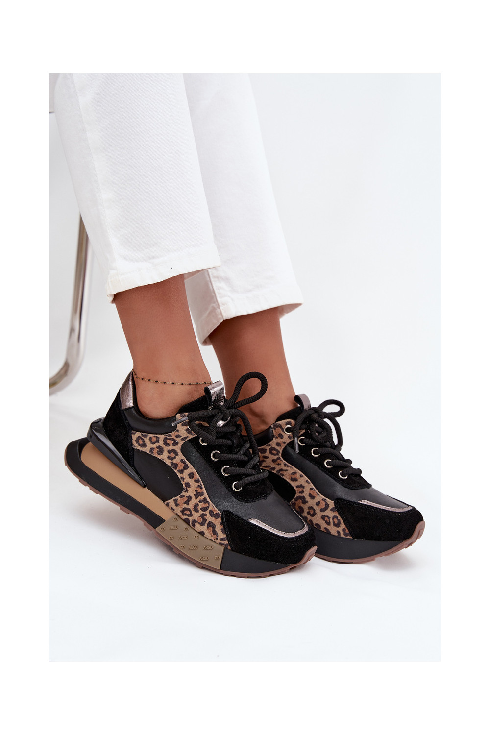 Odiniai moteriški sportinio stiliaus batai su platforma ir leopardo kailio raštais Artiker 55C0134 juodos spalvos